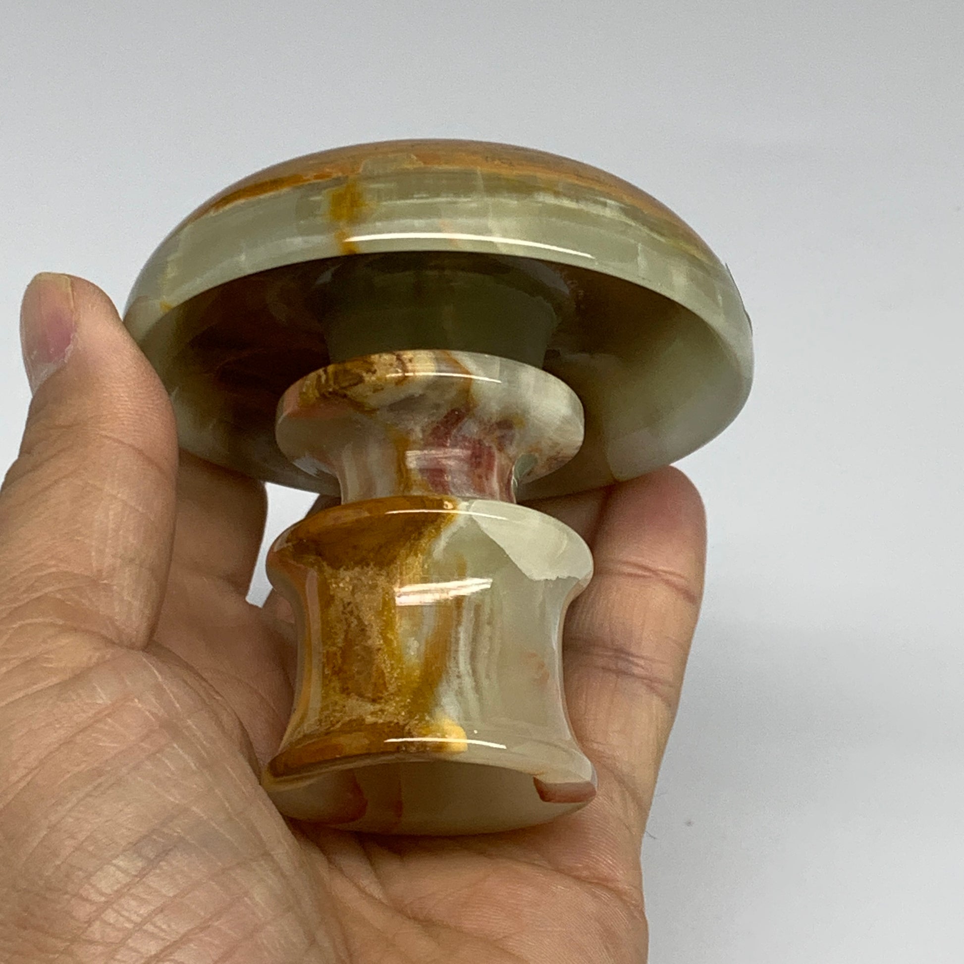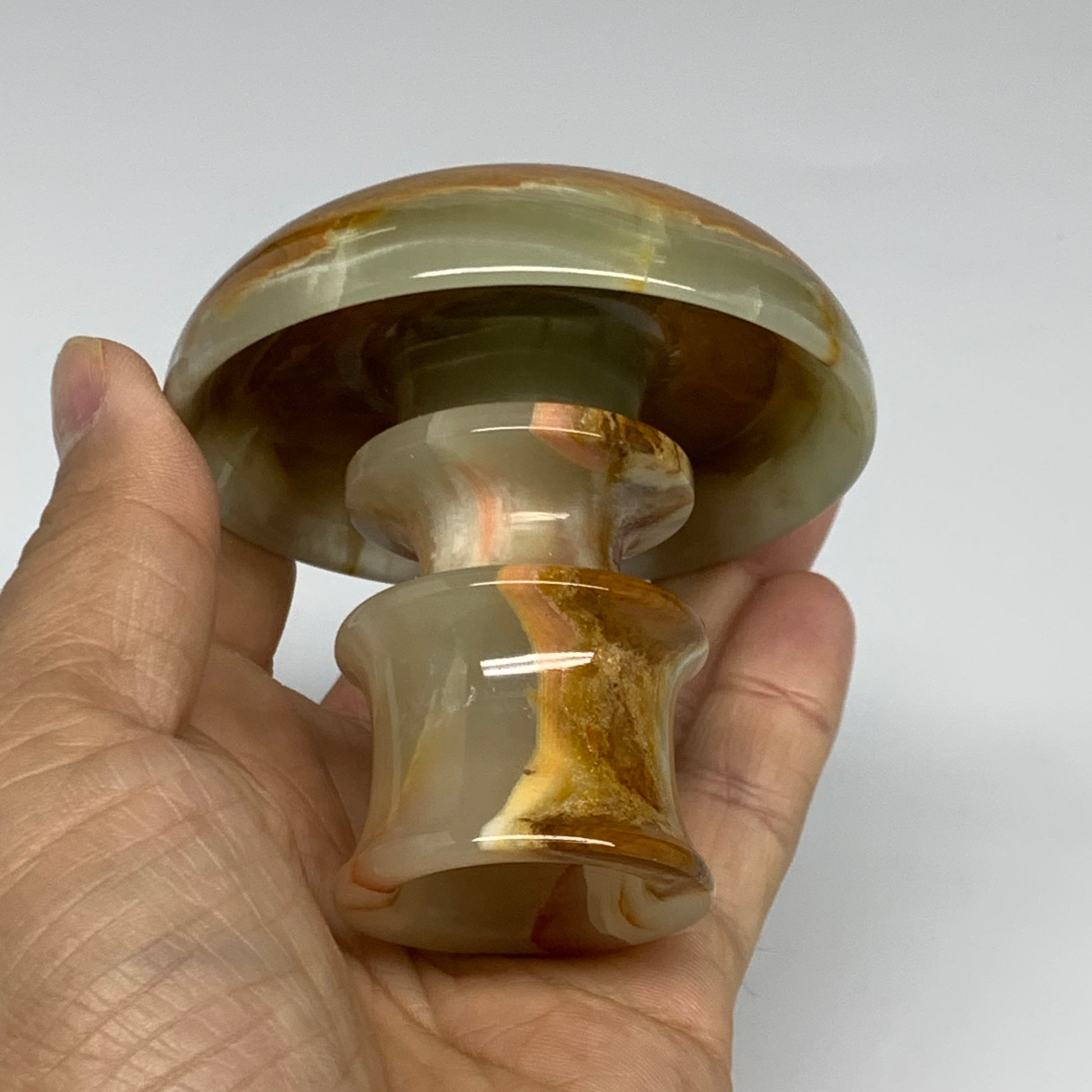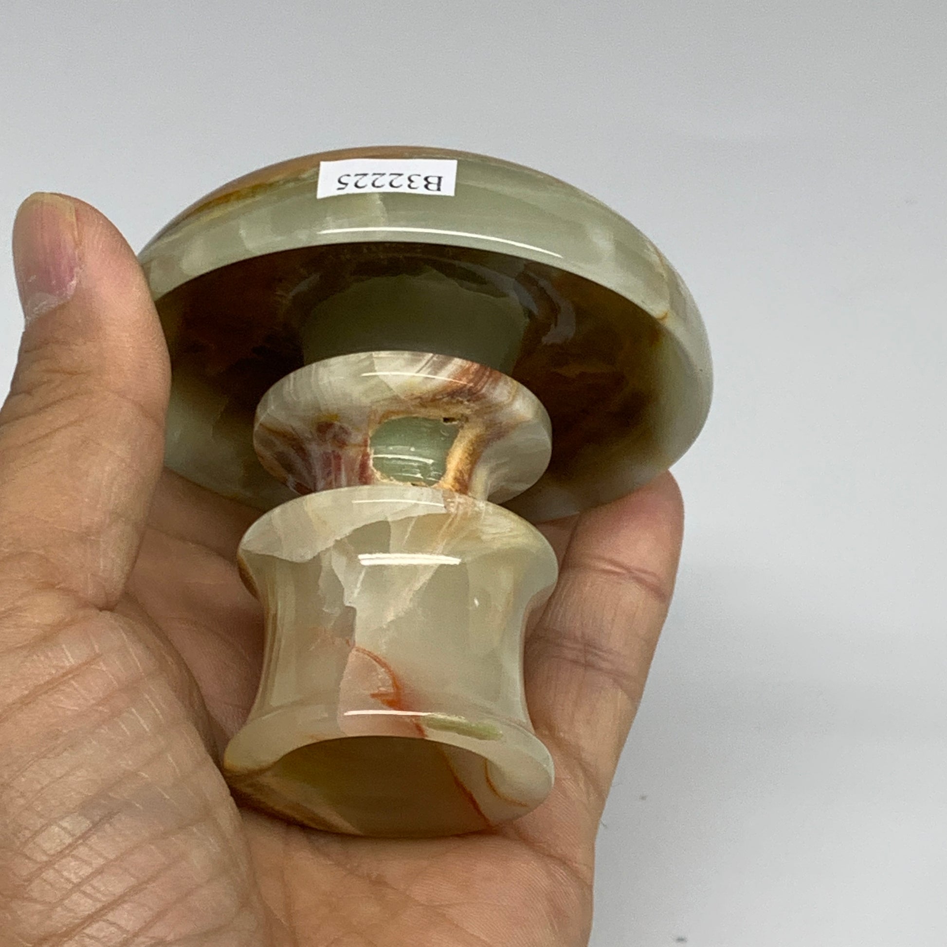 209g, 2.7"x1.4"x2.9", Natural Green Onyx Candle Holder Gemstone Carved, B32225