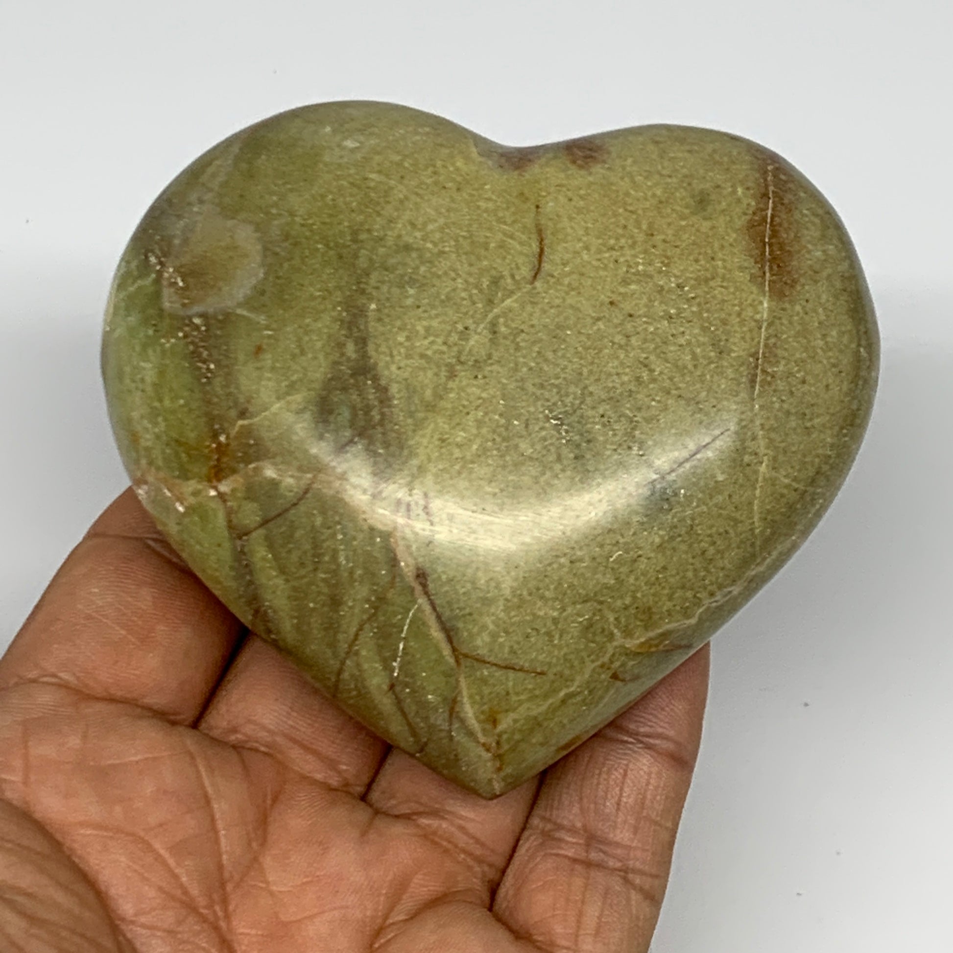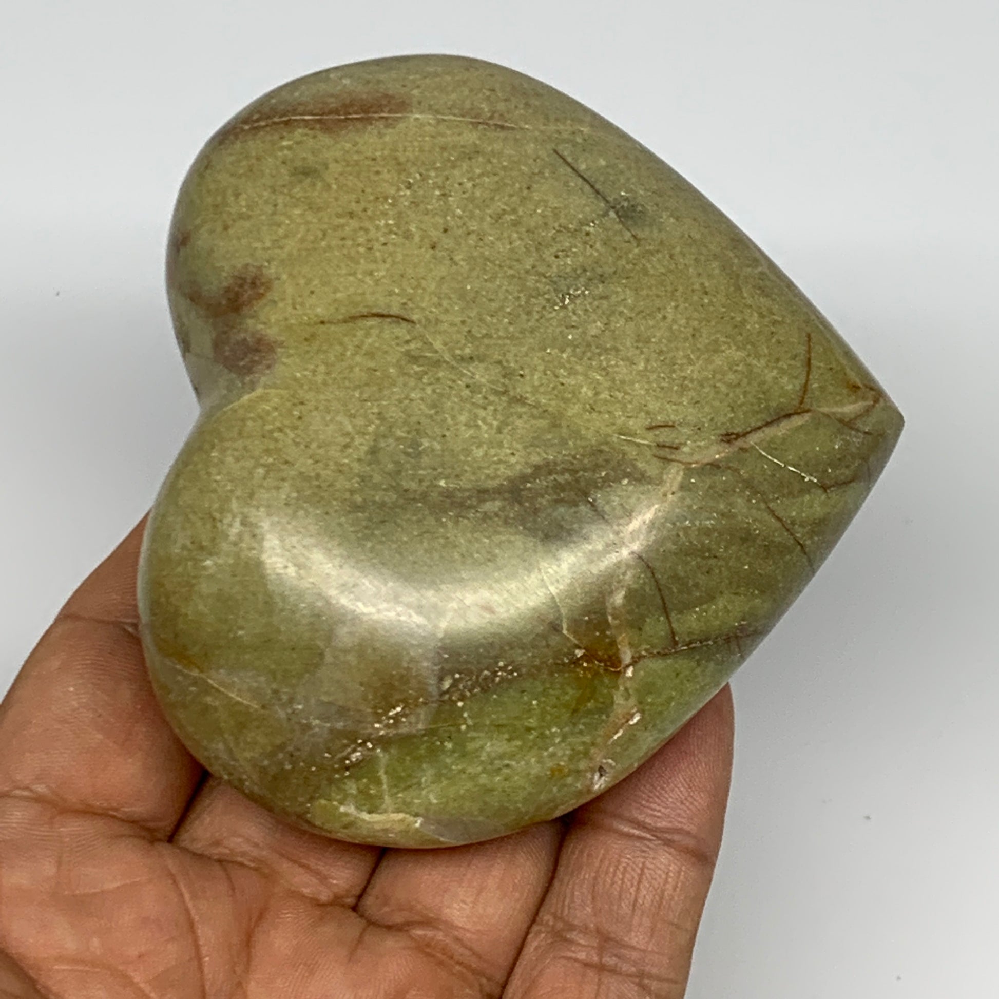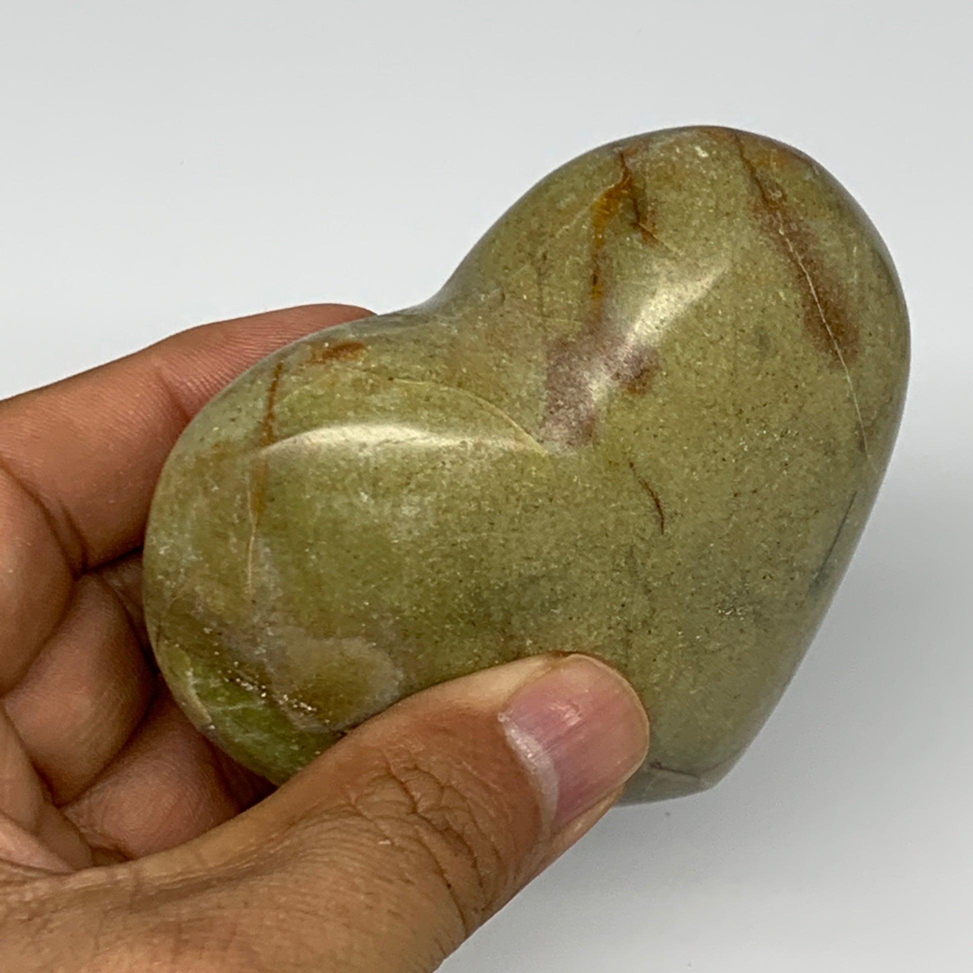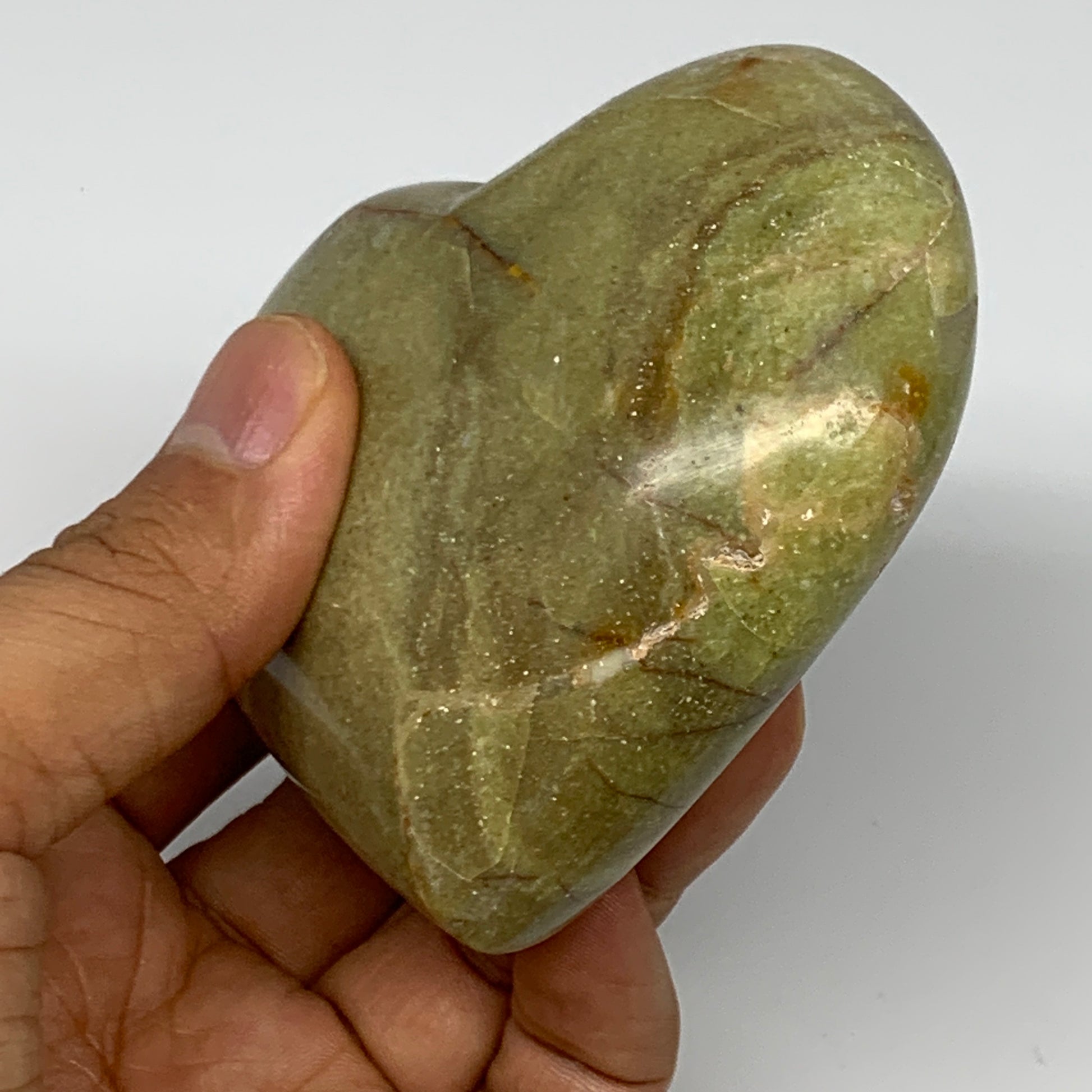 210.8g,2.9"x3.2"x1.3", Green Opal Heart Polished Gemstone @Madagascar, B17578