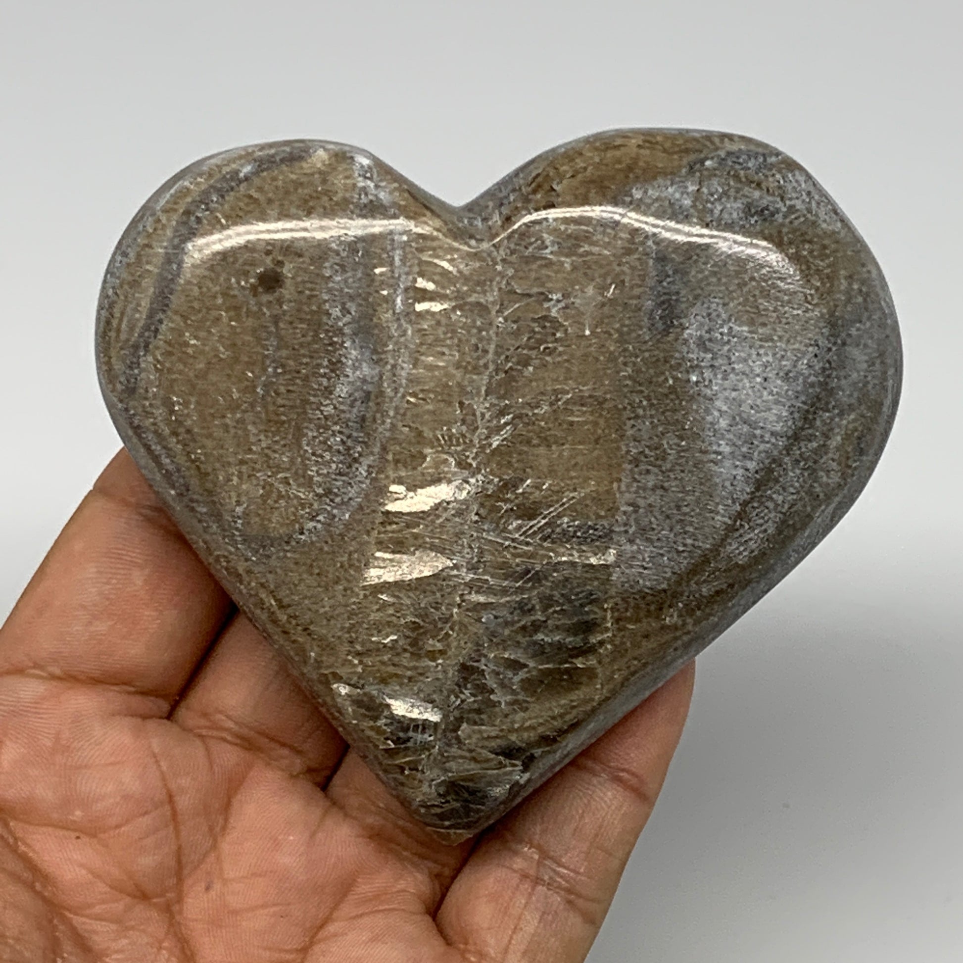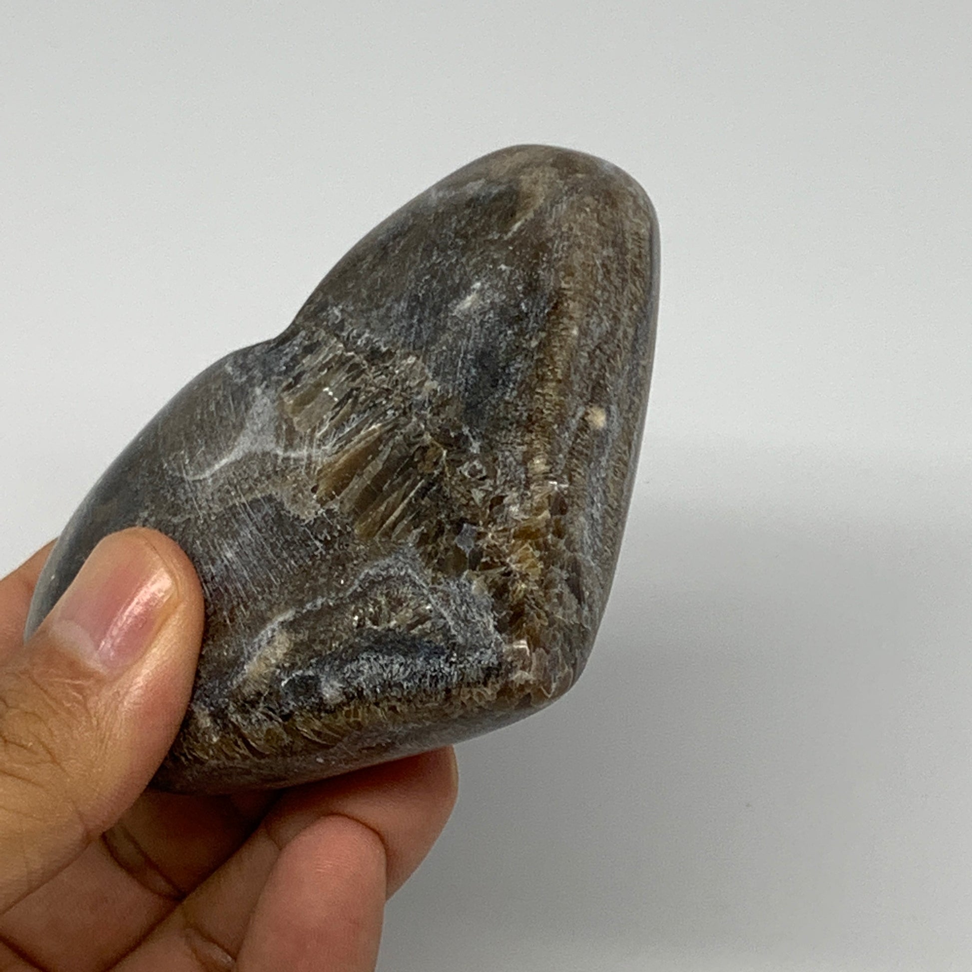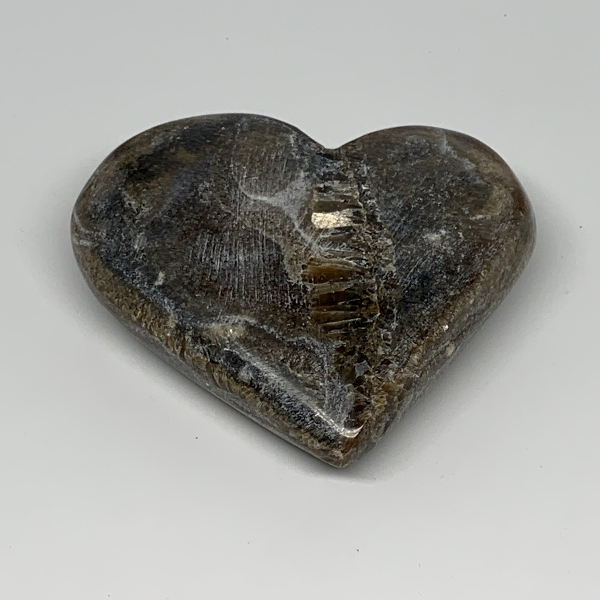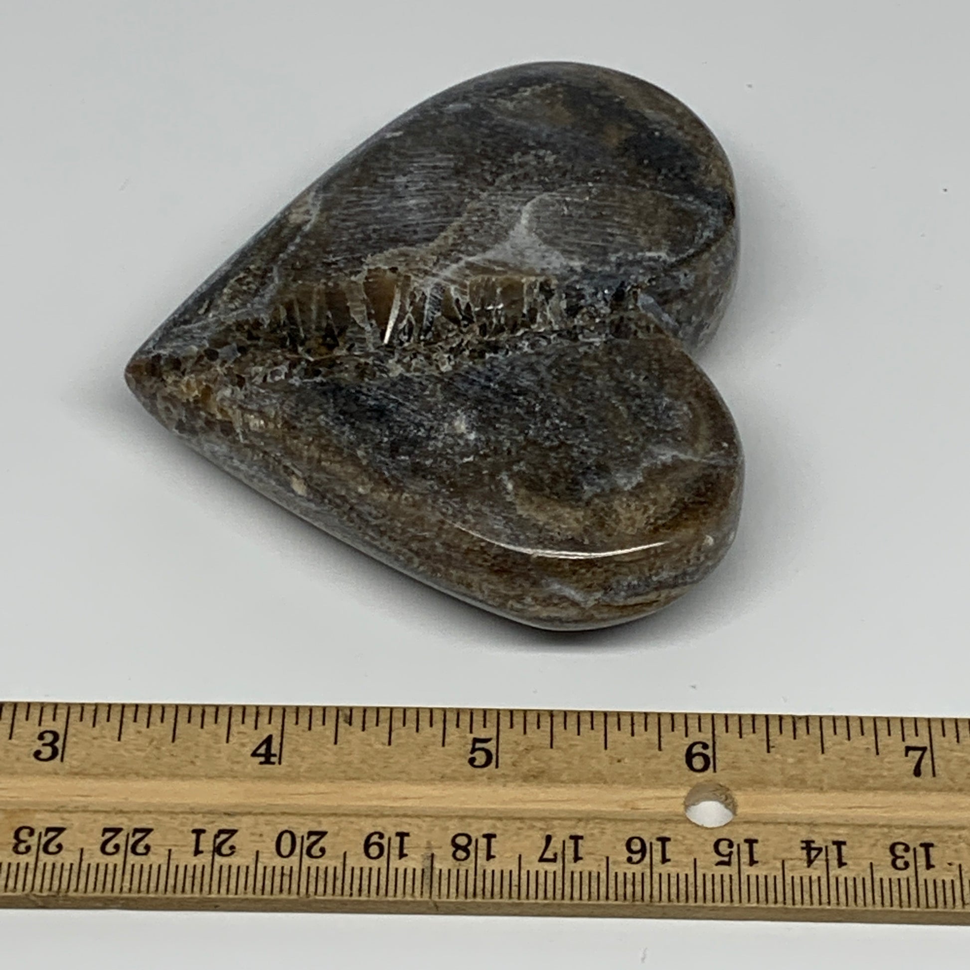 212.4g,3.2"x3.5"x1" Natural Chocolate Gray Onyx Heart Polished @Morocco,B18790