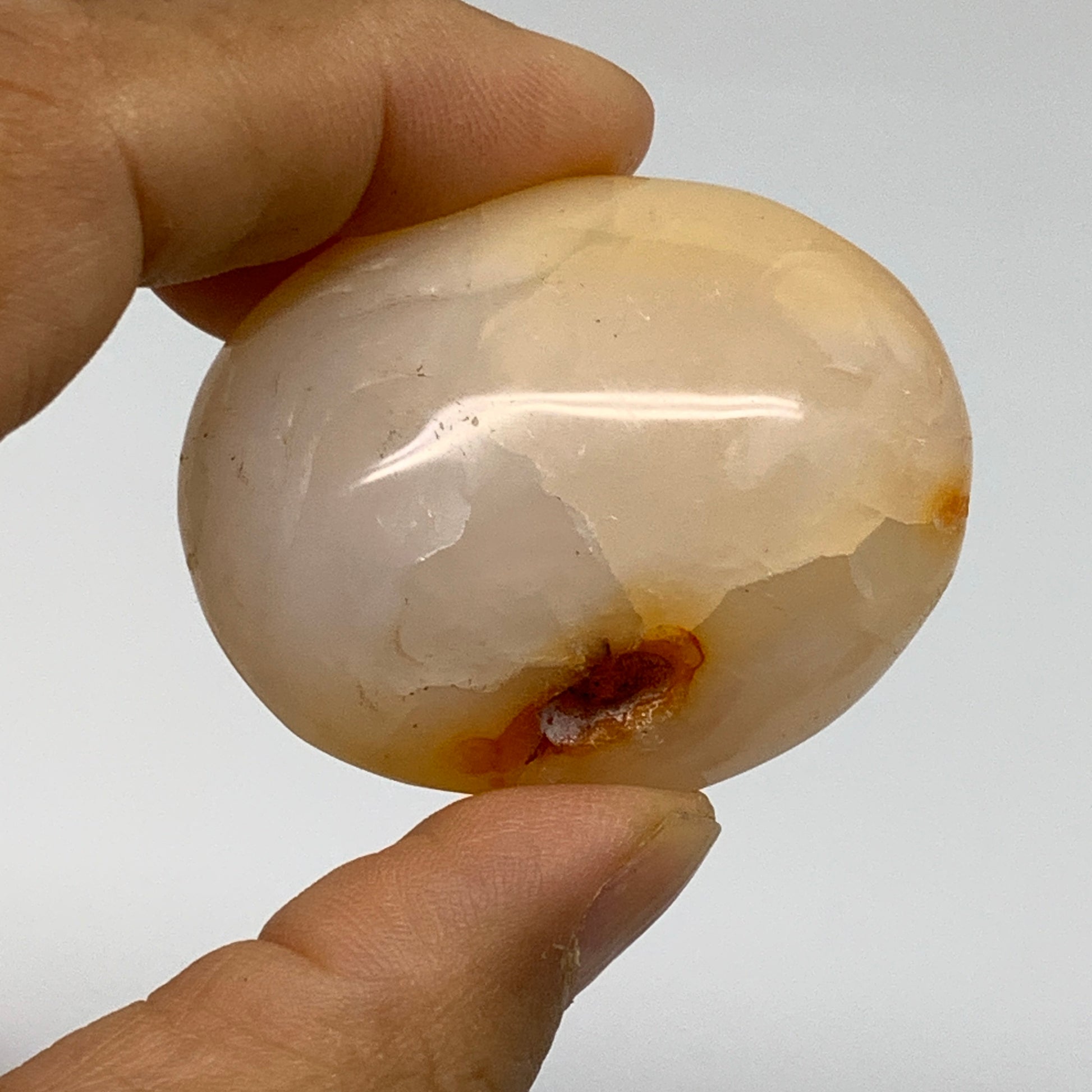 Color: The characteristic reddish-orange color of carnelian comes from iron oxide impurities within the silica that formed the chalcedony.