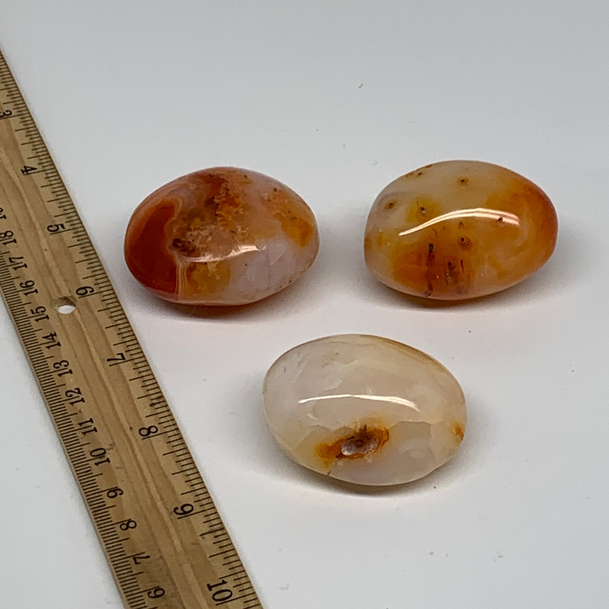 212.5g, 1.8"-1.9", 3pcs, Red Carnelian Palm-Stone Gem Crystal Polished, B37615