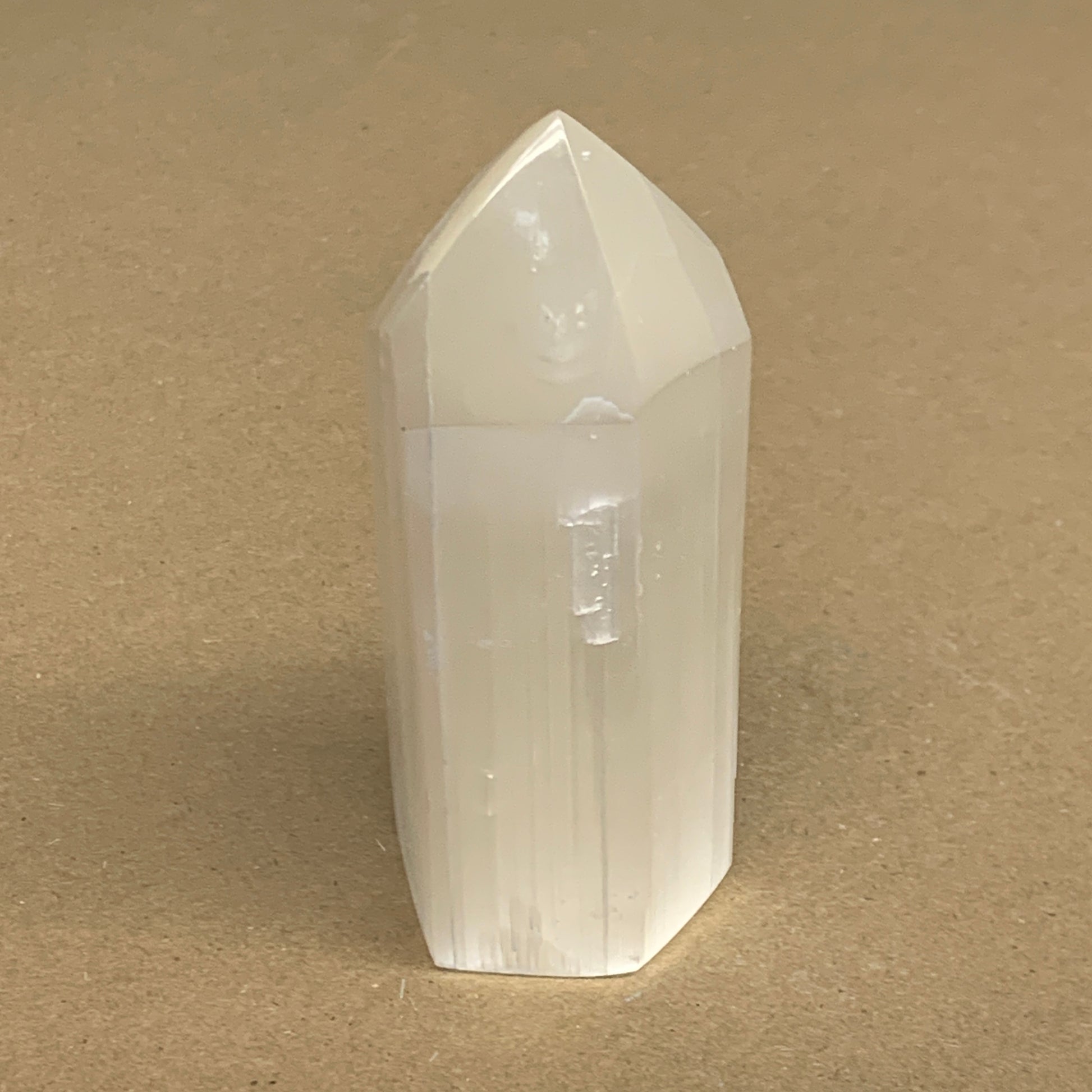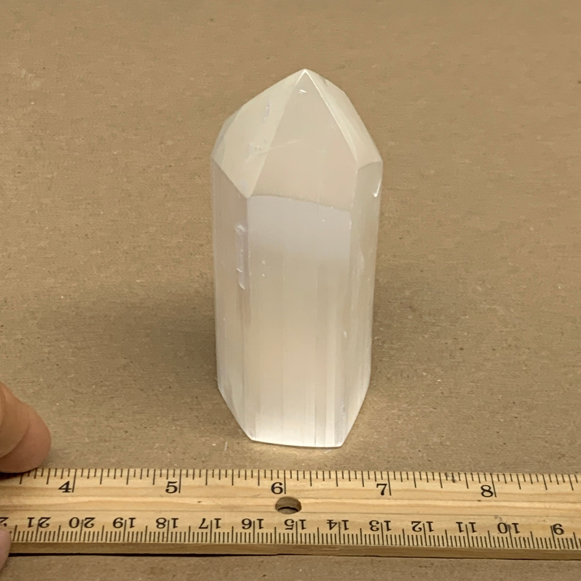 212.6g, 3.9"x1.5", Selenite (Satin Spar) Crystal Tower Point, B36038
