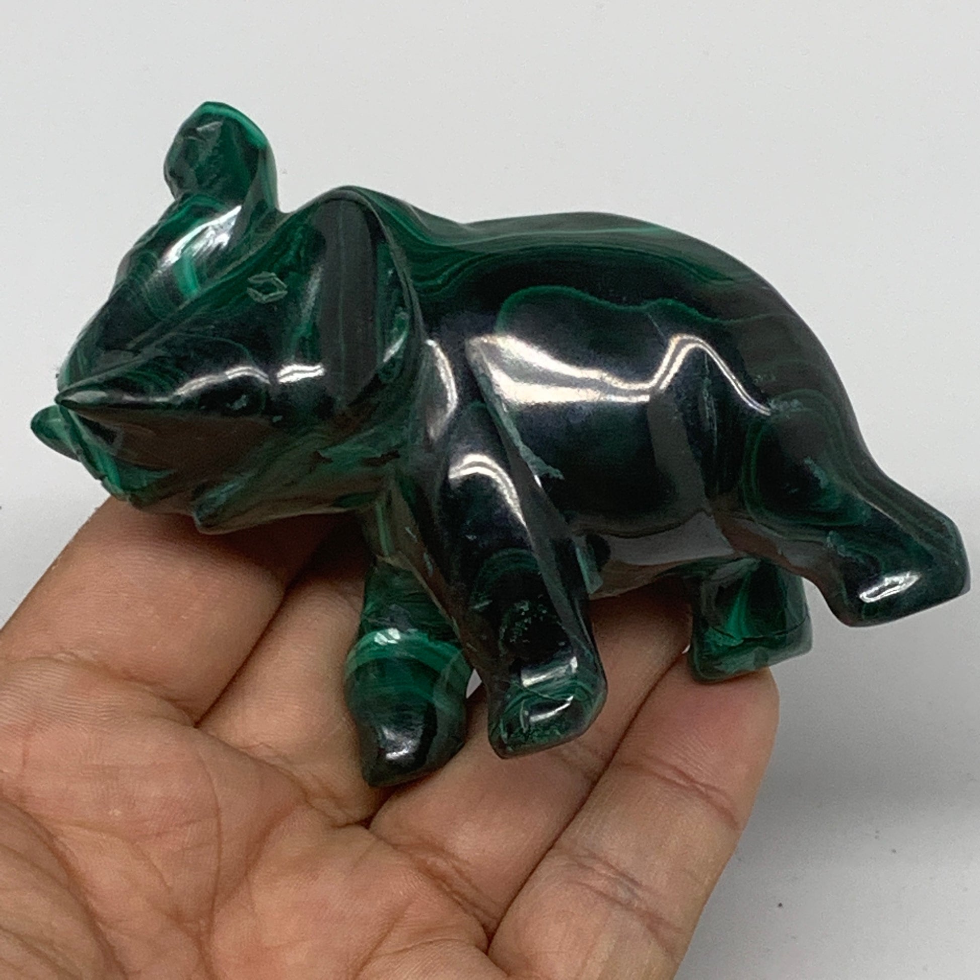 213.1g, 3.7"x1.4"x2.8" Natural Solid Malachite Elephant Figurine @Congo, B7262