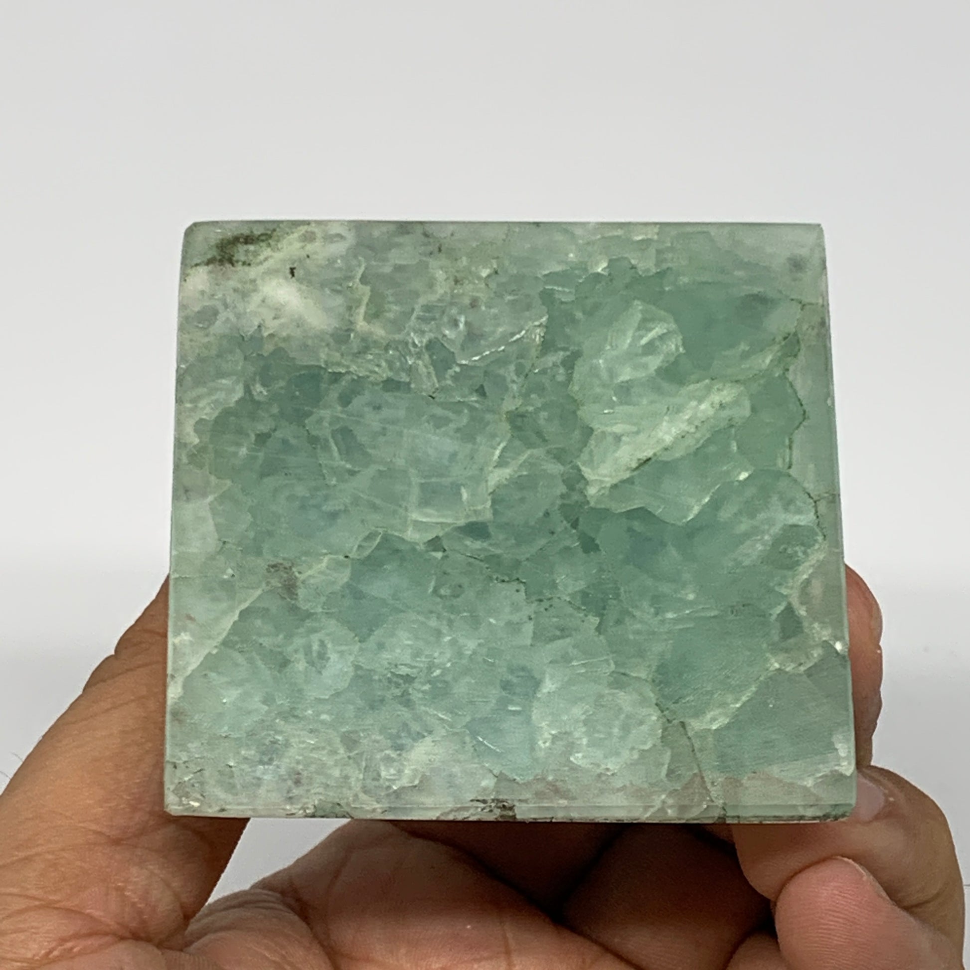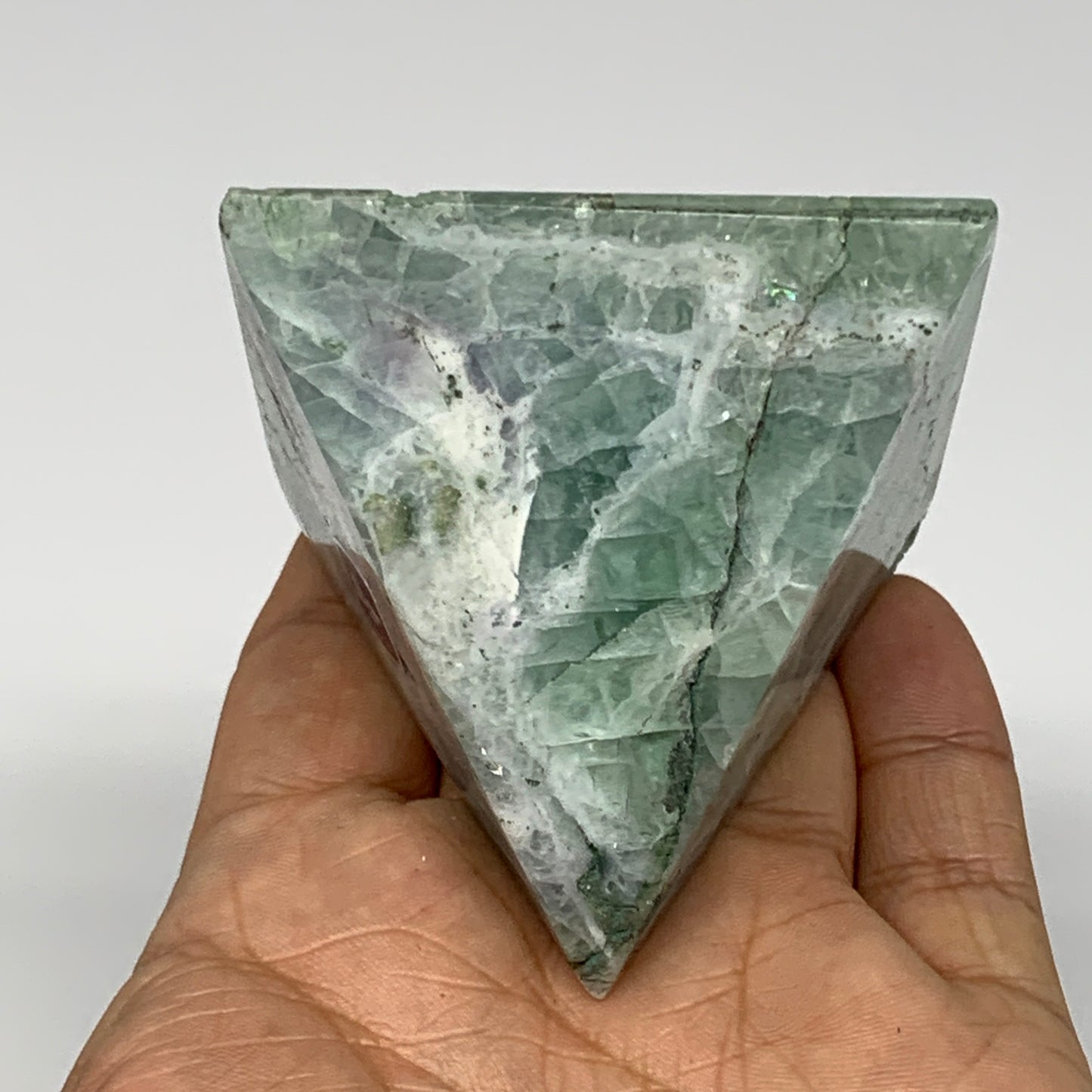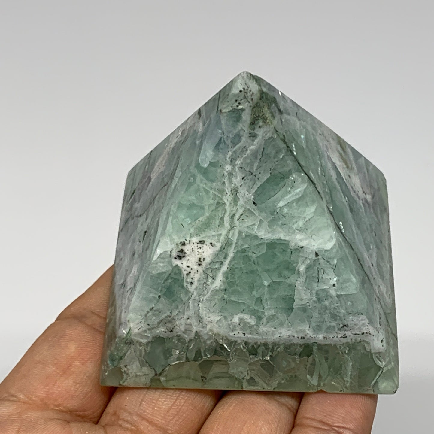 214.6g, 2.2"x2.4"x2.3" Natural Green Fluorite Pyramid Crystal Gemstone @Mexico, B18605