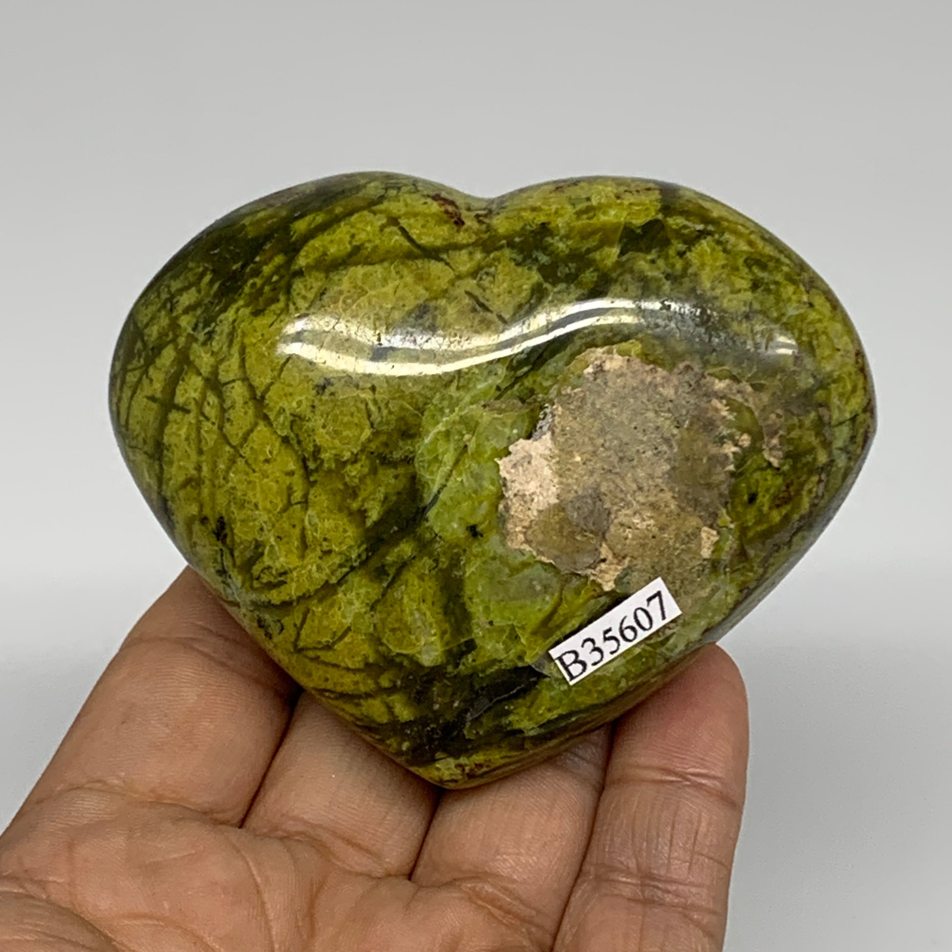 215.9g, 2.6"x3.2"x1.4", Green Opal Heart Polished Gemstone Crystal, B35607