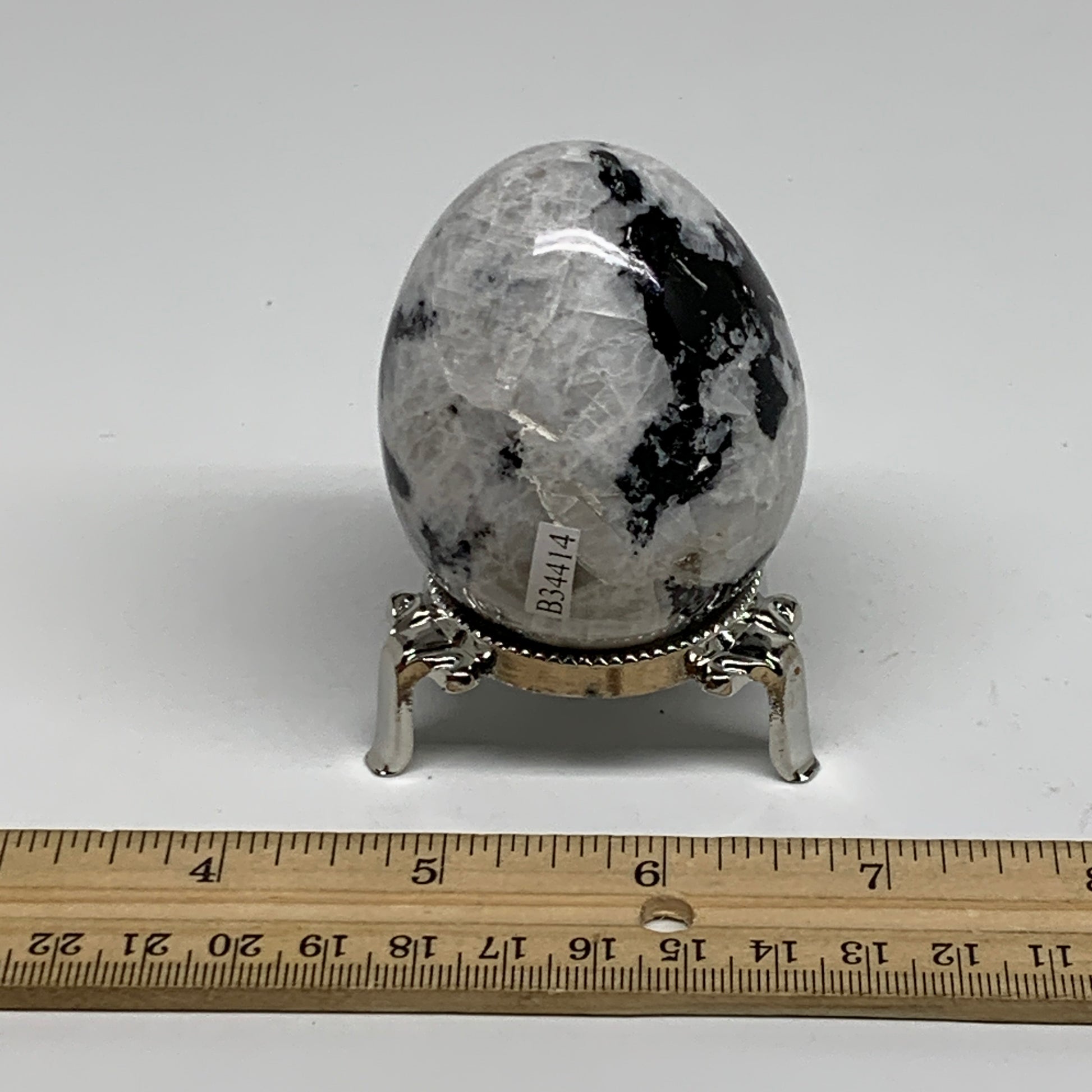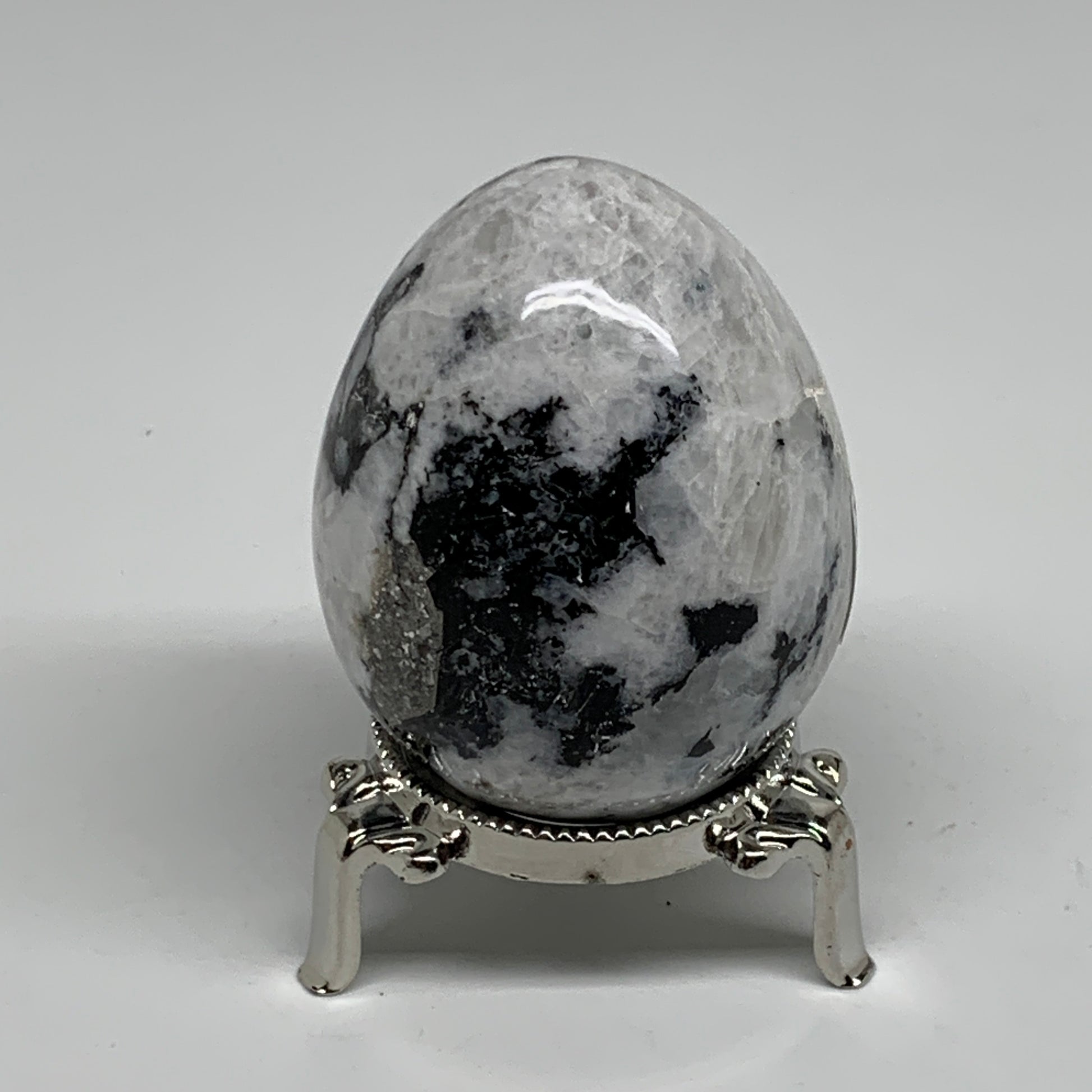 216g, 2.5"x1.9", Natural Gemstone White Rainbow Moonstone Egg, B34414
