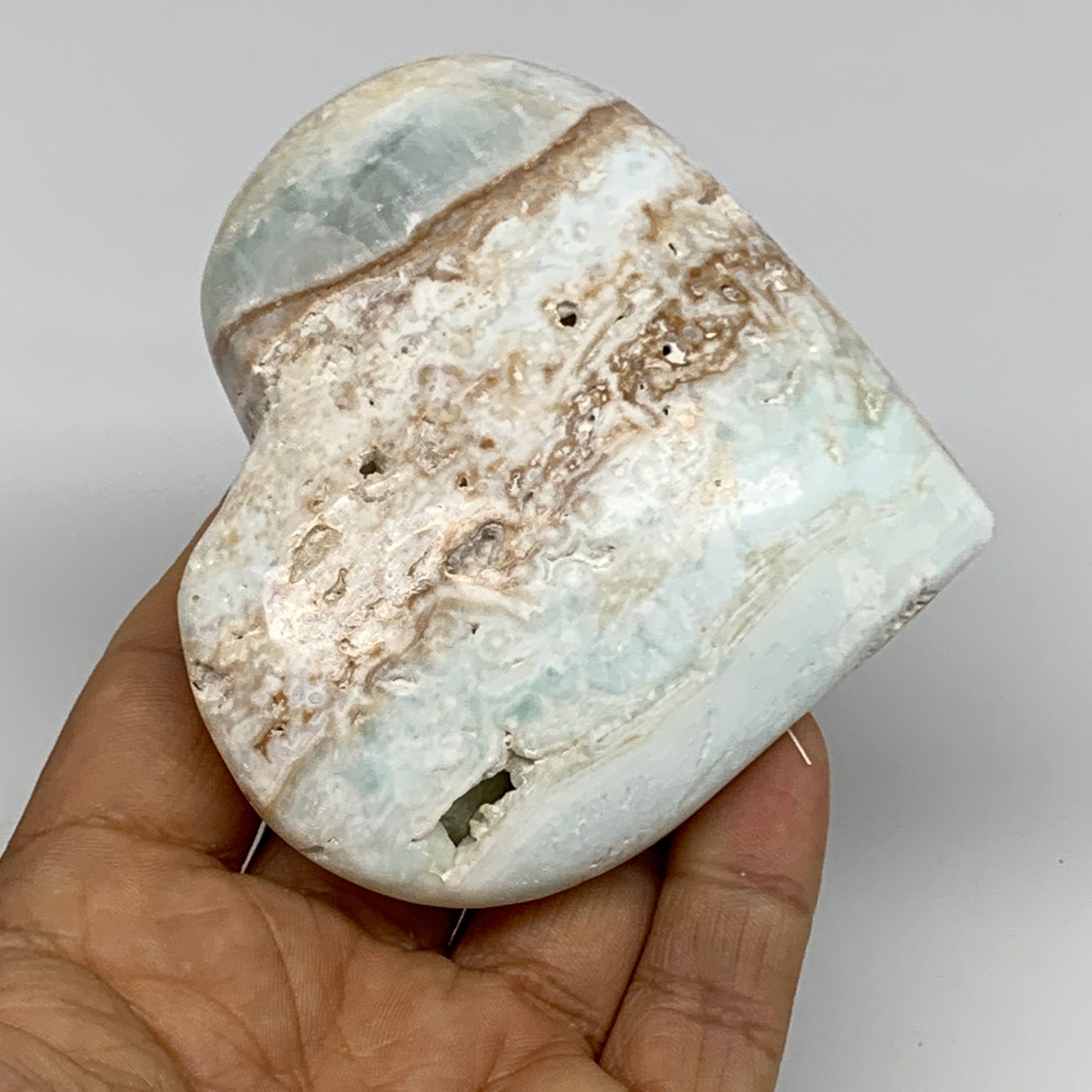 218.6g, 3.1"x3.4"x1.1" Caribbean Calcite Heart Gemstones @Afghanistan,B33649