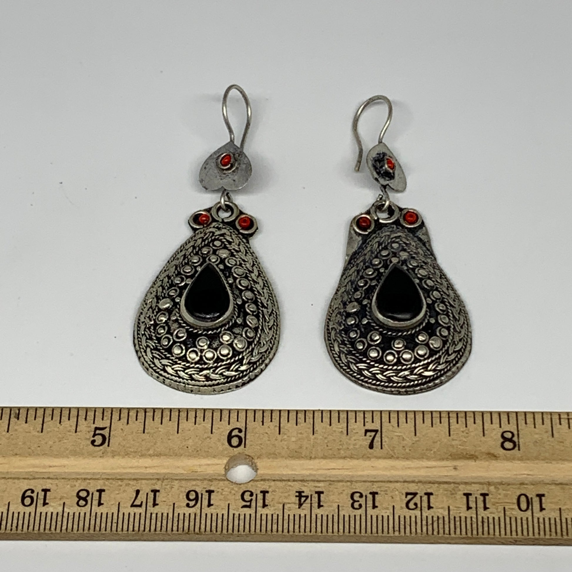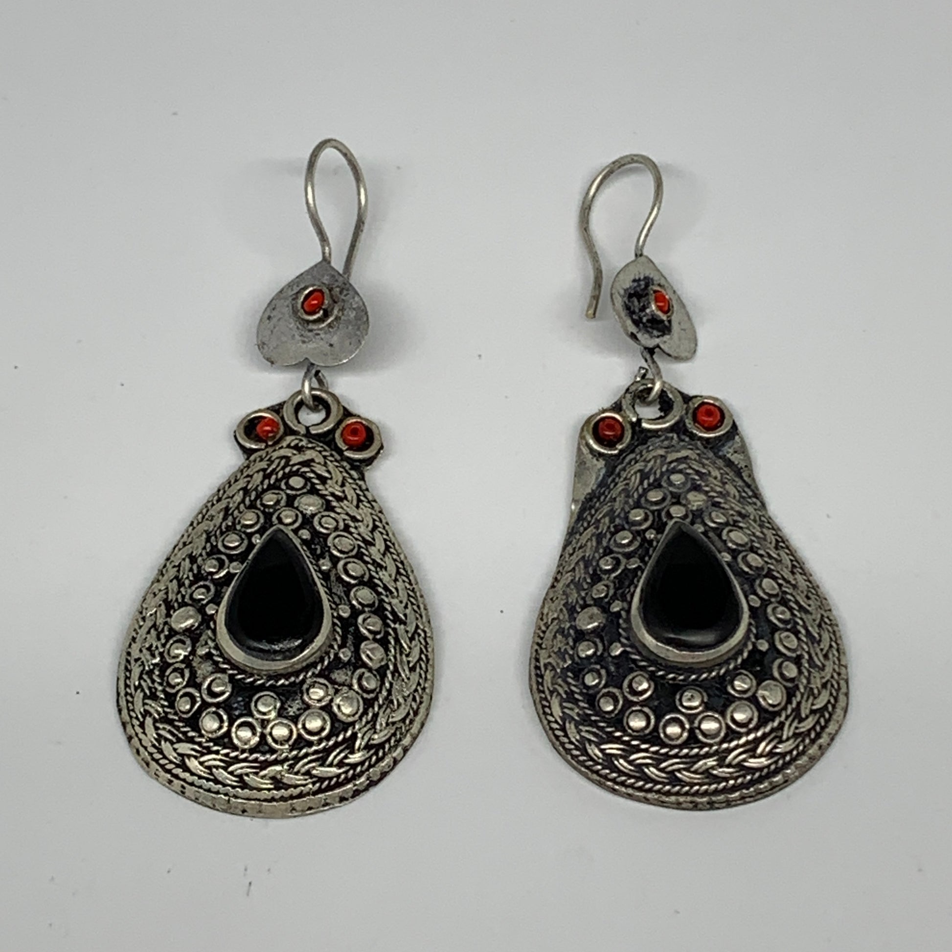 22.8g, 2.8"x1.1" Turkmen Earring Tribal Jewelry Black Carnelian Teardrop Boho, B14228