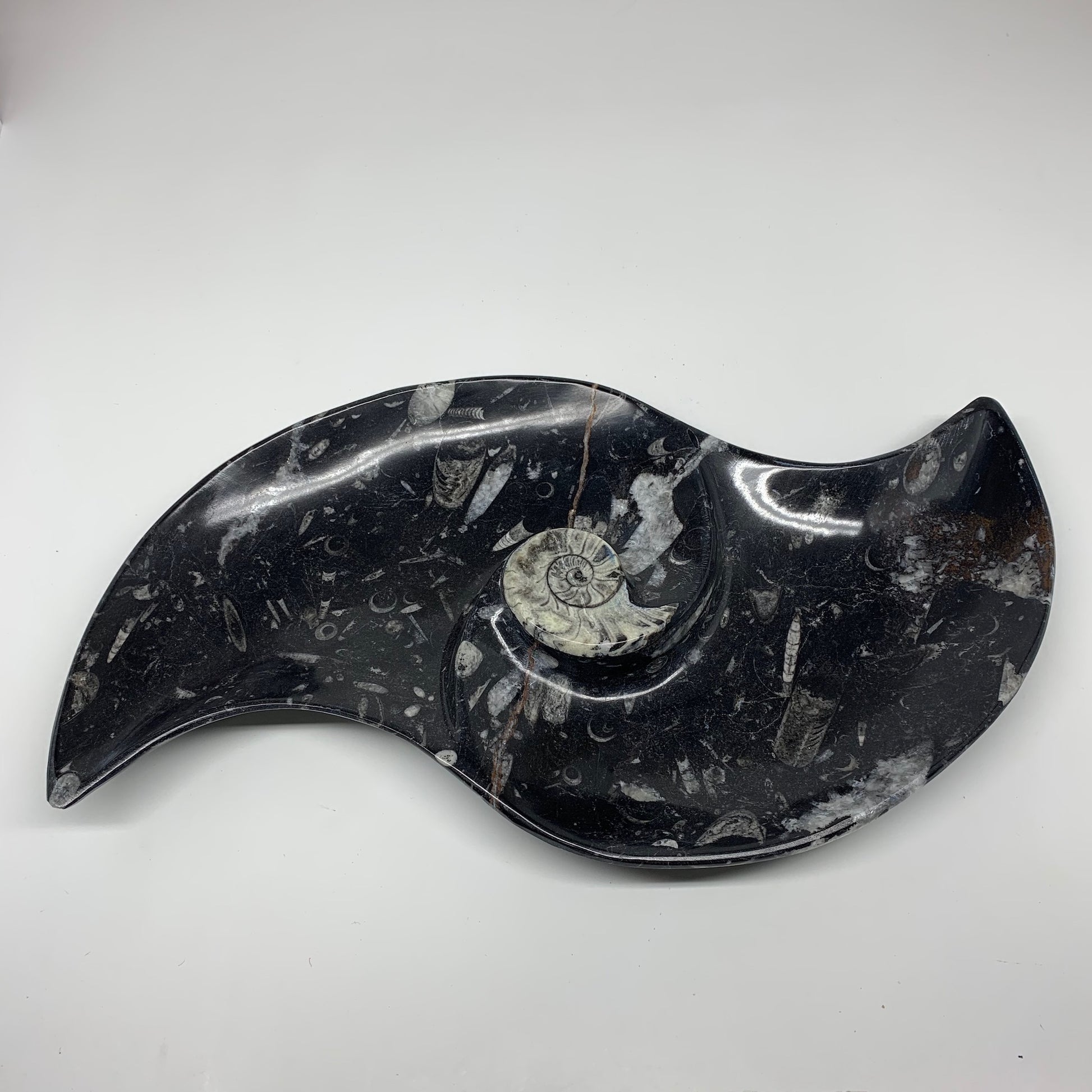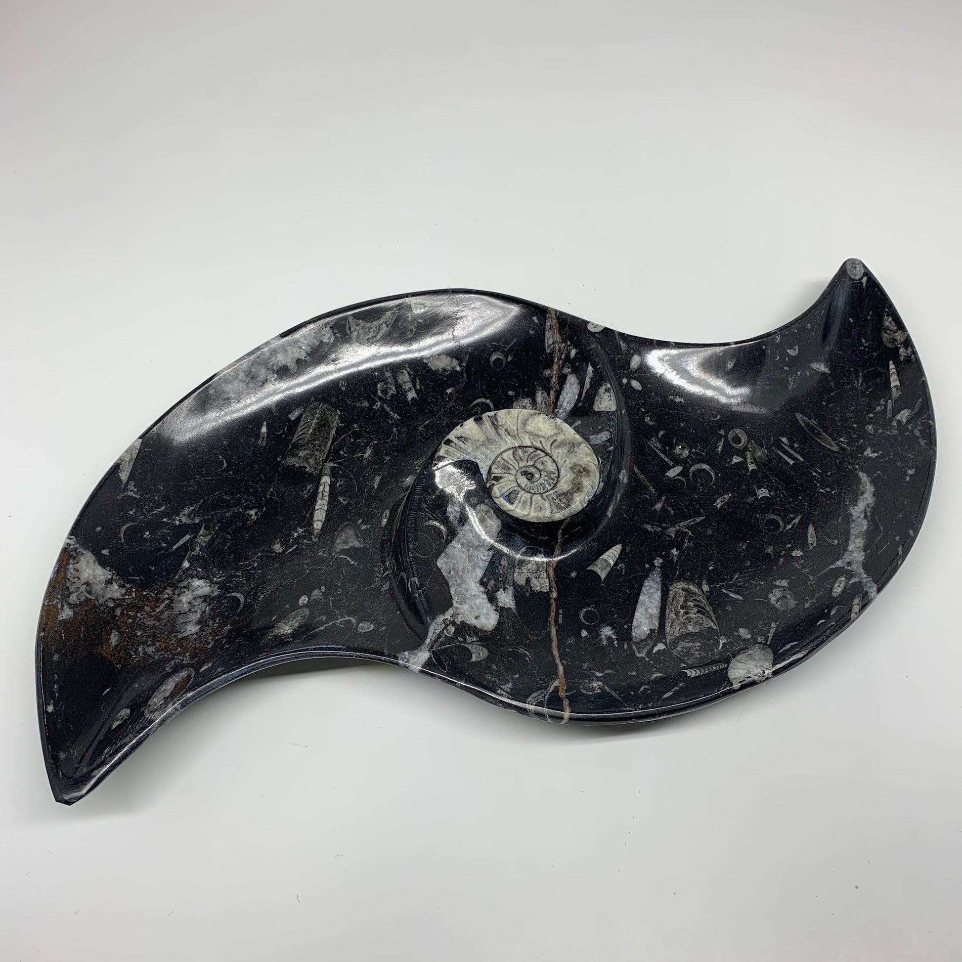2200g, 17"x8" Large Wave Ring Shape Black Marble Dish Orthoceras @Morocco,F283