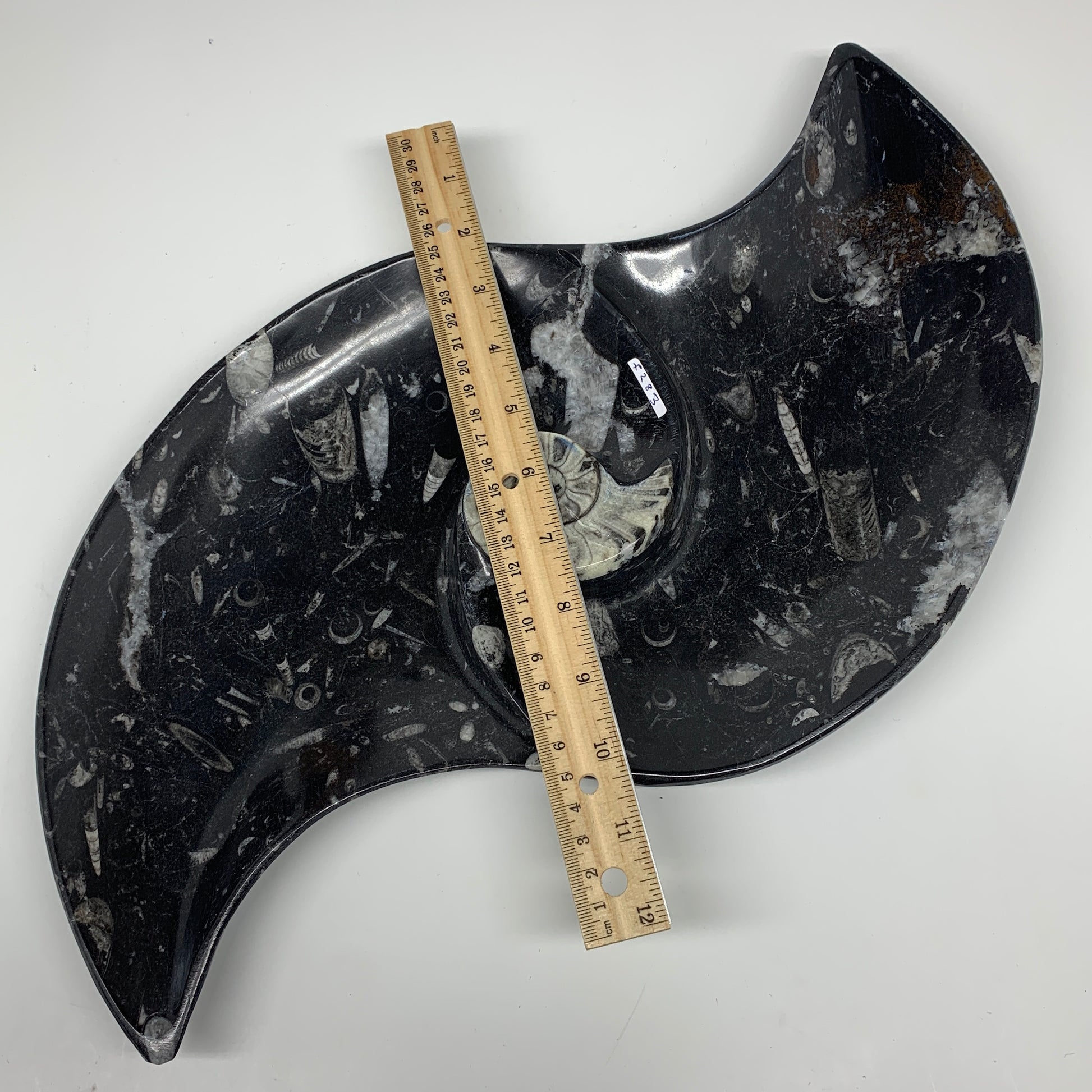 2200g, 17"x8" Large Wave Ring Shape Black Fossils Dish Orthoceras @Morocco,F283