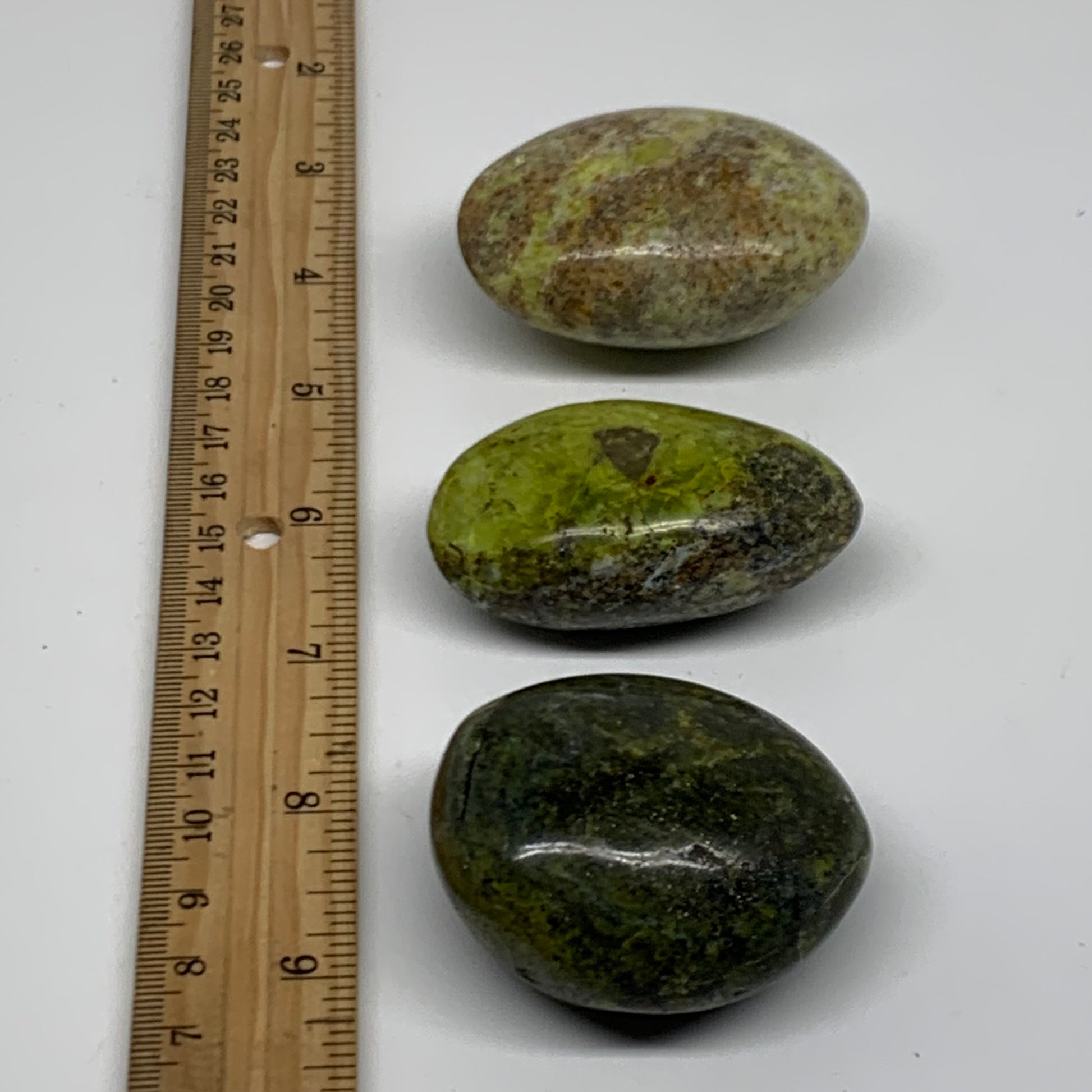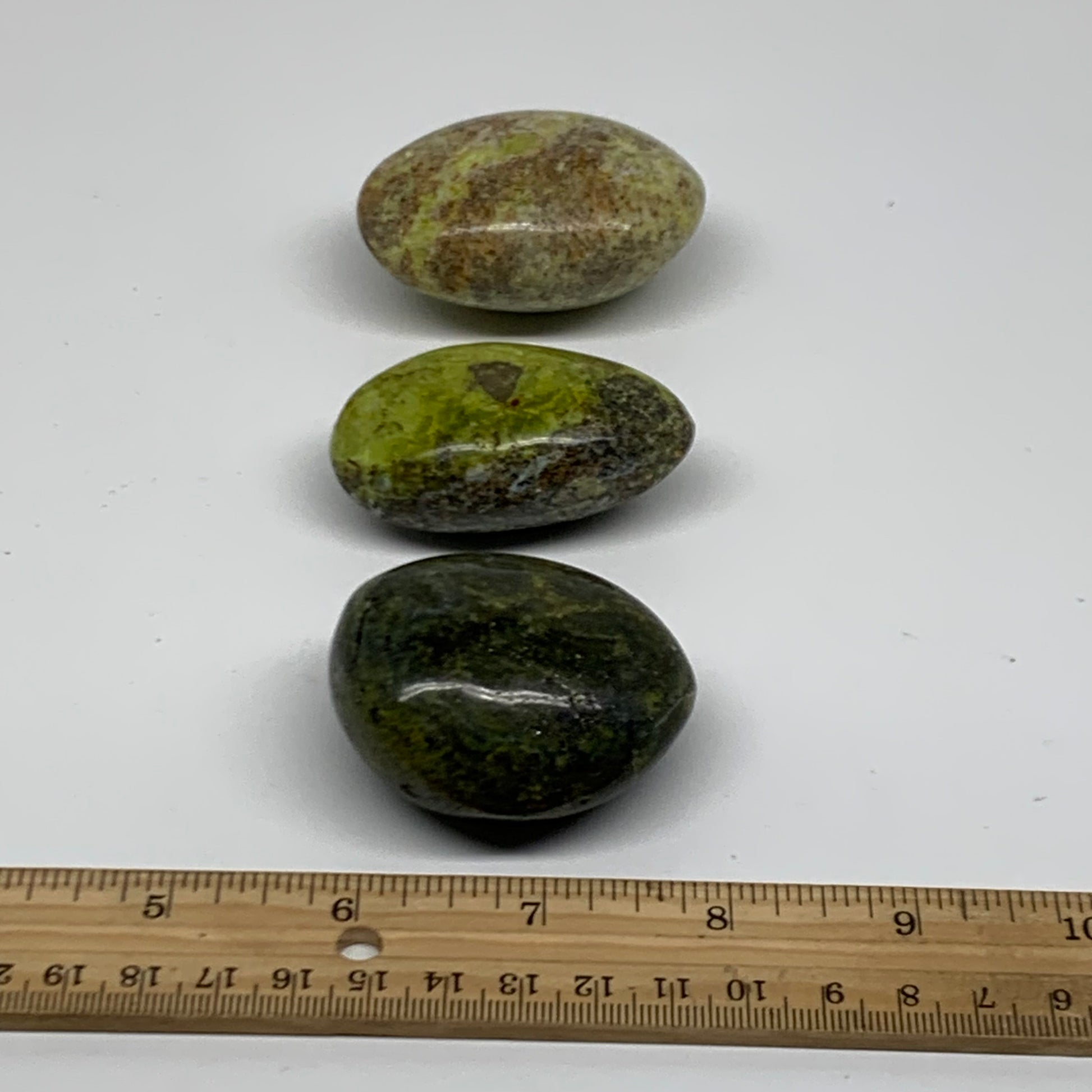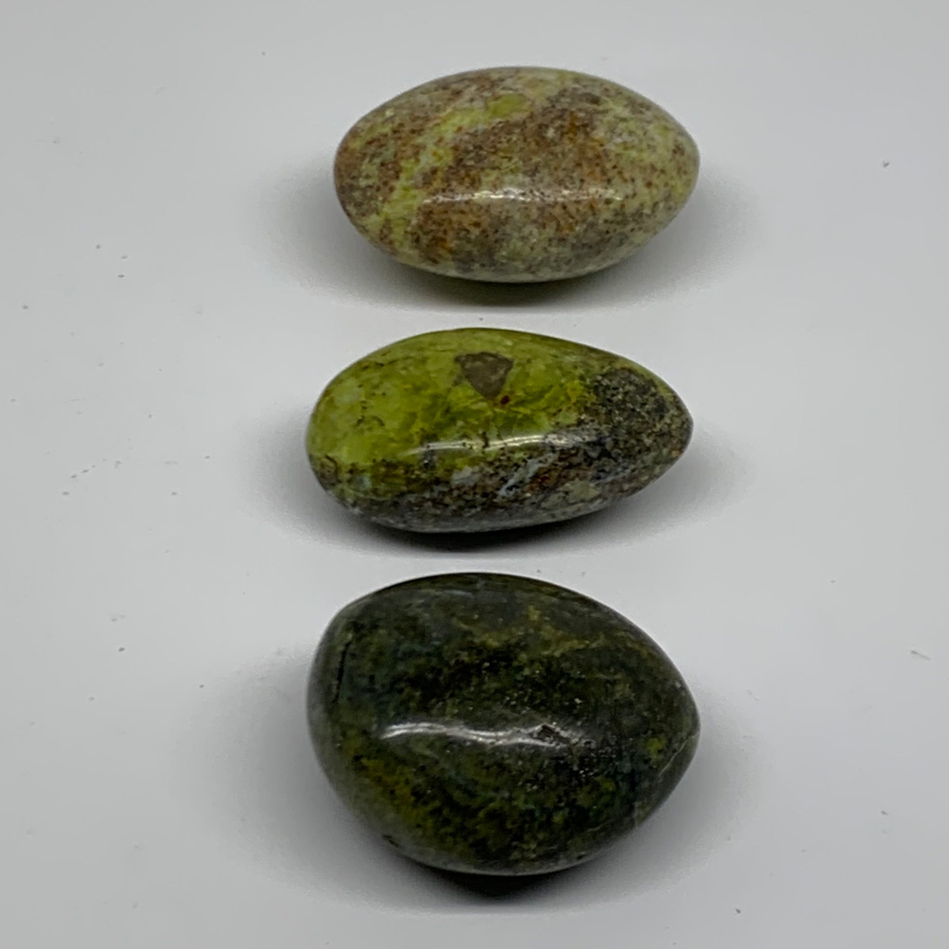 220g, 2.1"-2.3", 3pcs, Green Opal Crystal PalmStone Polished Reiki, B38320