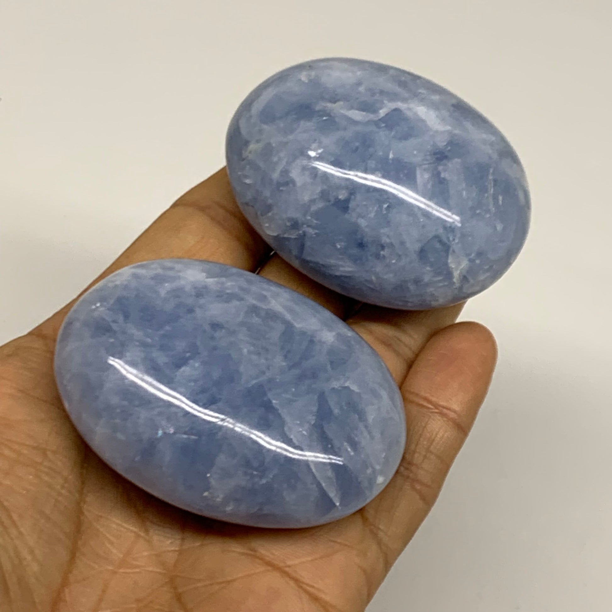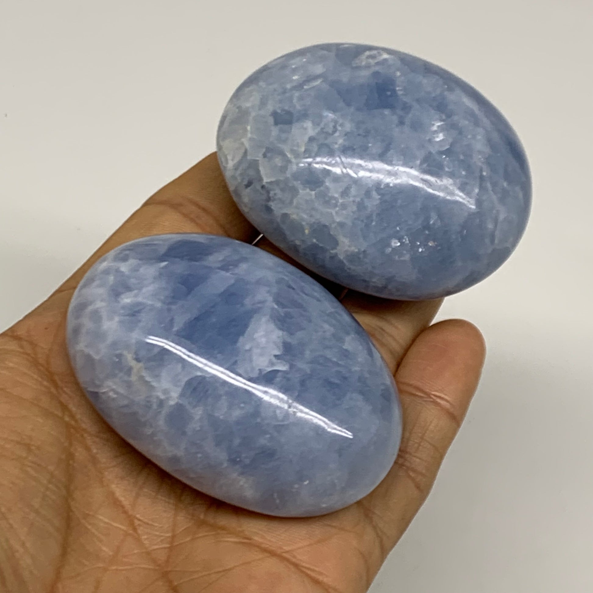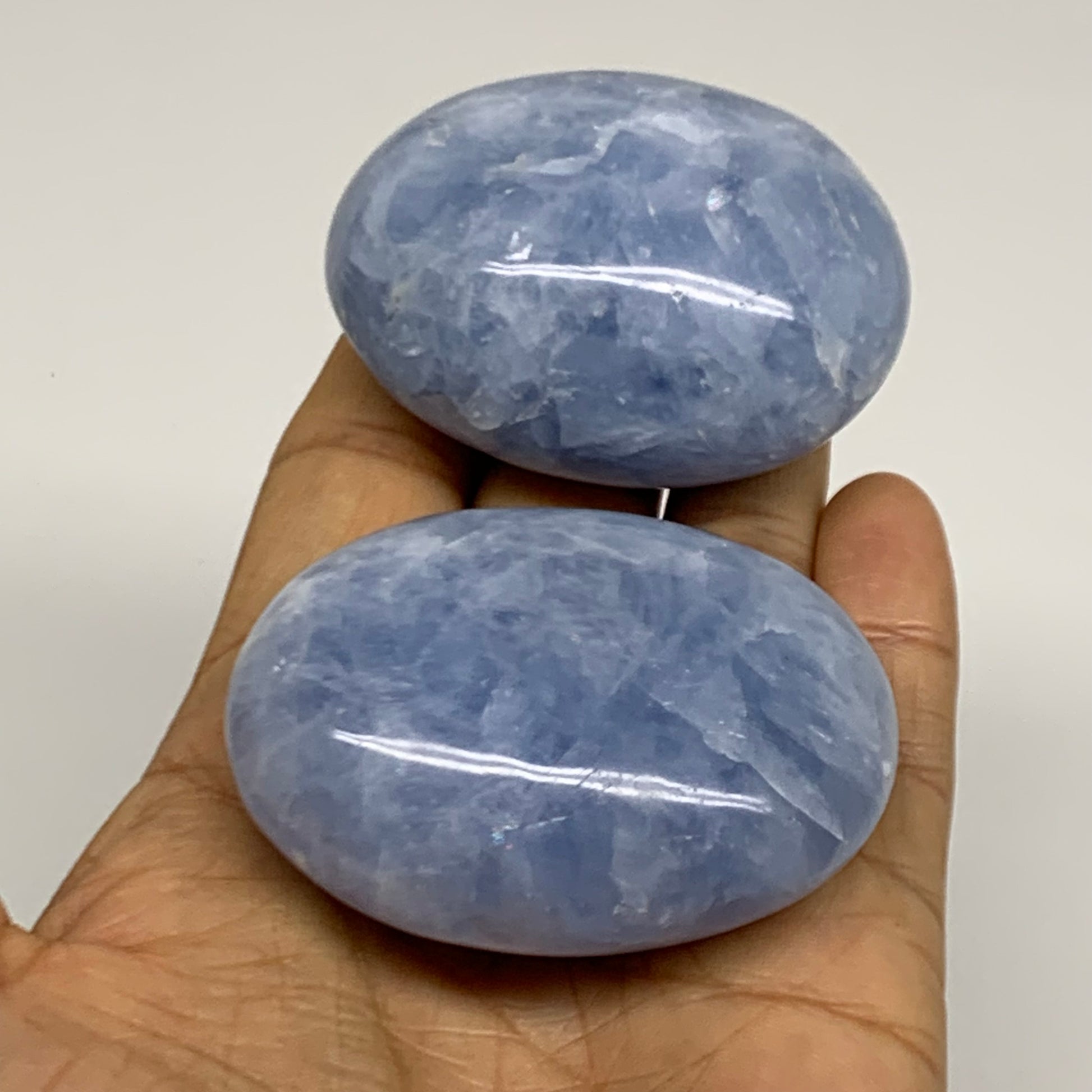 221.3g, 2.3"-2.4", 2pcs, Blue Calcite Palm-Stone Polished Tumbled, B38140