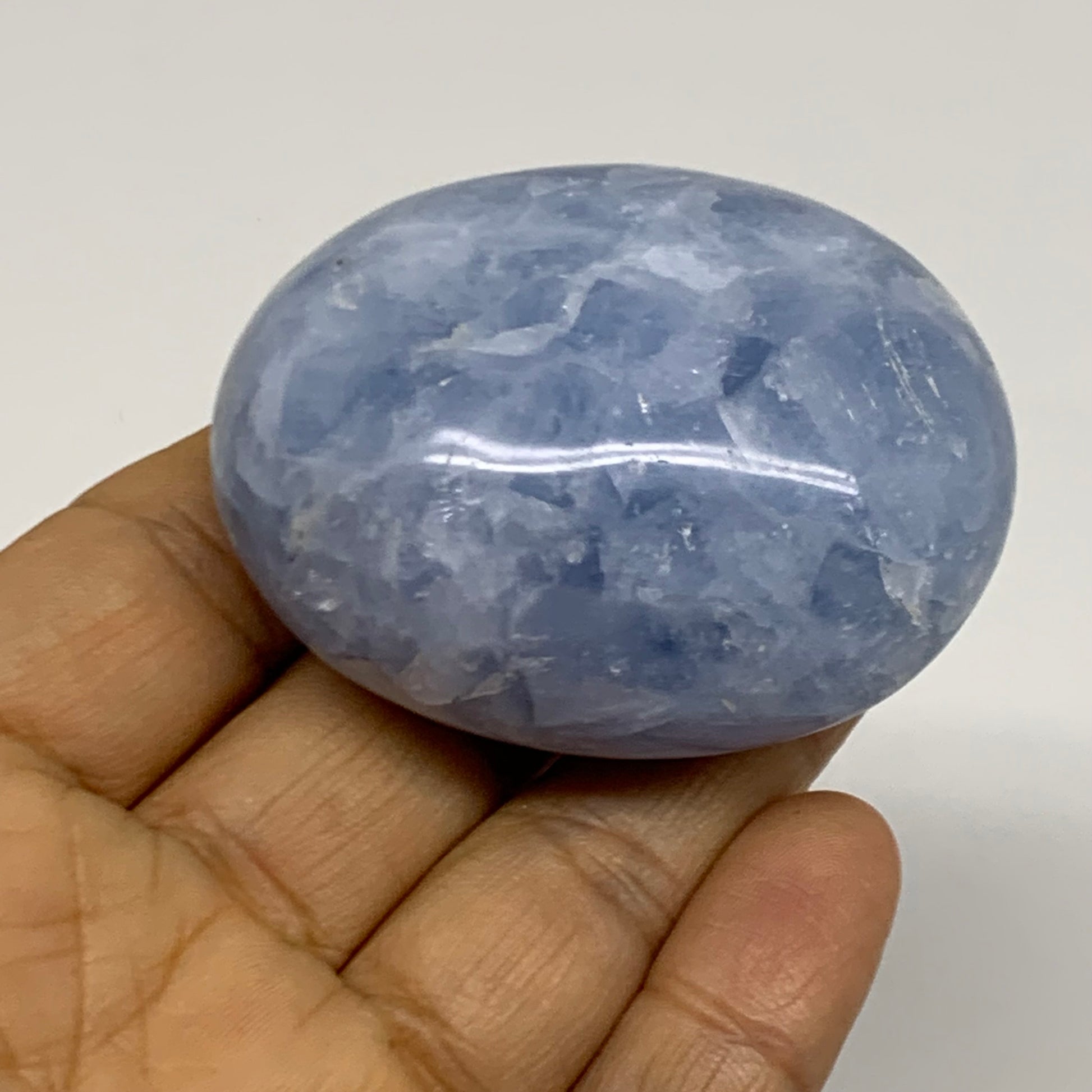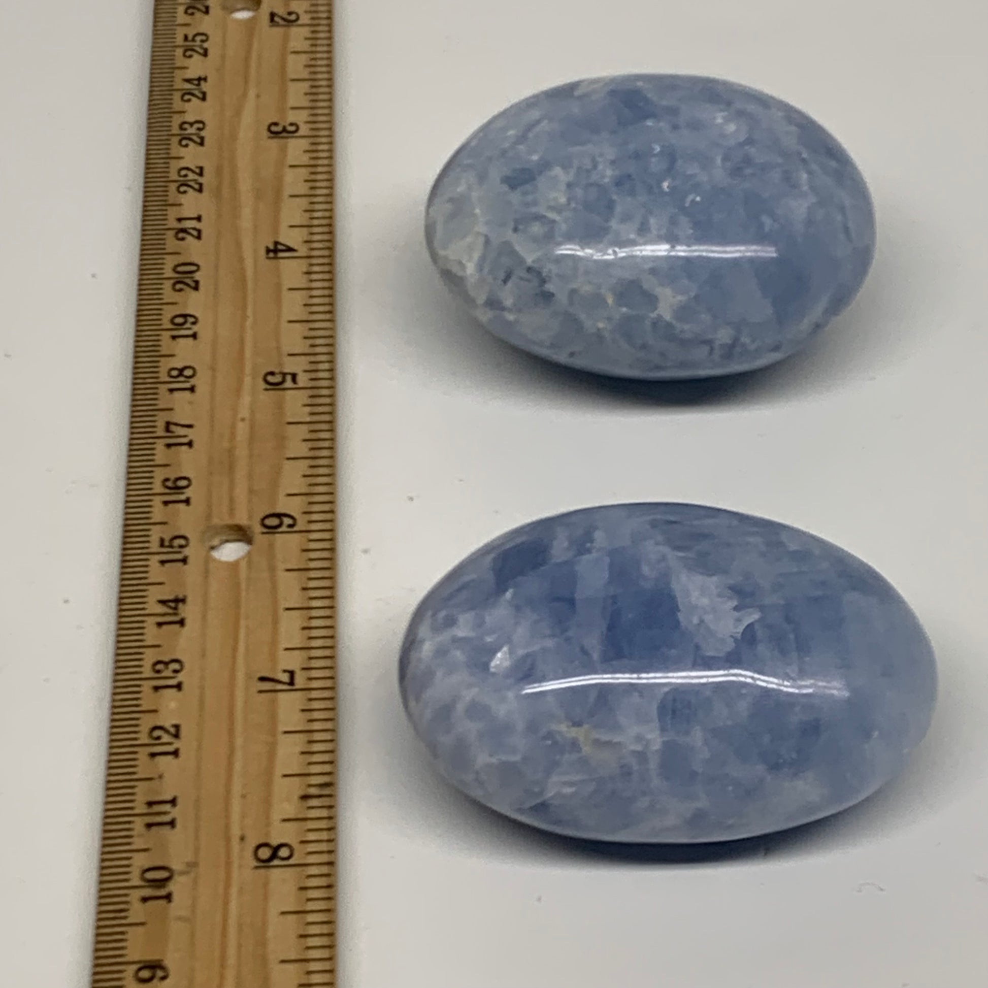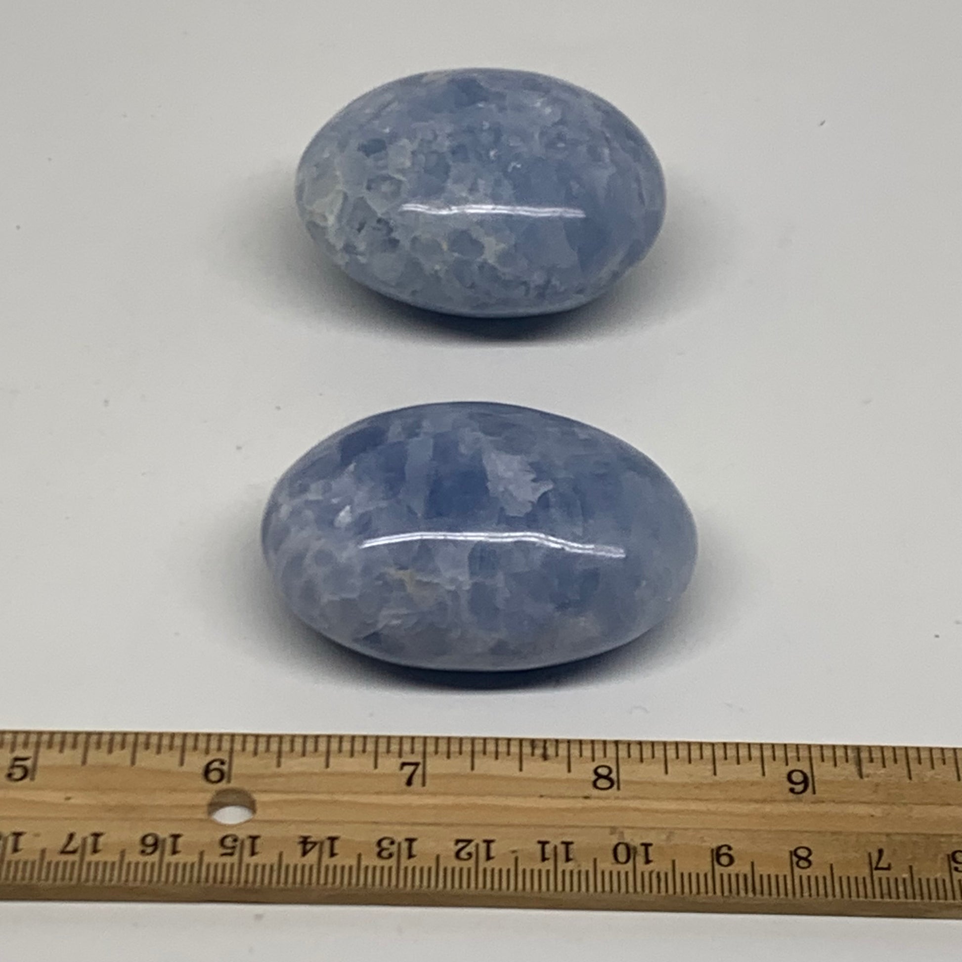 221.3g, 2.3"-2.4", 2pcs, Blue Calcite Palm-Stone Polished Tumbled, B38140