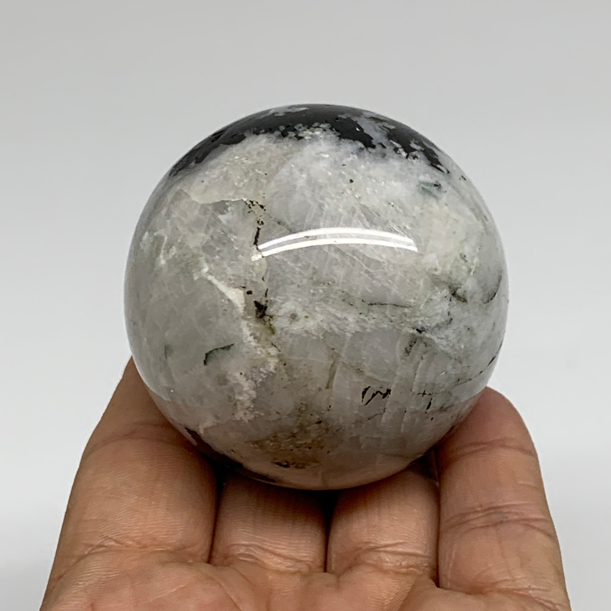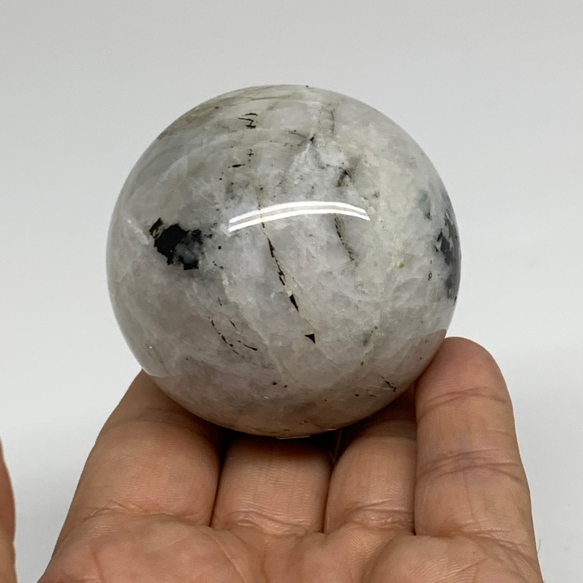 223.8g, 2.1"(54mm), Natural Rainbow Moonstone Sphere Ball Gemstone, B34333