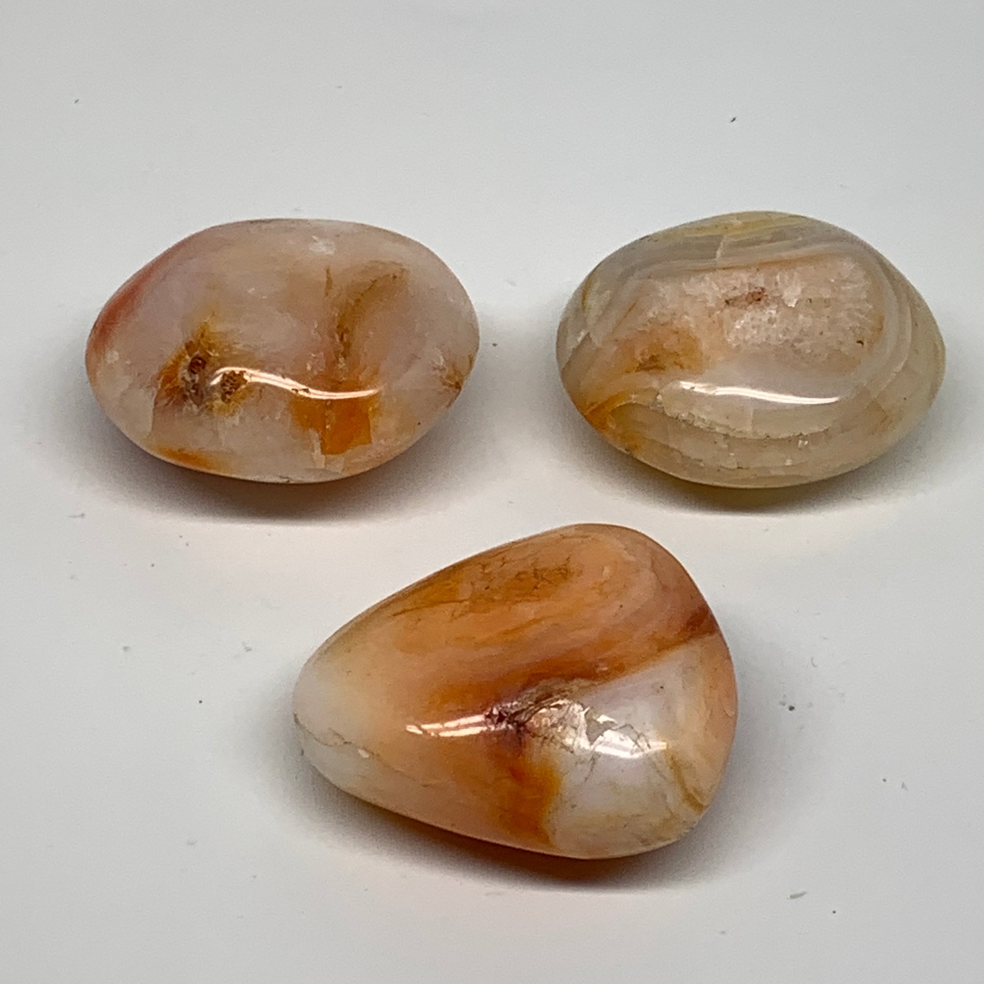 227.2g, 2"-2", 3pcs, Red Carnelian Palm-Stone Gem Crystal Polished, B37601