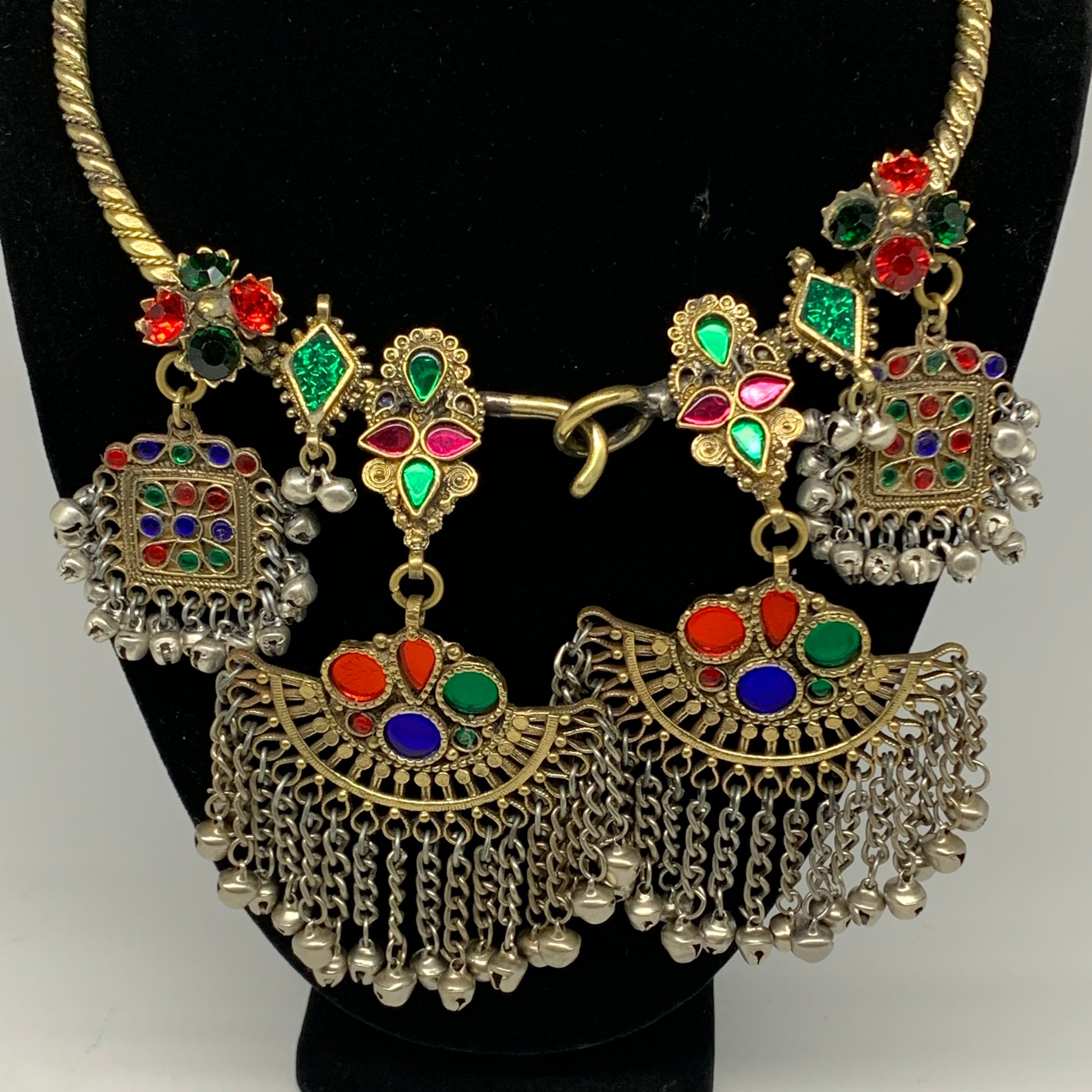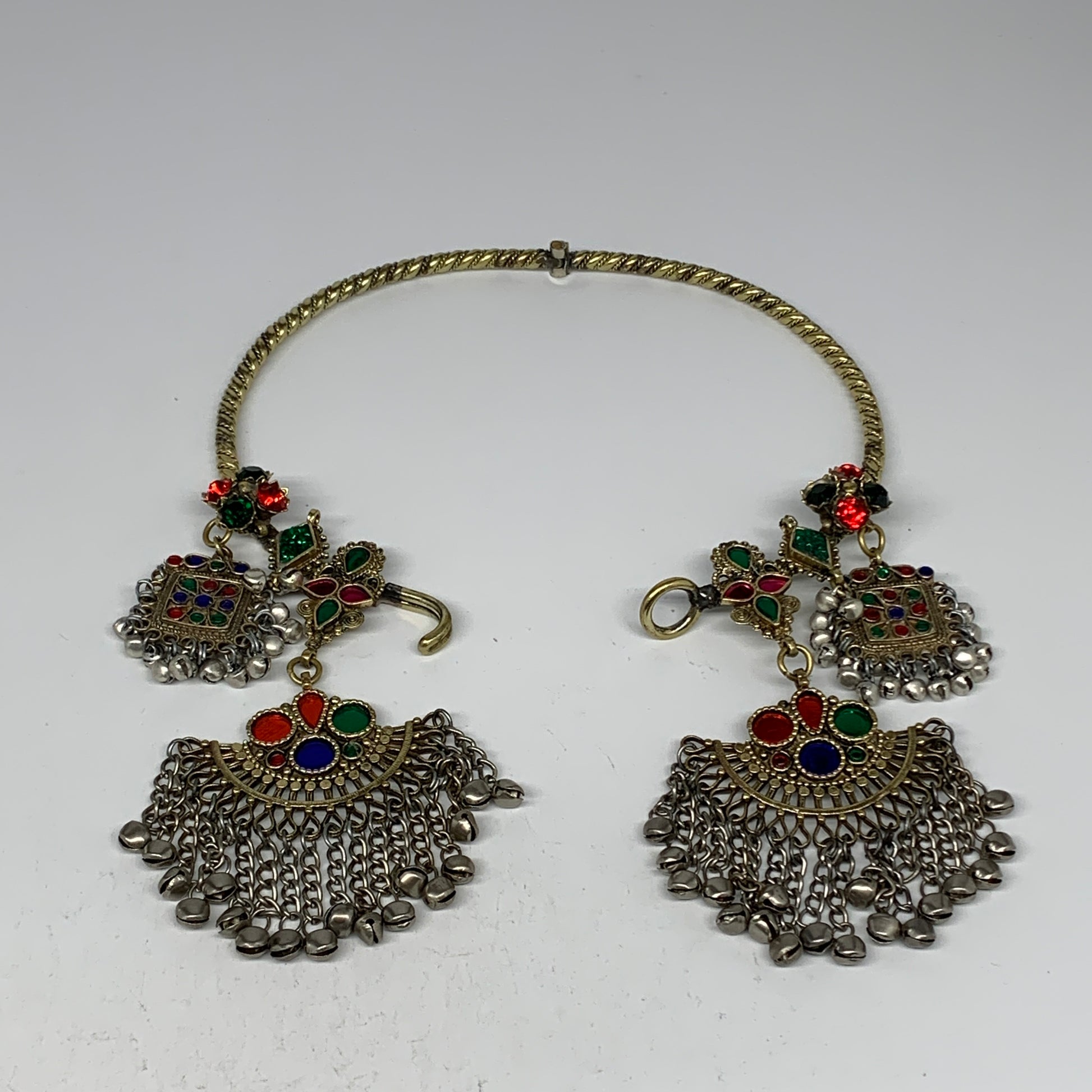 Although we hand select our jewelries, but still tribal Jewelries may have some wears & tears, missing beads or glasses, dangles, bells and jingles..etc so, please look at at the images carefully before purchasing. We took several images and very close up photos are taken to show you exactly what you will be receiving. The metals used in these kind of jewelries are called different names, some call it German Silver, some called it Gypsy and some call it Alpaca Silver or they could be just brass. We cannot confirm.