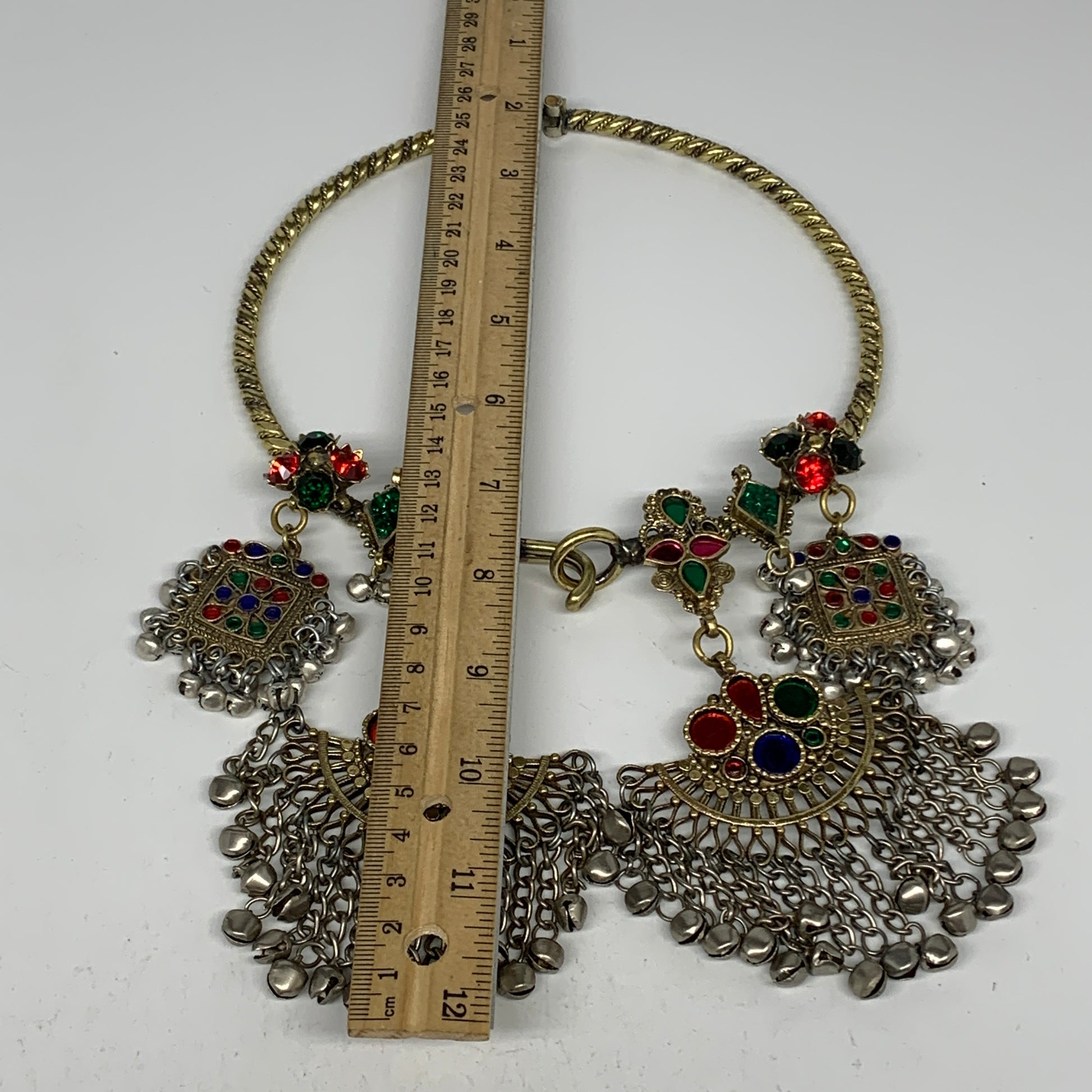 230g, 10"x5.5"Kuchi Turkmen Choker Necklace Multi-Color Tribal Gypsy Beho,B14151