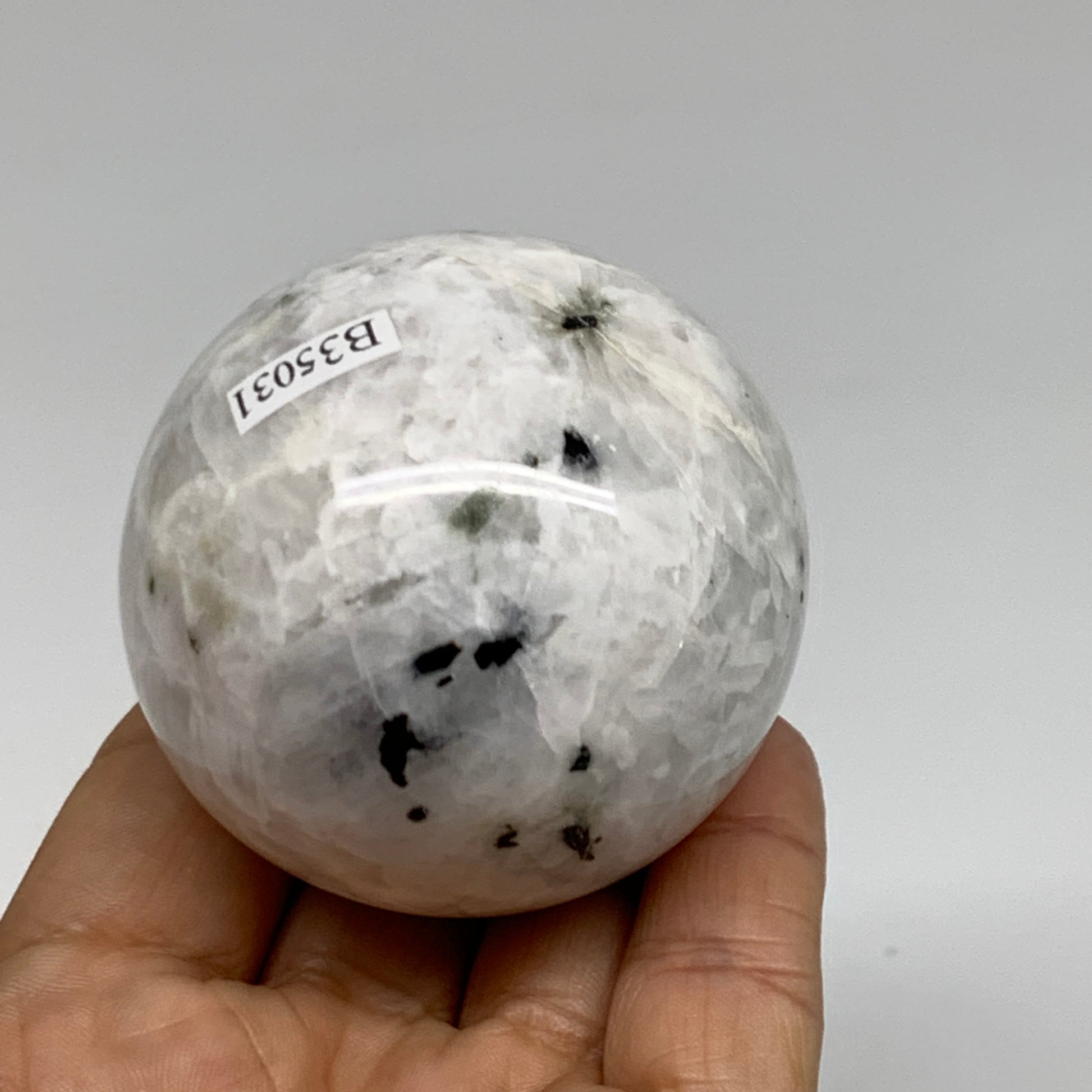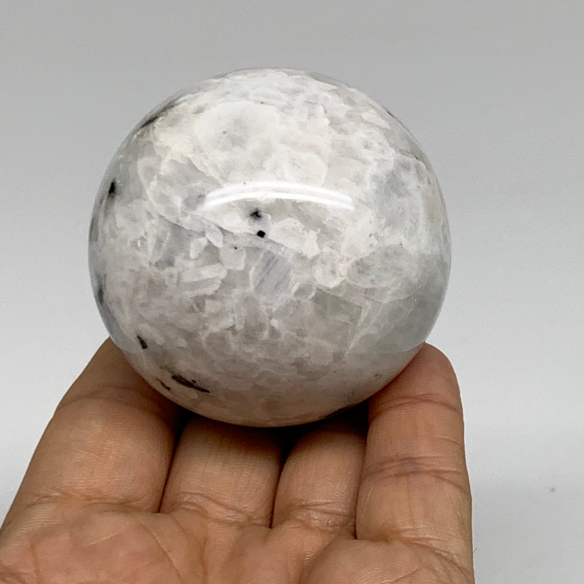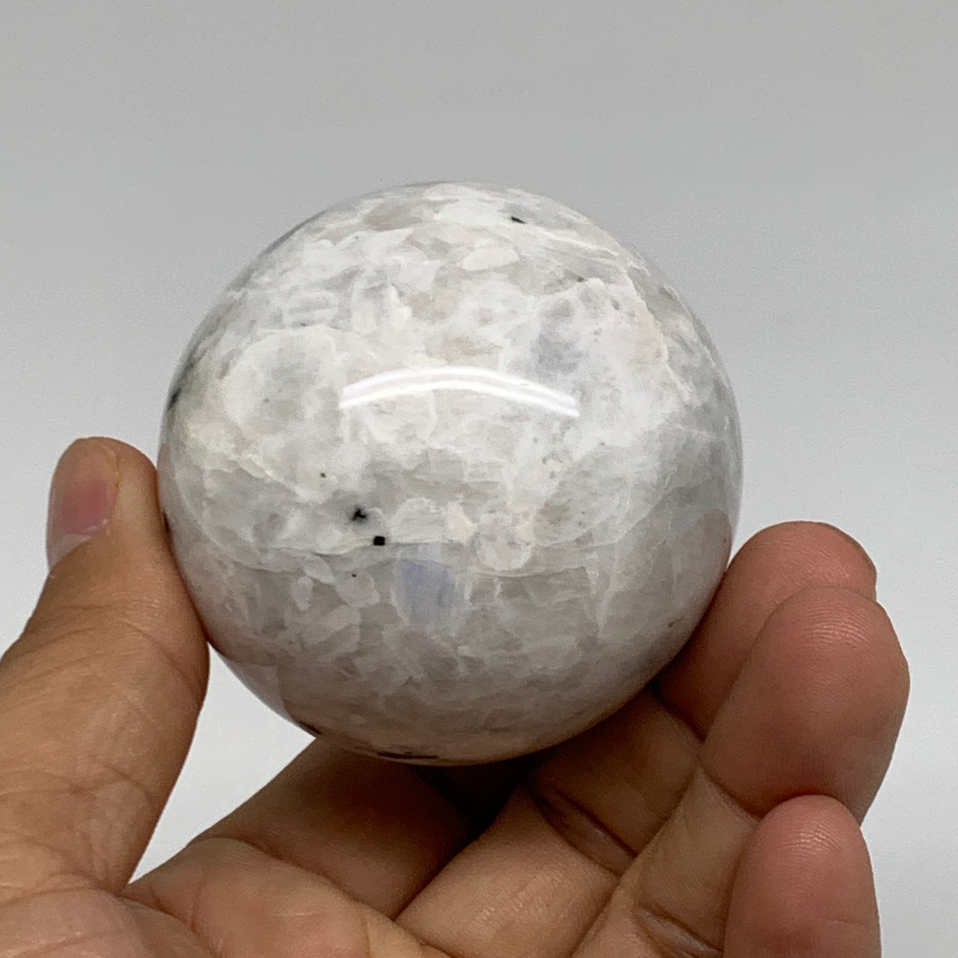 231.4g, 2.1"(54mm), Natural Rainbow Moonstone Sphere Ball Gemstone, B35031