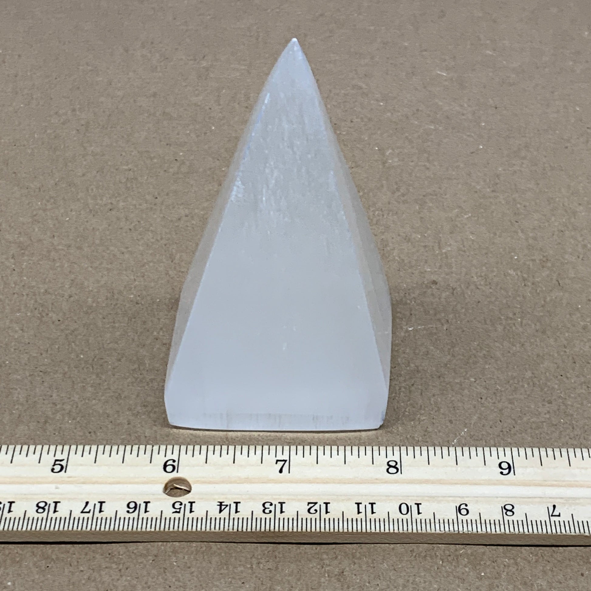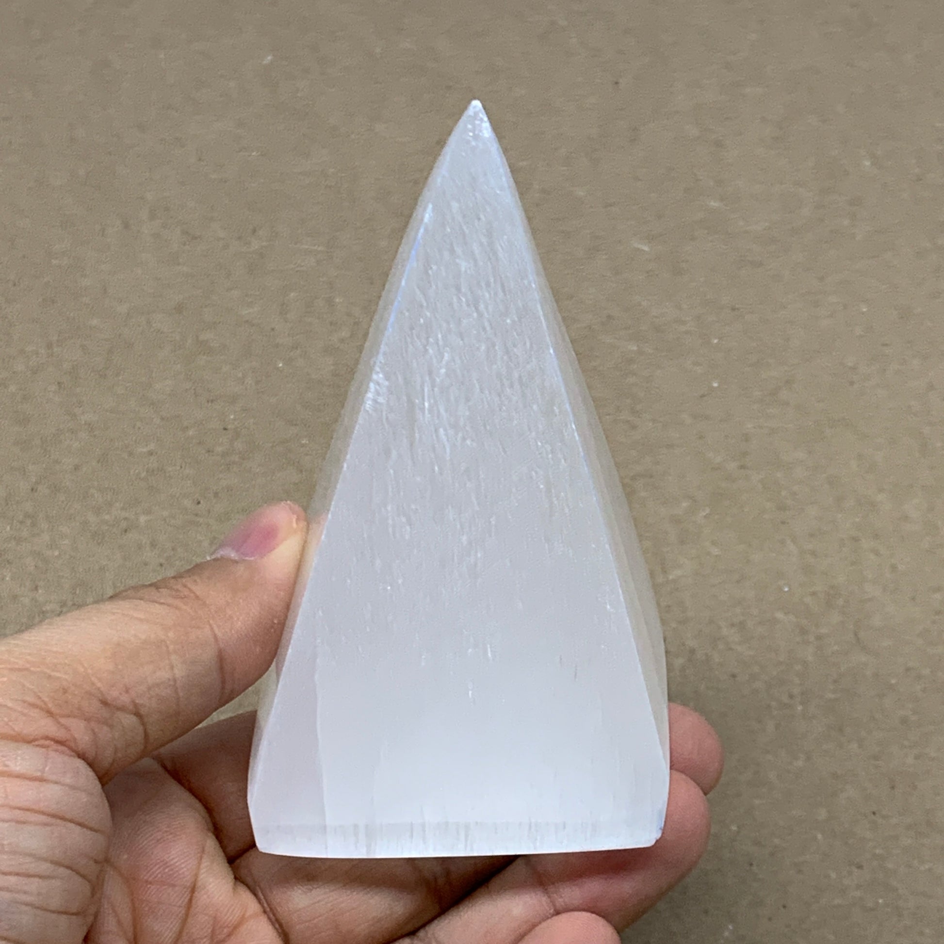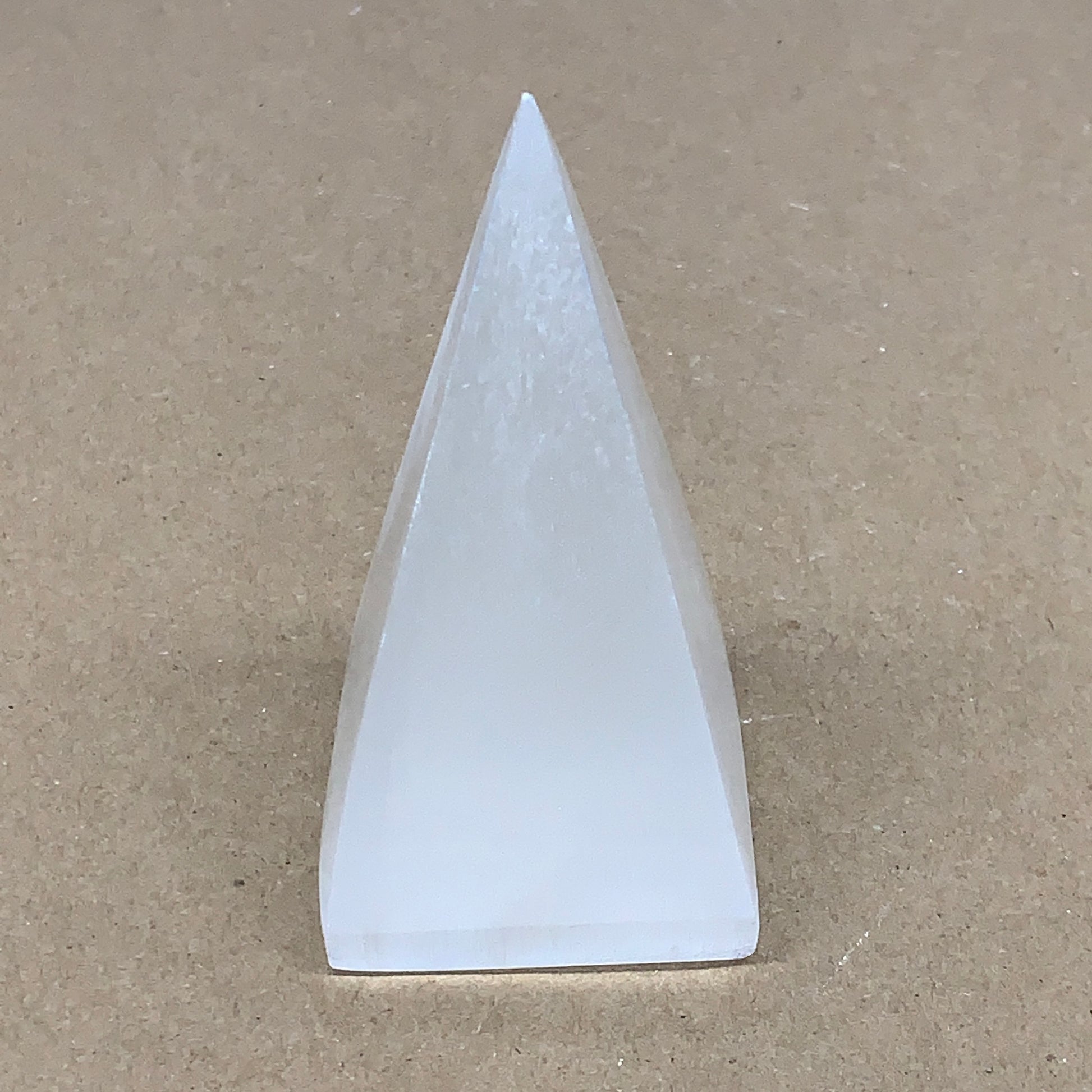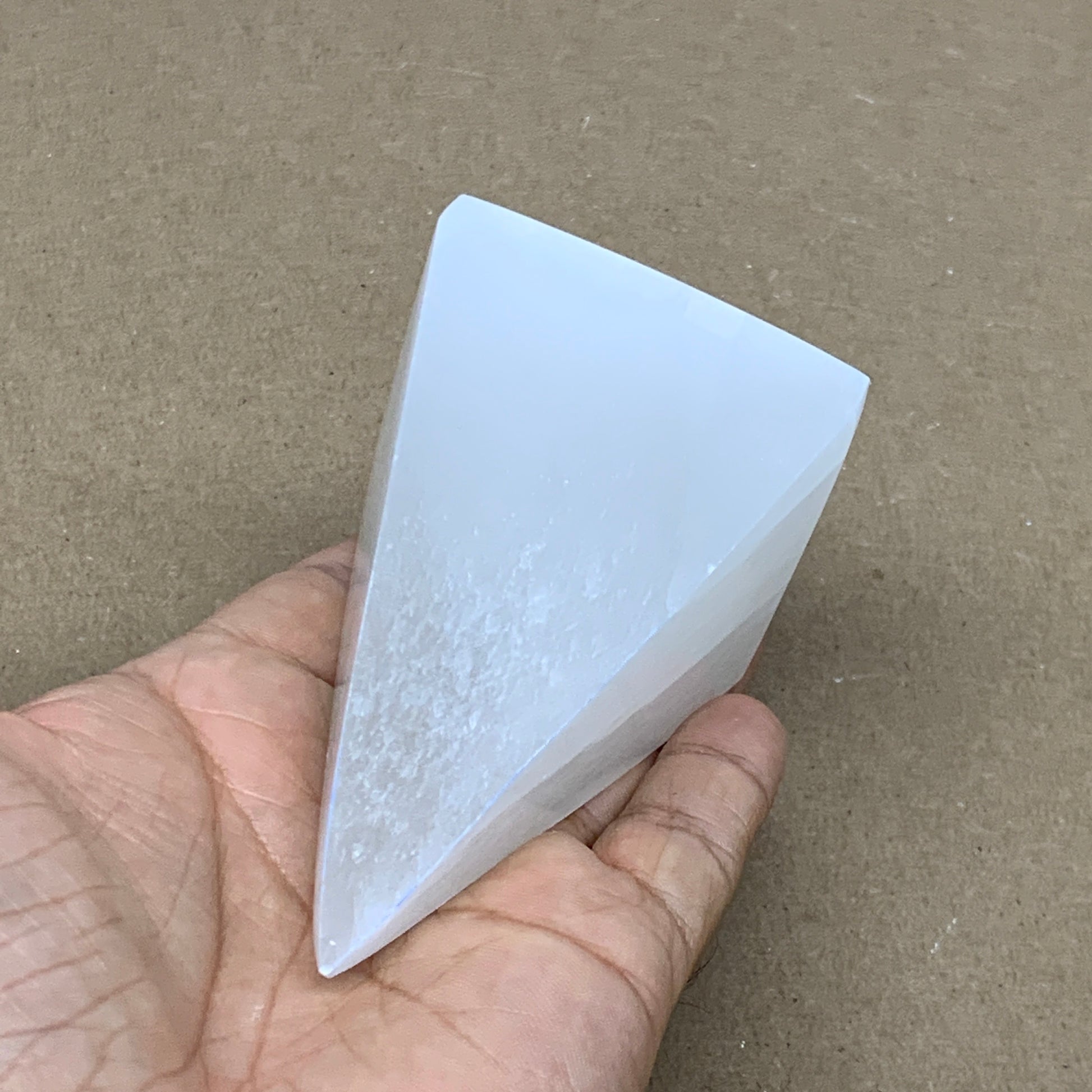231g, 3.7"x2.2" White Selenite/Satin Spar Pyramid Crystal @Morocco, B24154