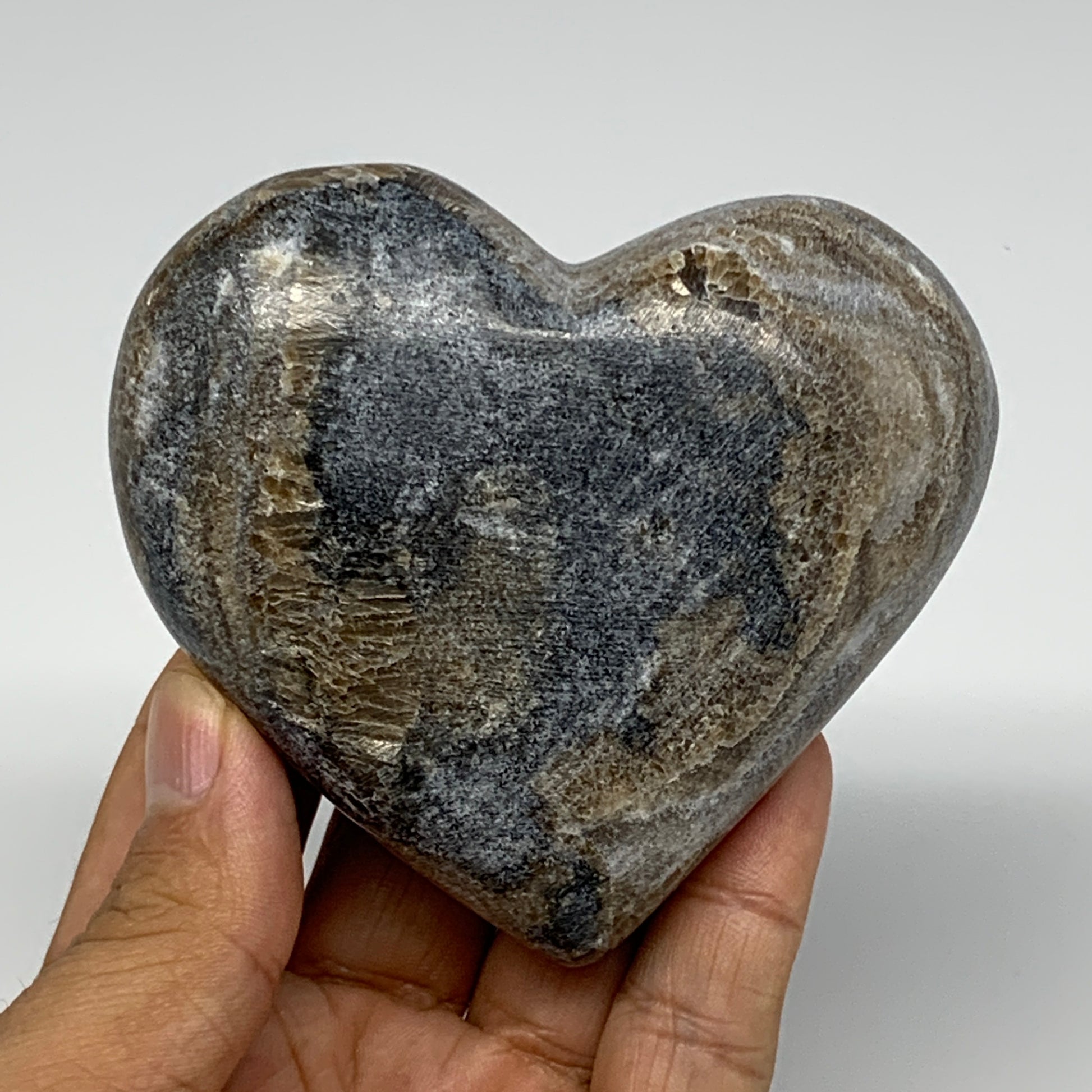 235.6g,3"x3.3"x1.2" Natural Chocolate Gray Onyx Heart Polished @Morocco,B18832