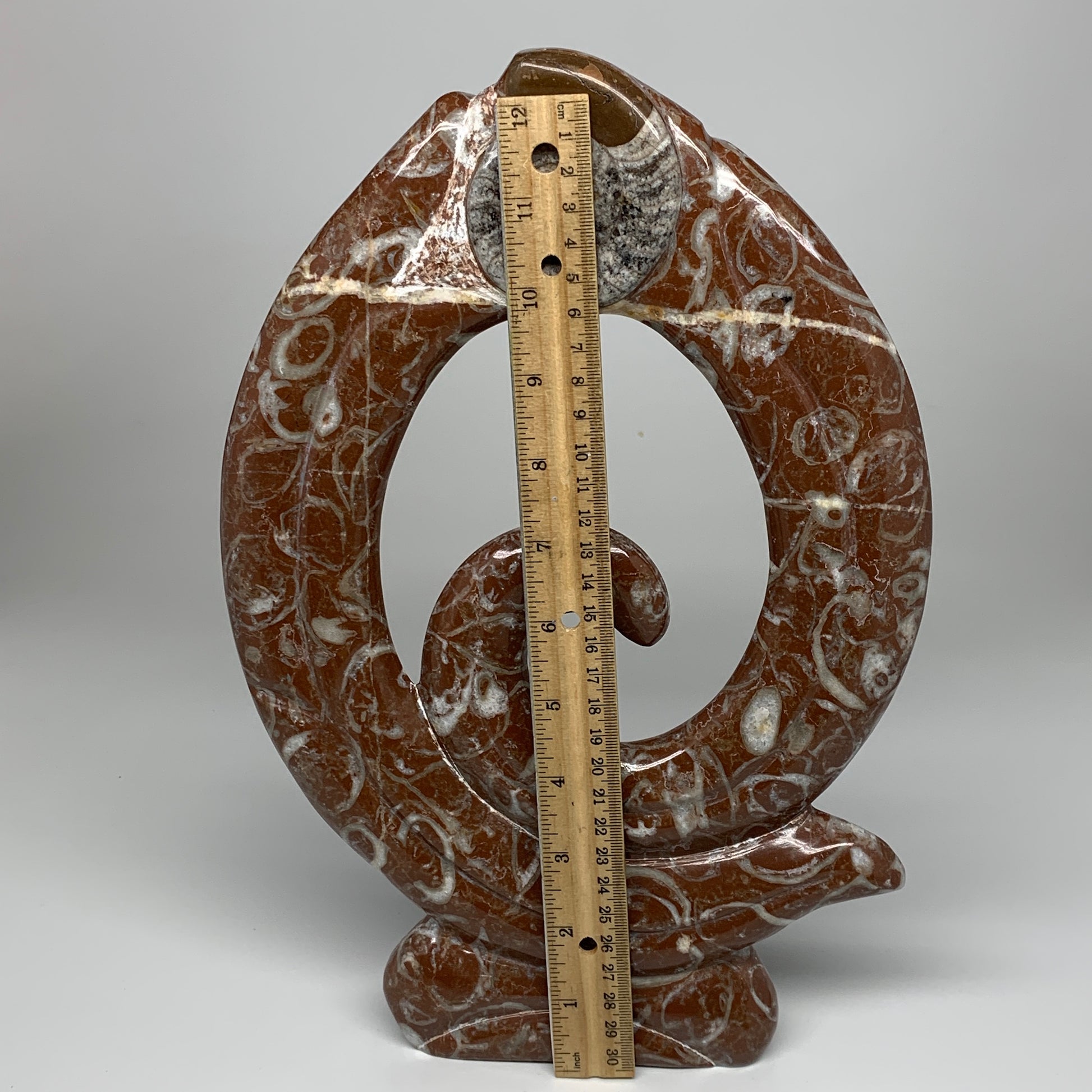 2372g, 12.5"x8.5"x1" Red Shell Fossils Orthoceras Ammonite Sculpture @Morocco, B8562