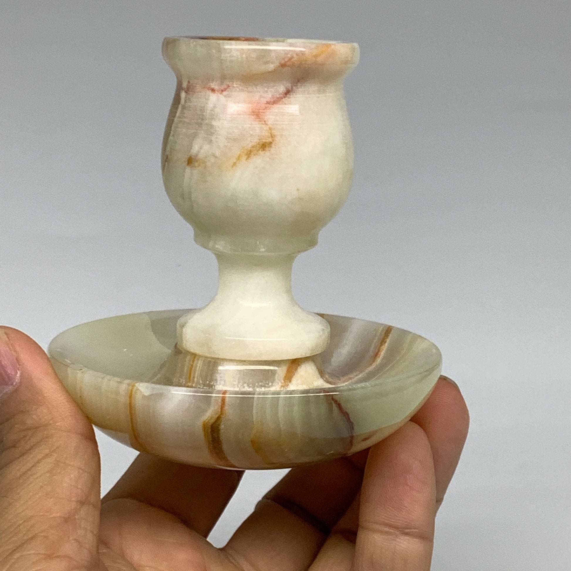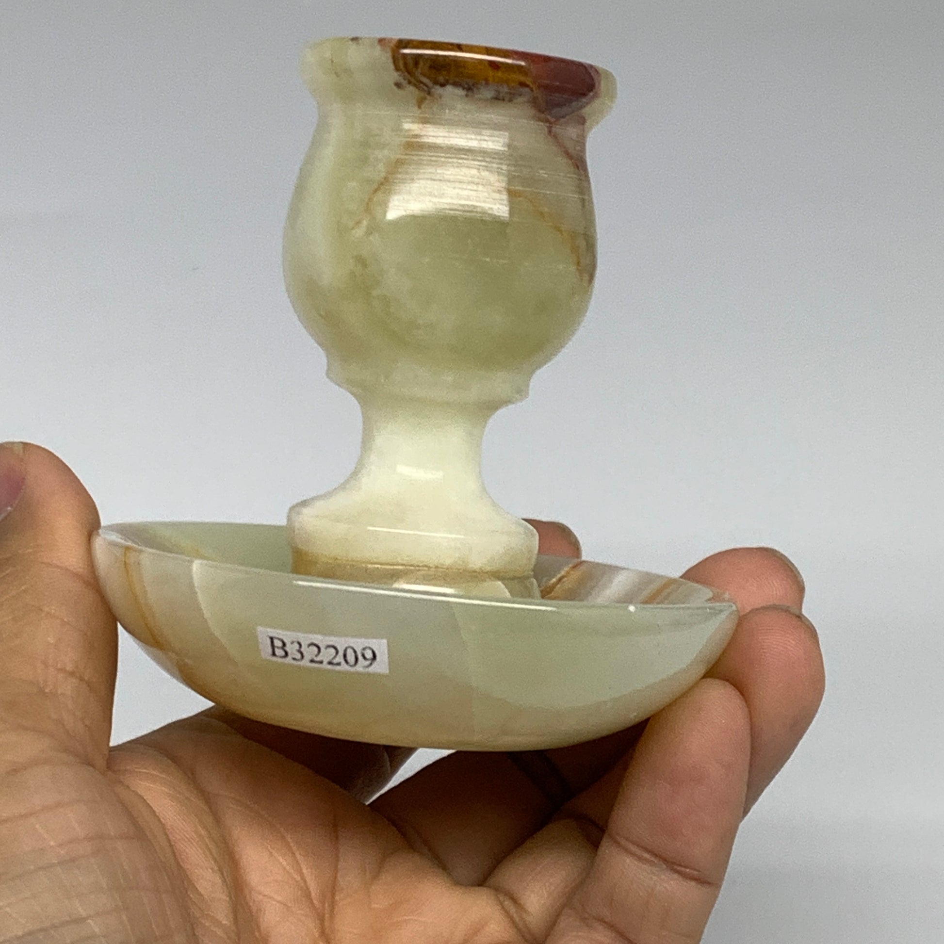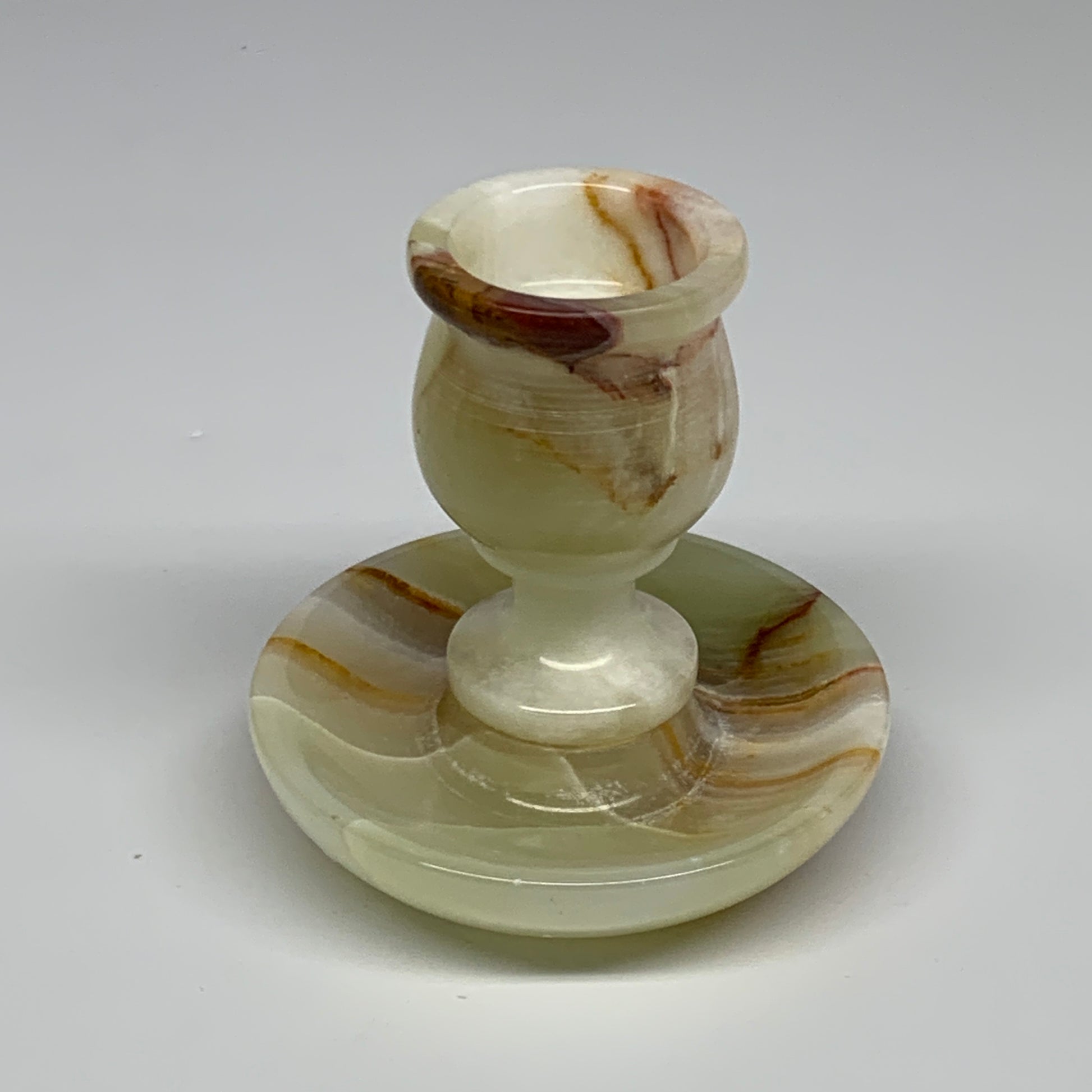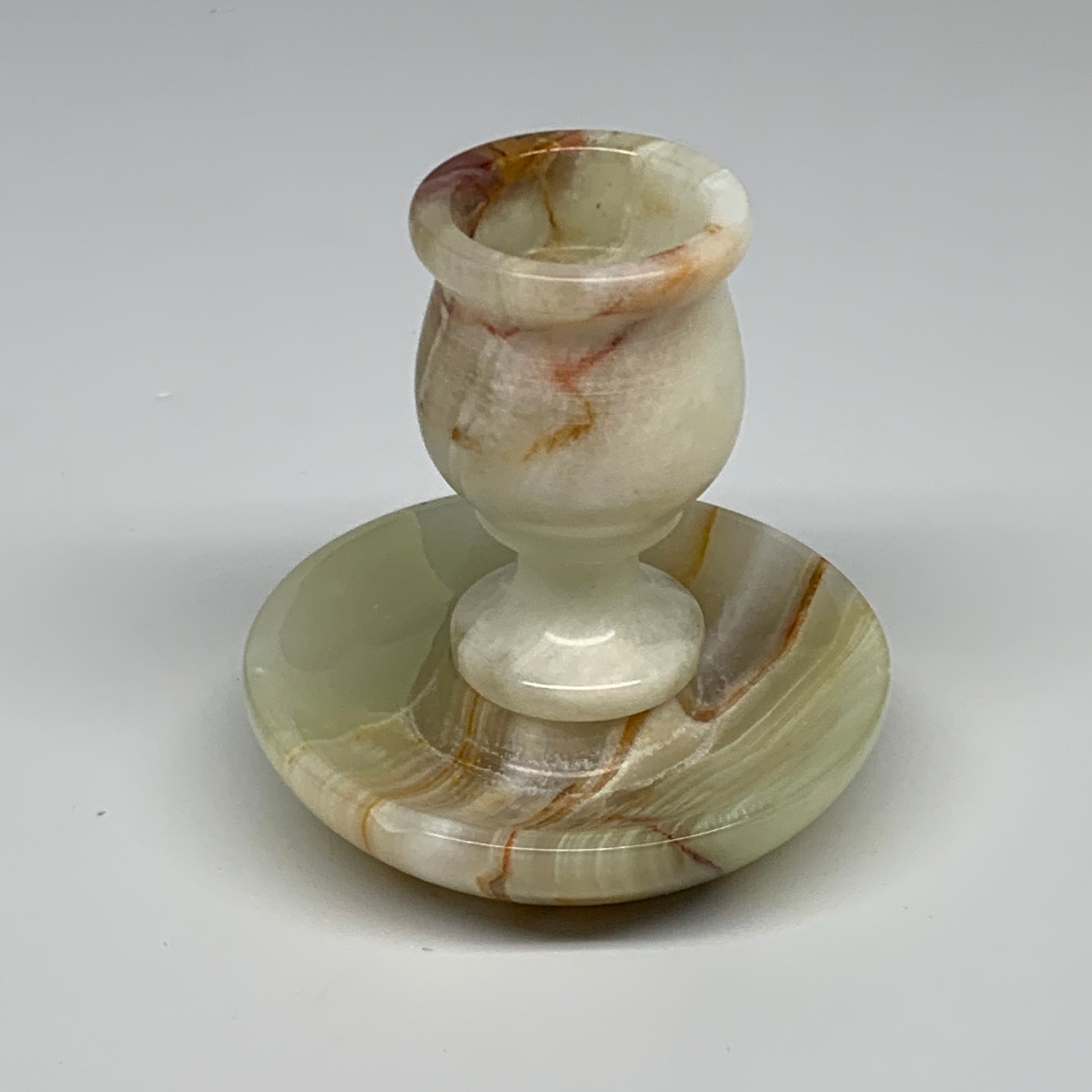 239g, 3"x1.4"x3", Natural Green Onyx Candle Holder Gemstone Hand Carved, B32209