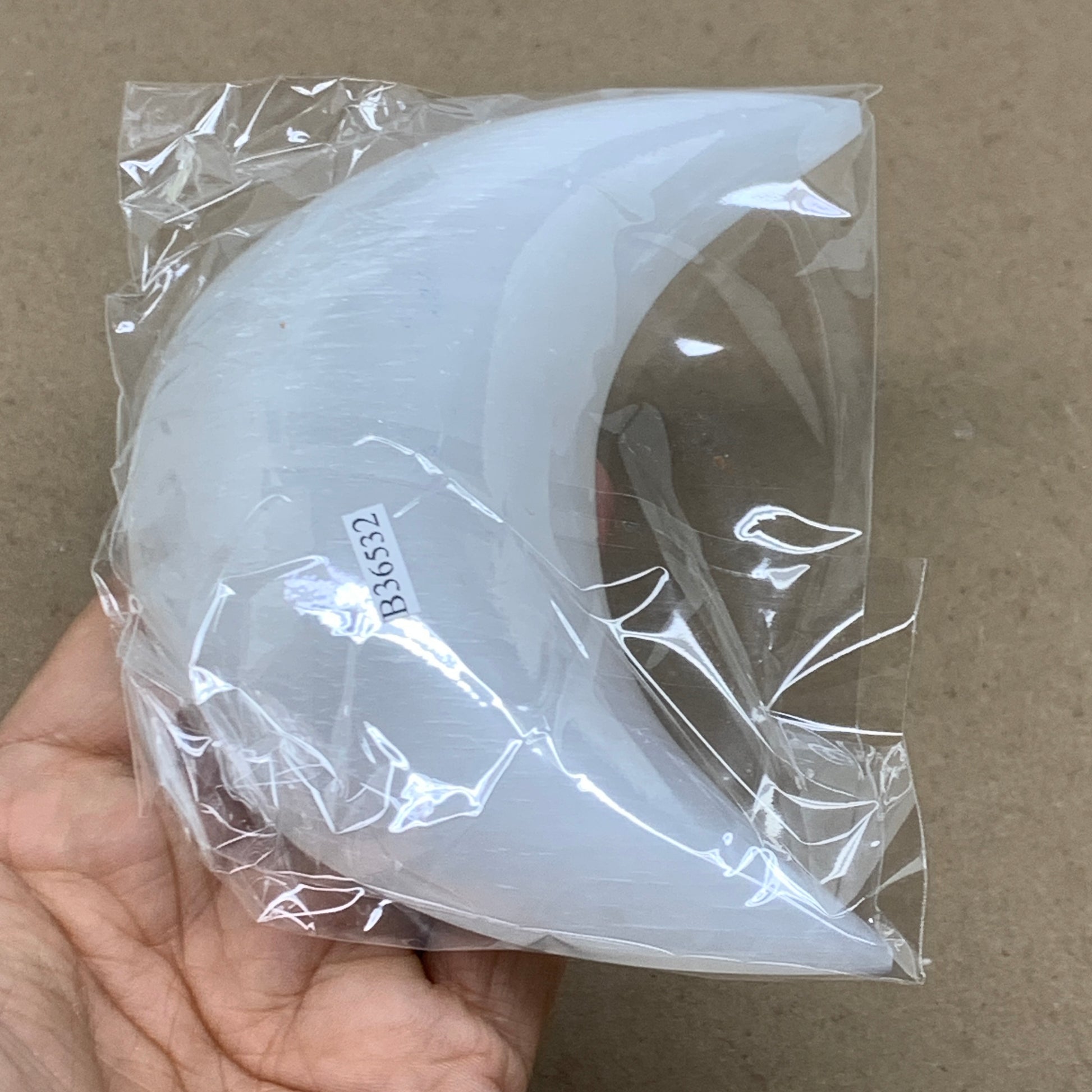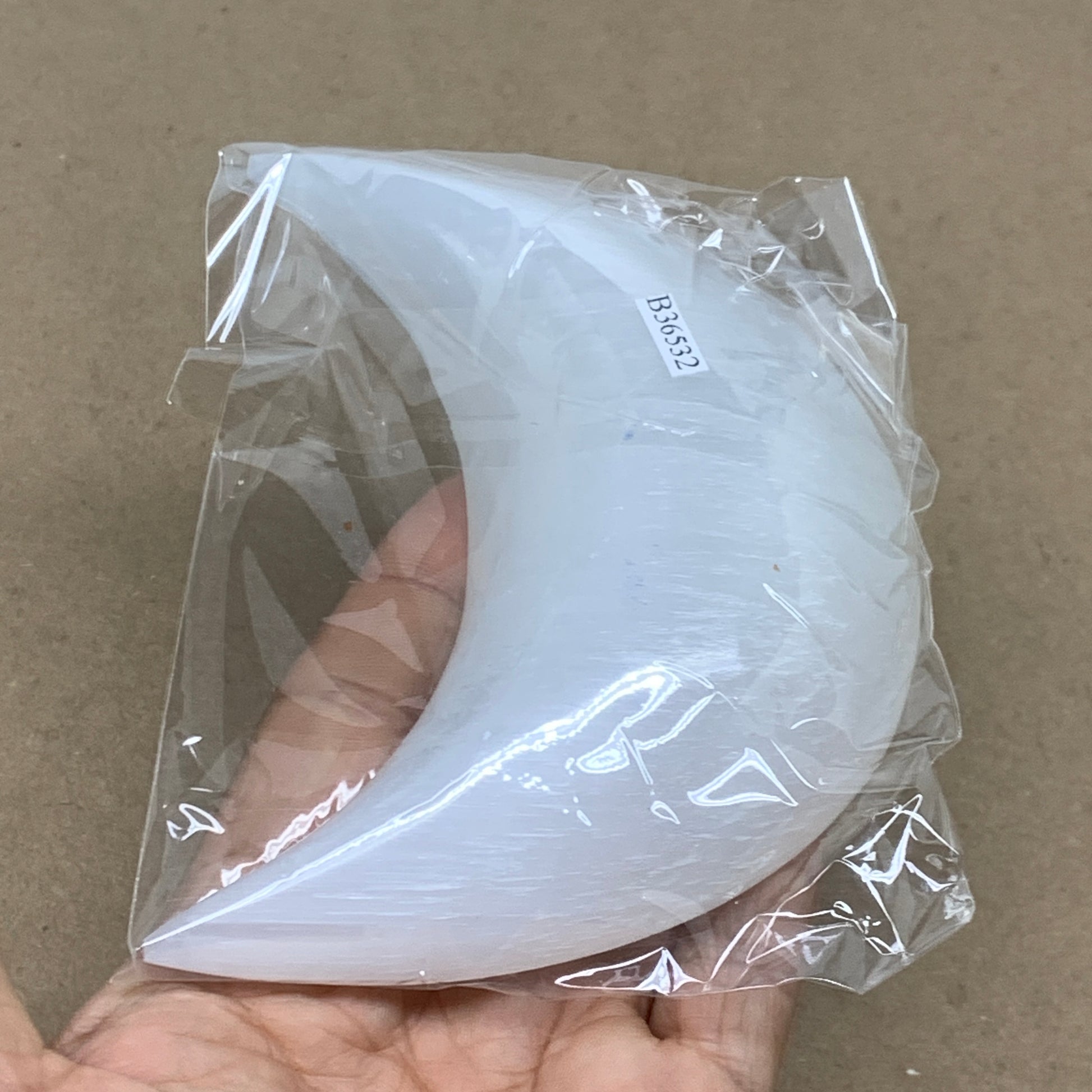239g, 4.7"x2.2"x1", Selenite Crescent Moon Crystal (Satin Spar), B36532