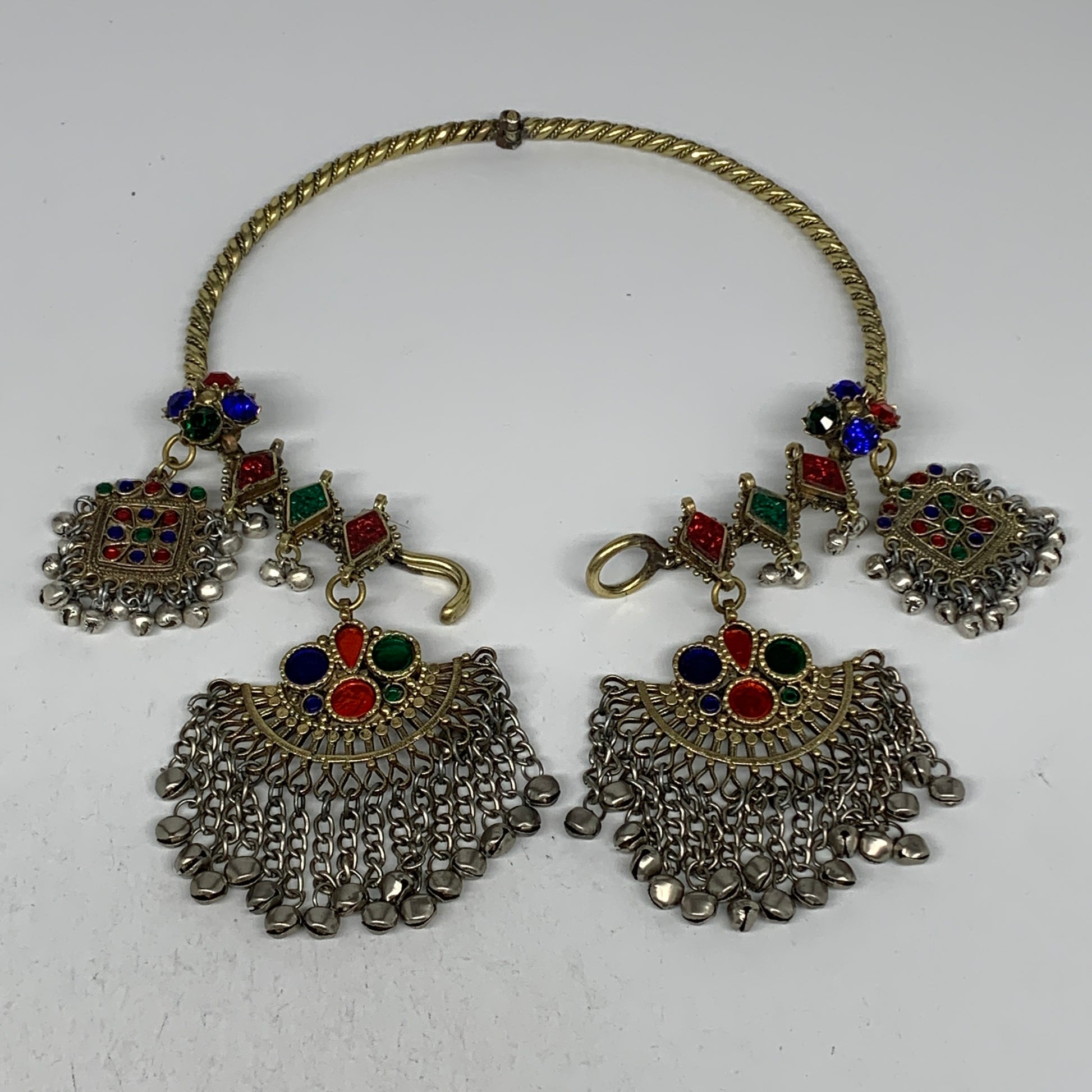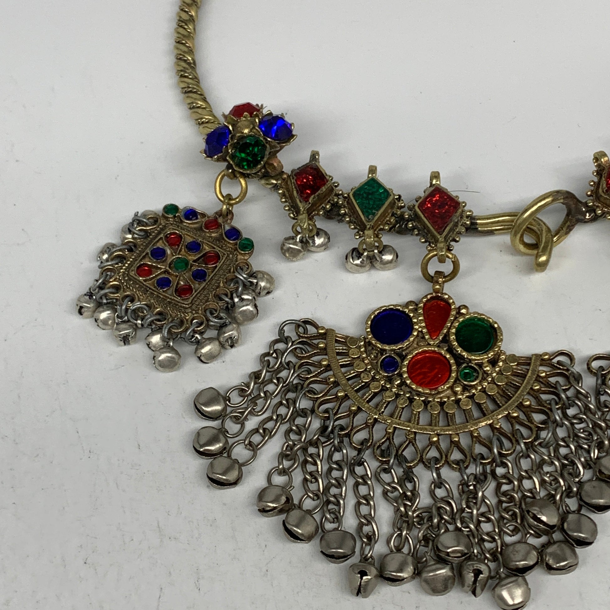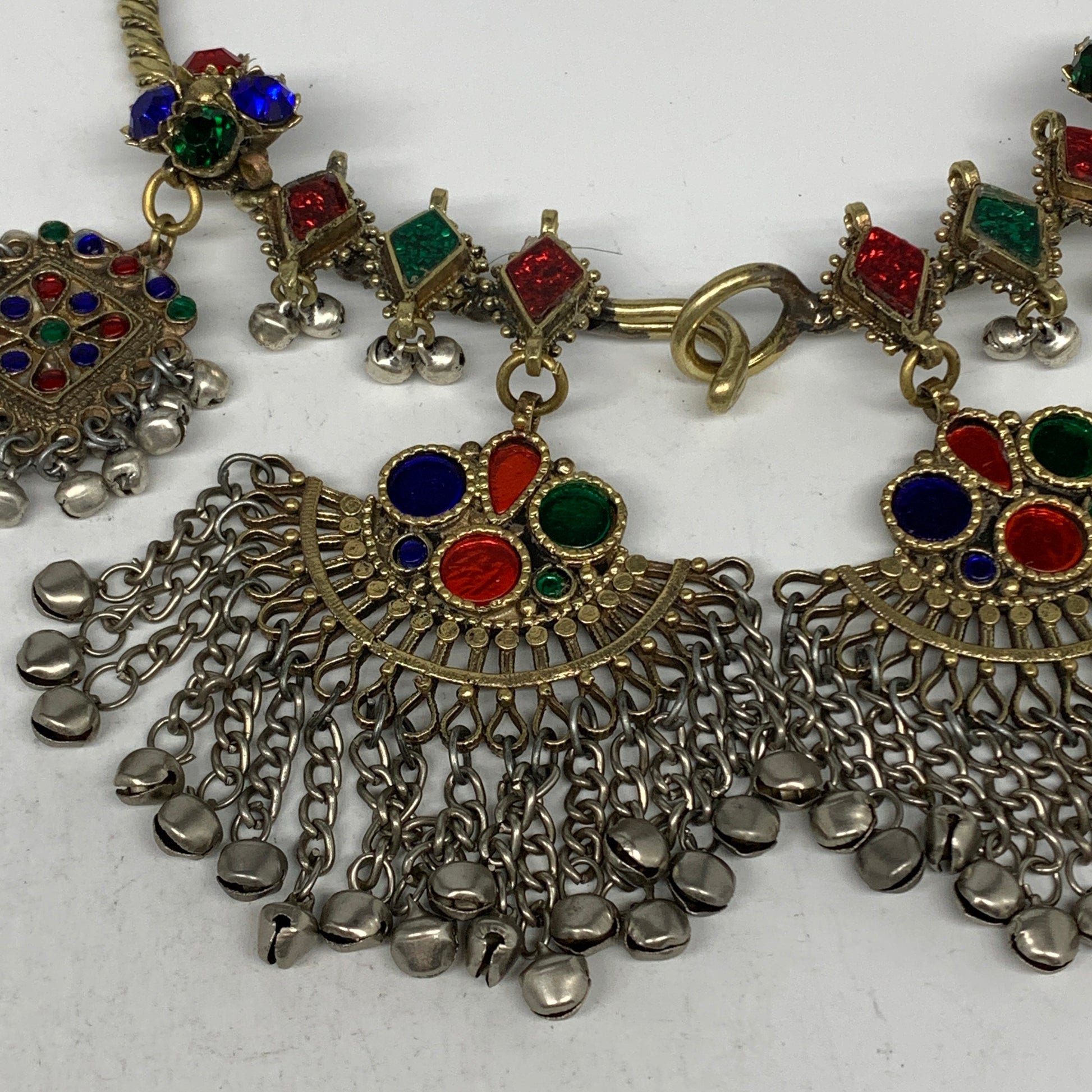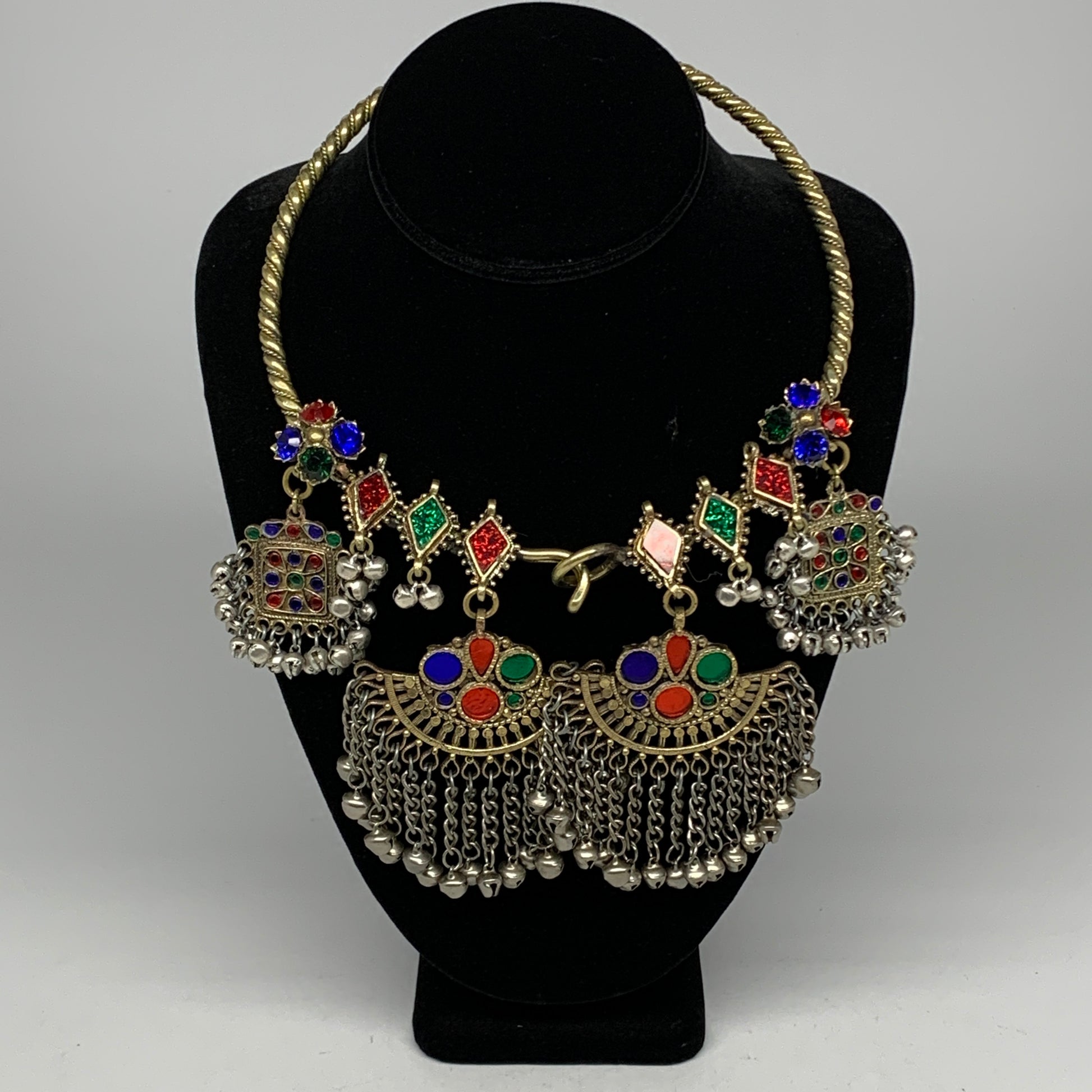 240g, 9.5"x5.5"Kuchi Turkmen Choker Necklace Multi-Color Tribal Gypsy Beho,B14161