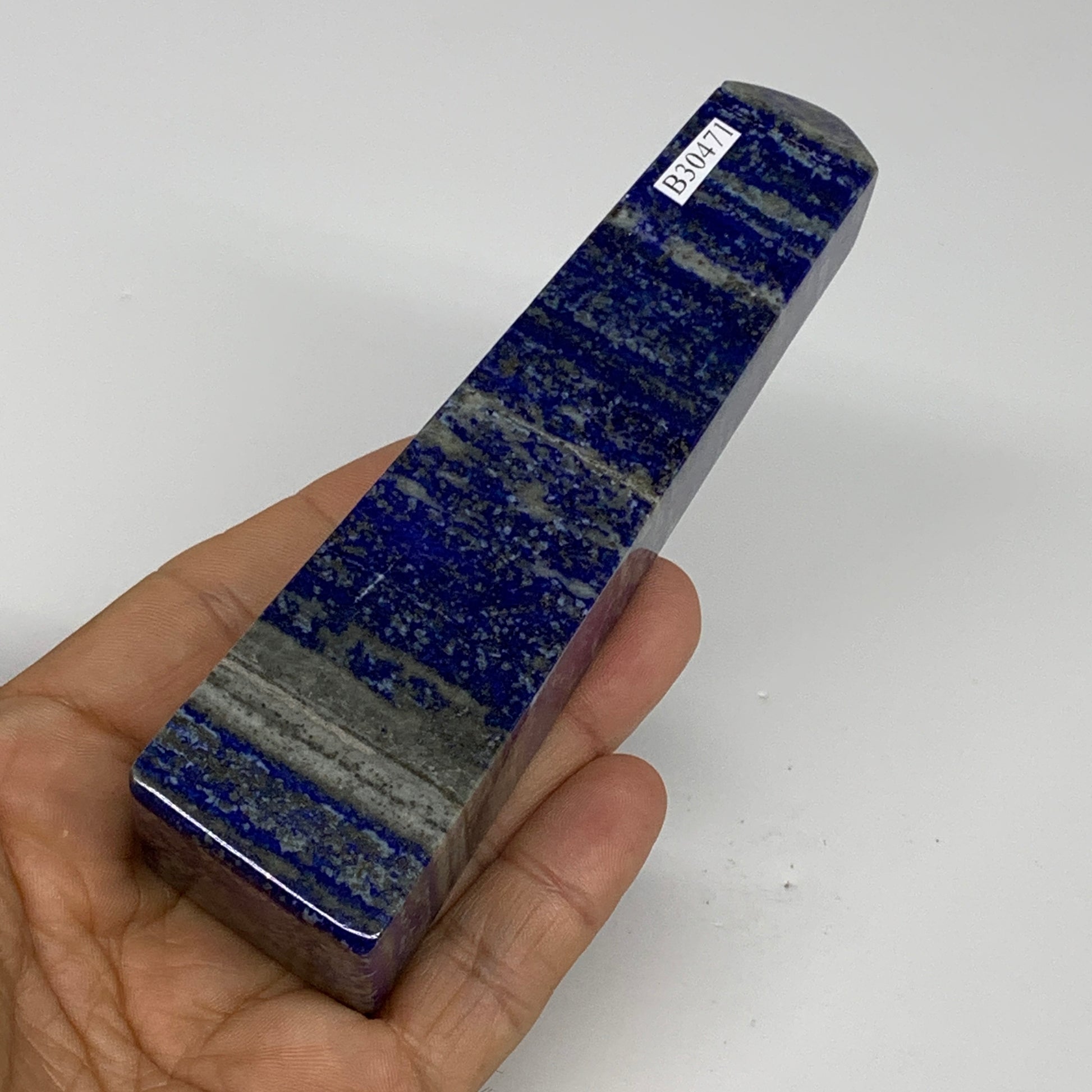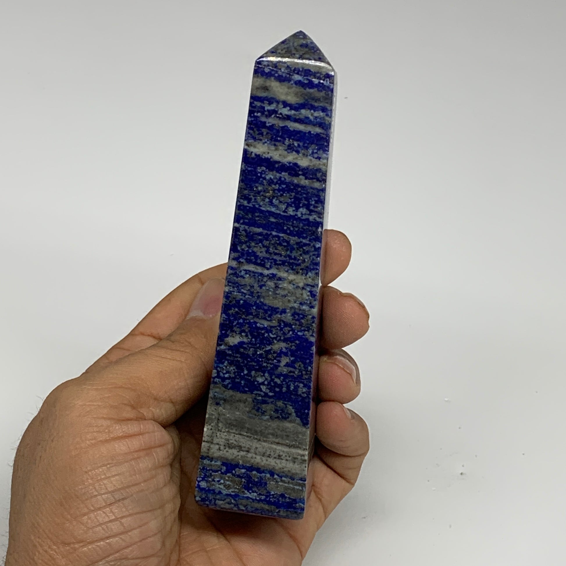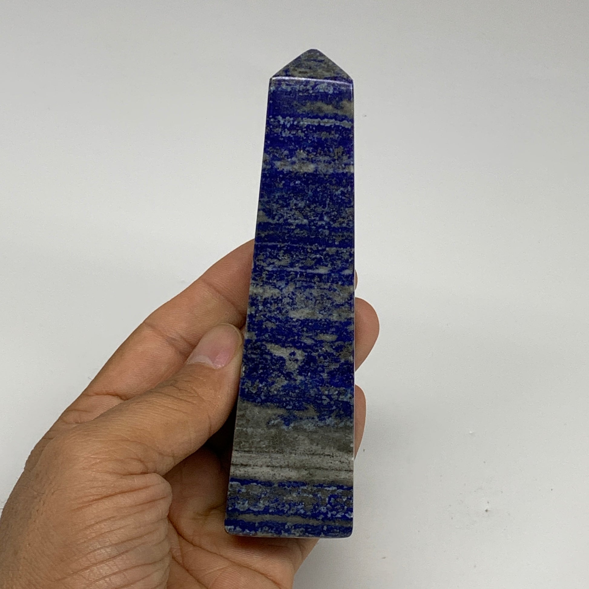 281.4g, 4.7"x1.3"x1.3", Natural Lapis Lazuli Tower Point Obelisk Afghanistan,B30472