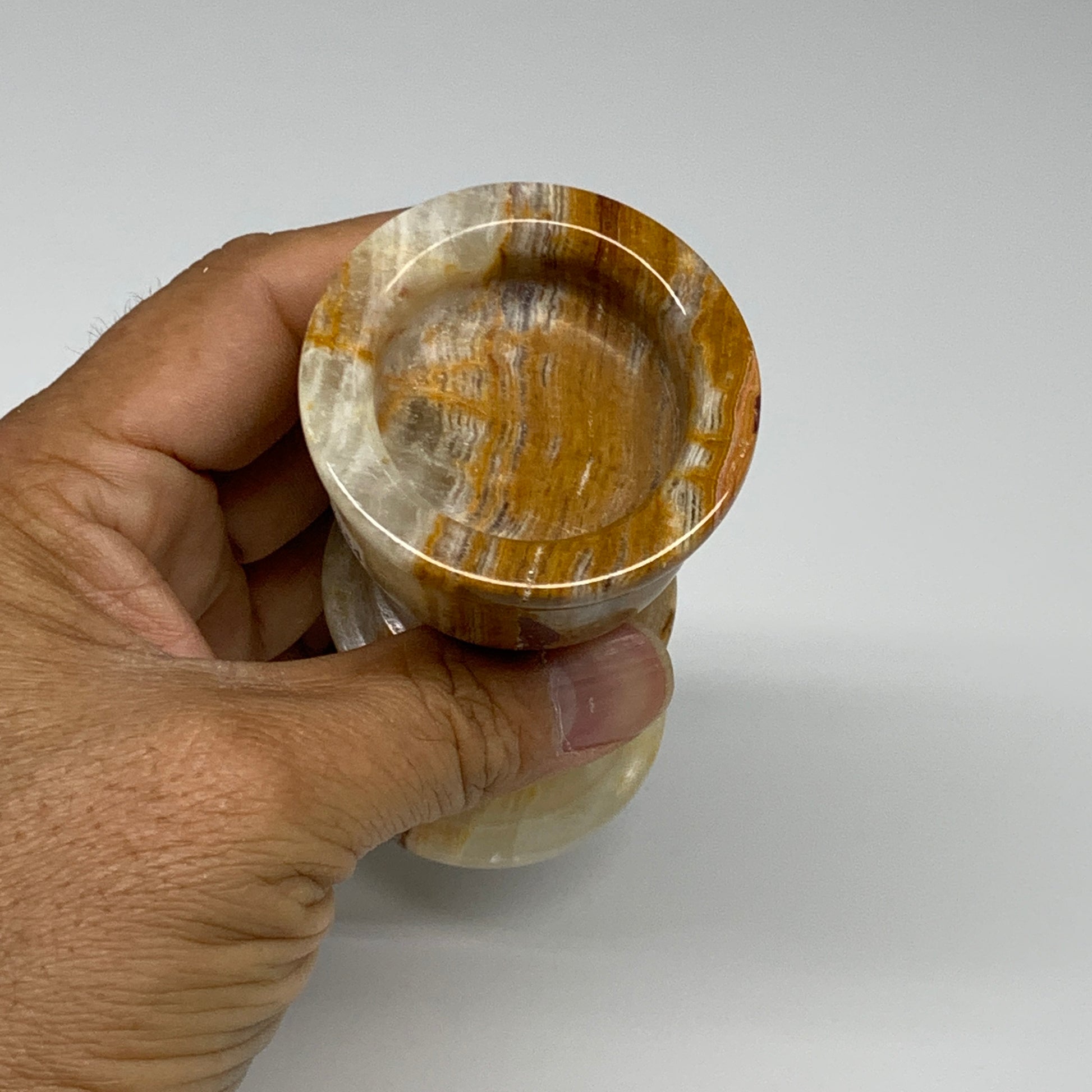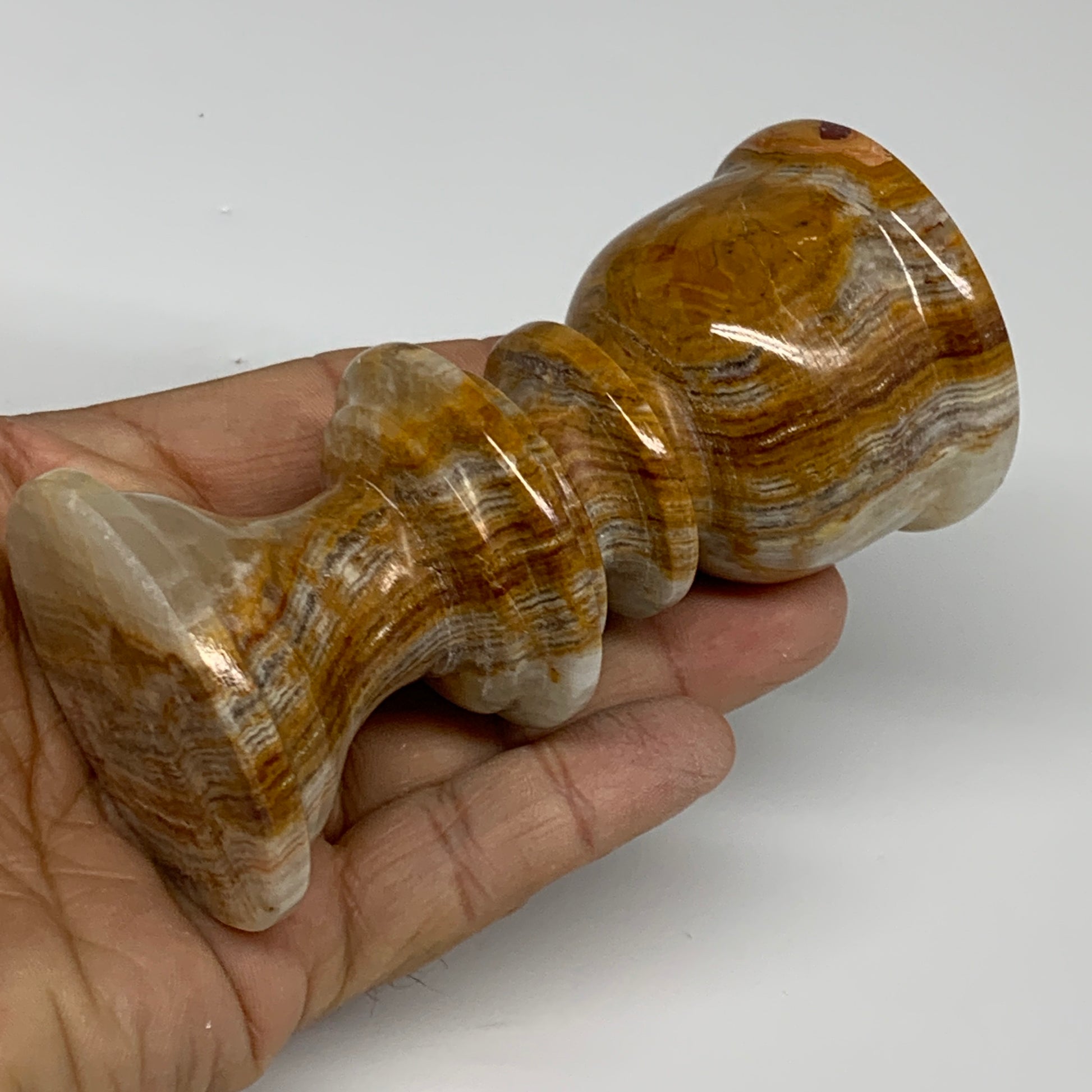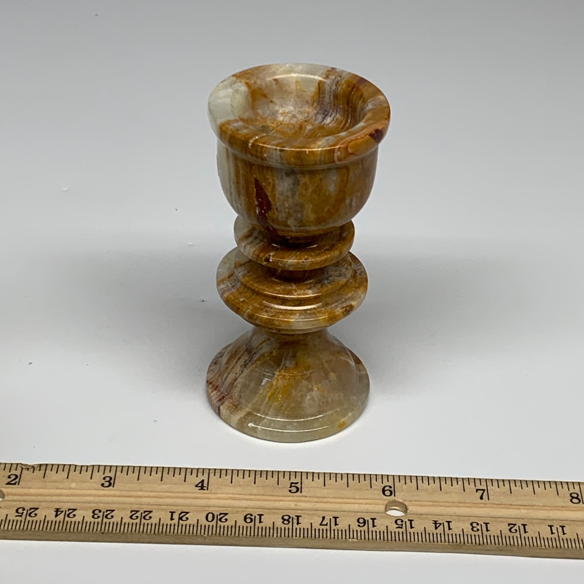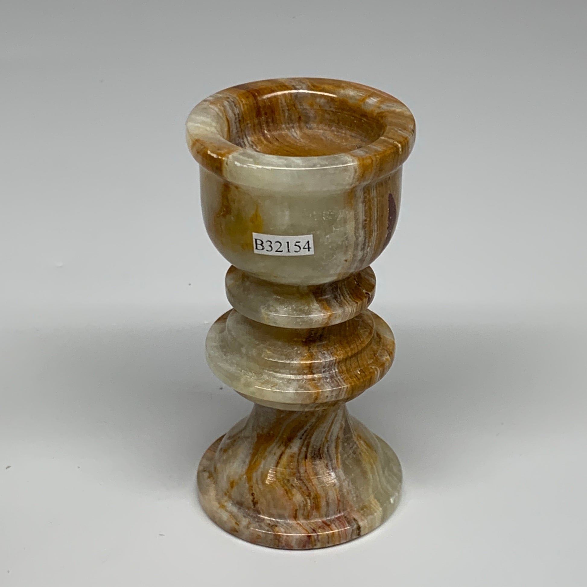 242g, 3.8"x1.9", Natural Green Onyx Candle Holder Gemstone Hand Carved, B32154