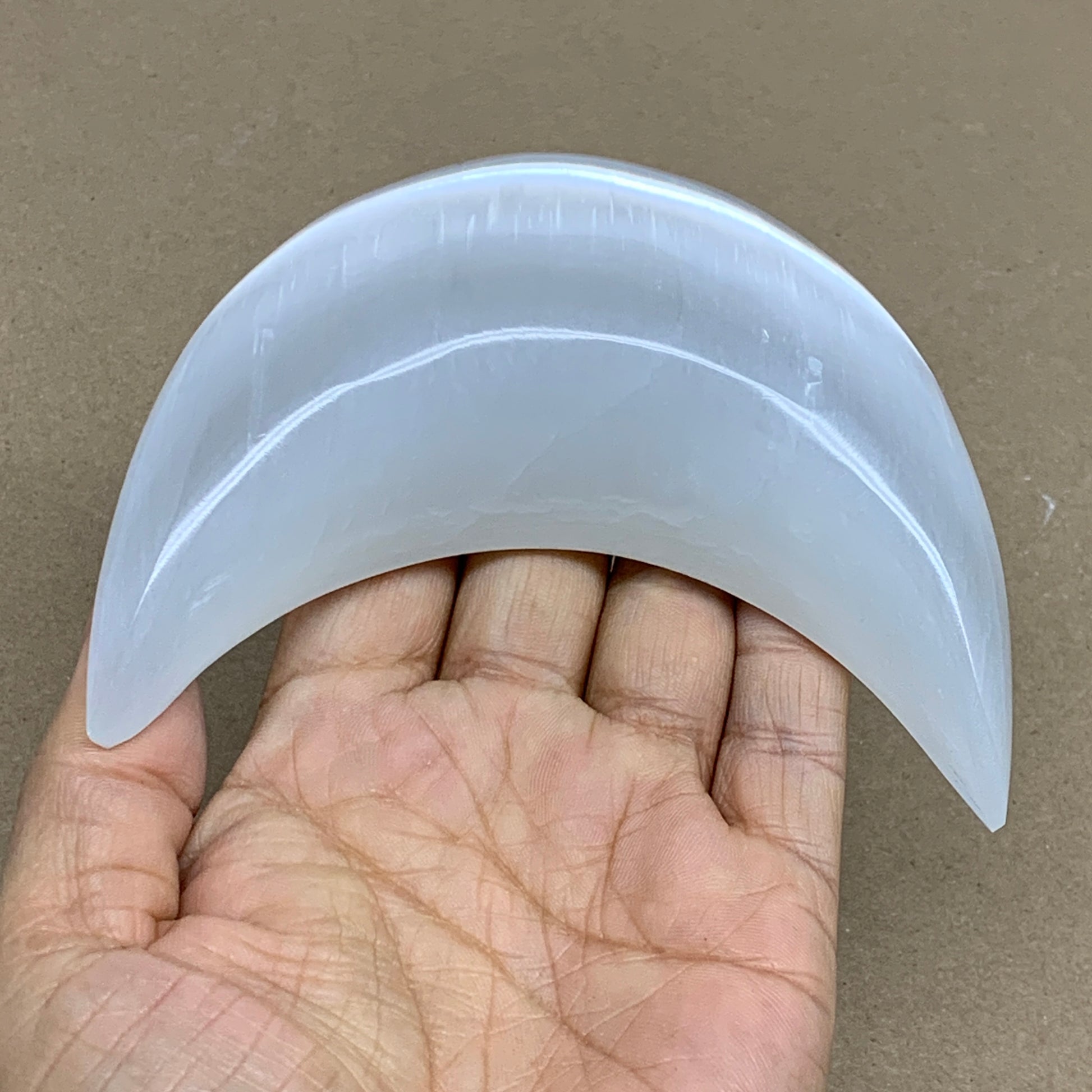 244g, 4.4"x2.2"x1", Selenite Crescent Moon Crystal (Satin Spar), B36270