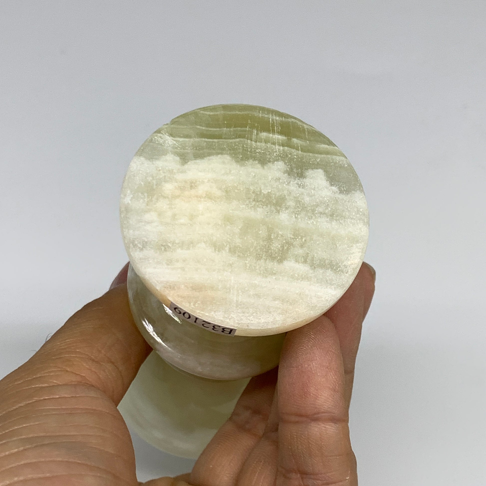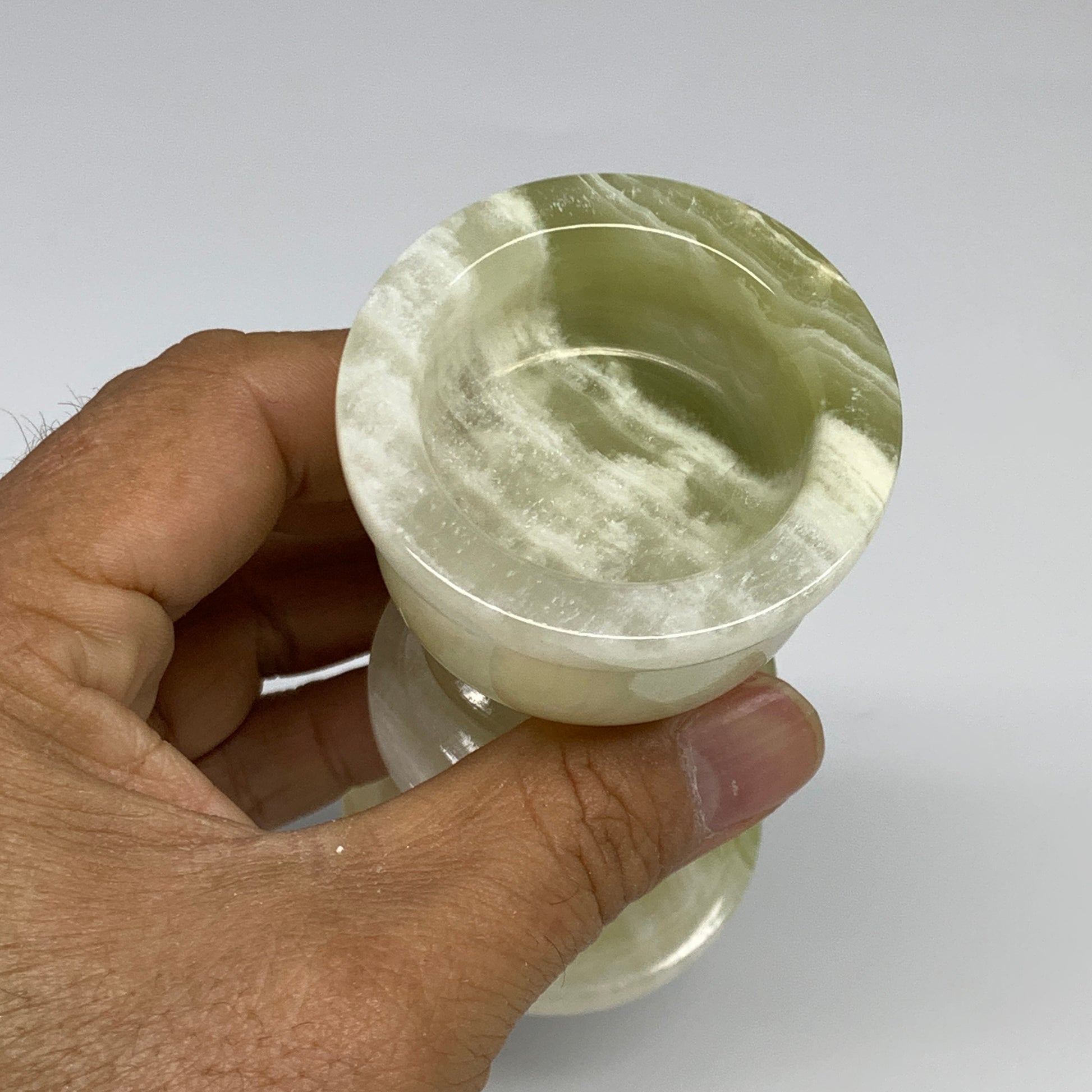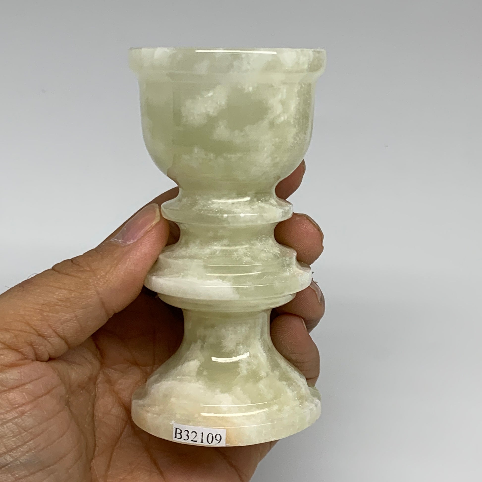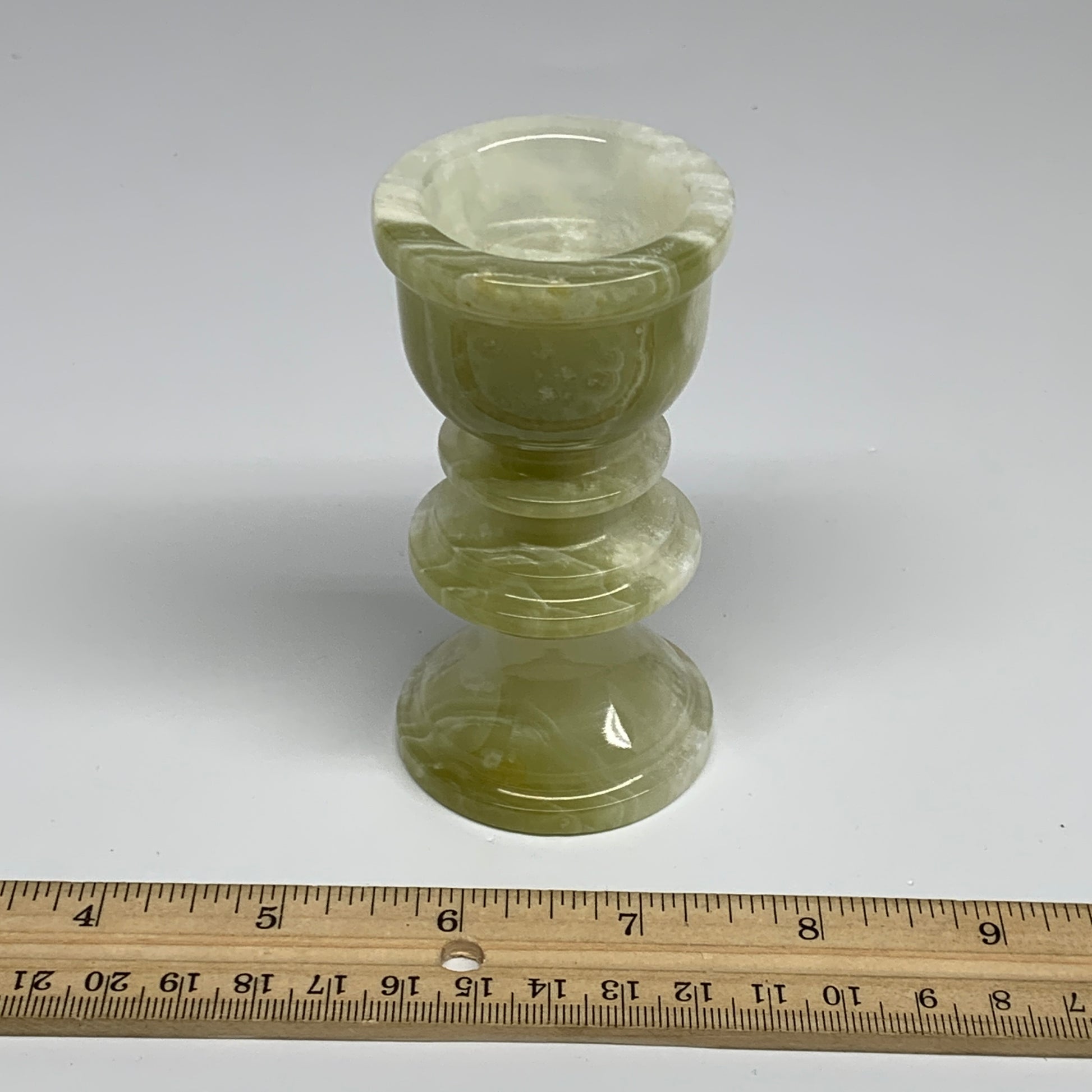 247g, 3.7"x1.9", Natural Green Onyx Candle Holder Gemstone Hand Carved, B32109