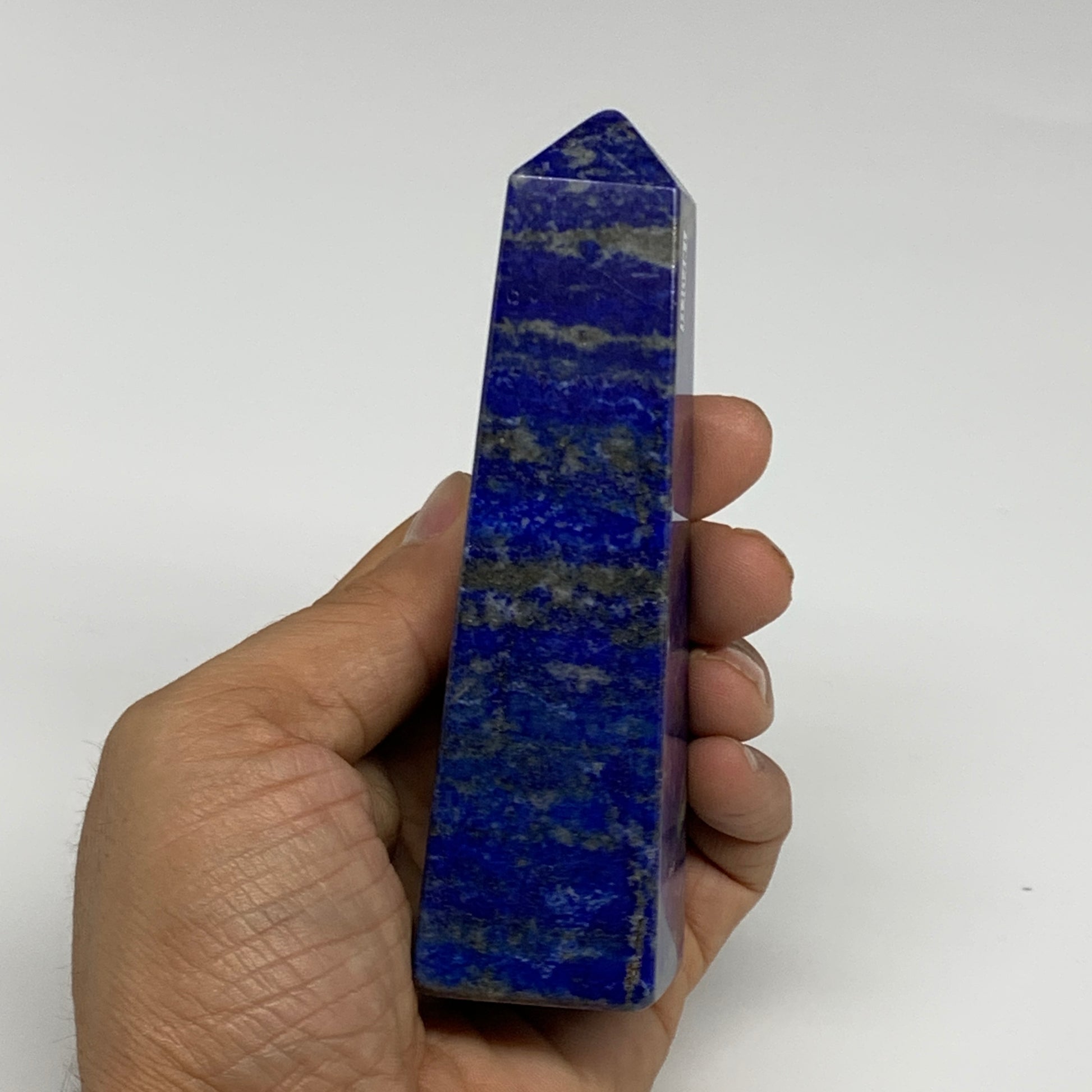 248.7g, 4.5"x1.2"x1.2", Natural Lapis Lazuli Tower Point Obelisk Afghanistan,B30481
