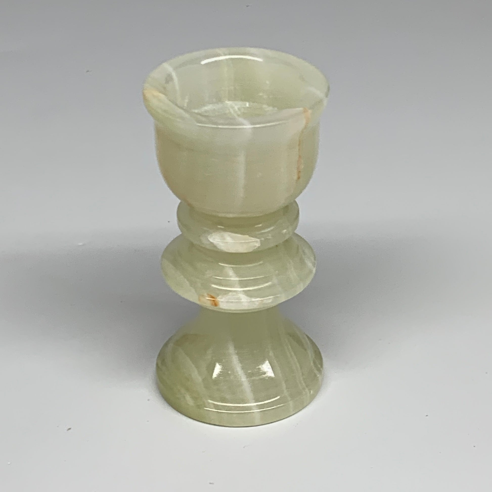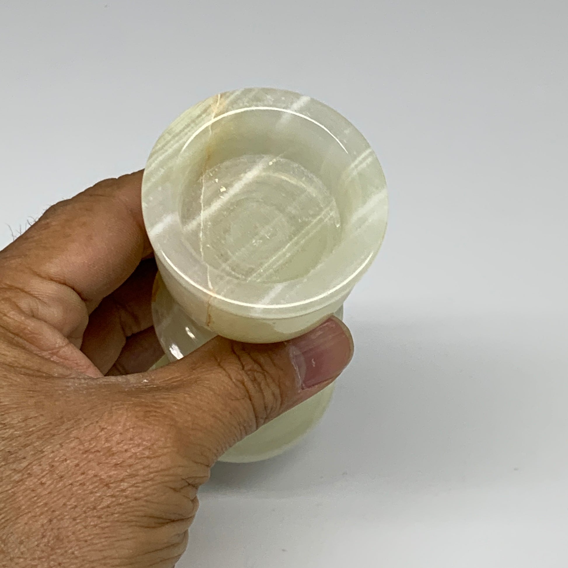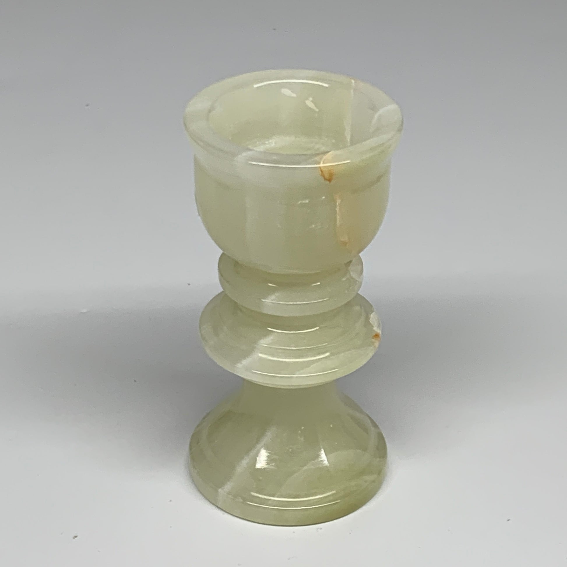 256g, 3.8"x1.9", Natural Green Onyx Candle Holder Gemstone Hand Carved, B32167