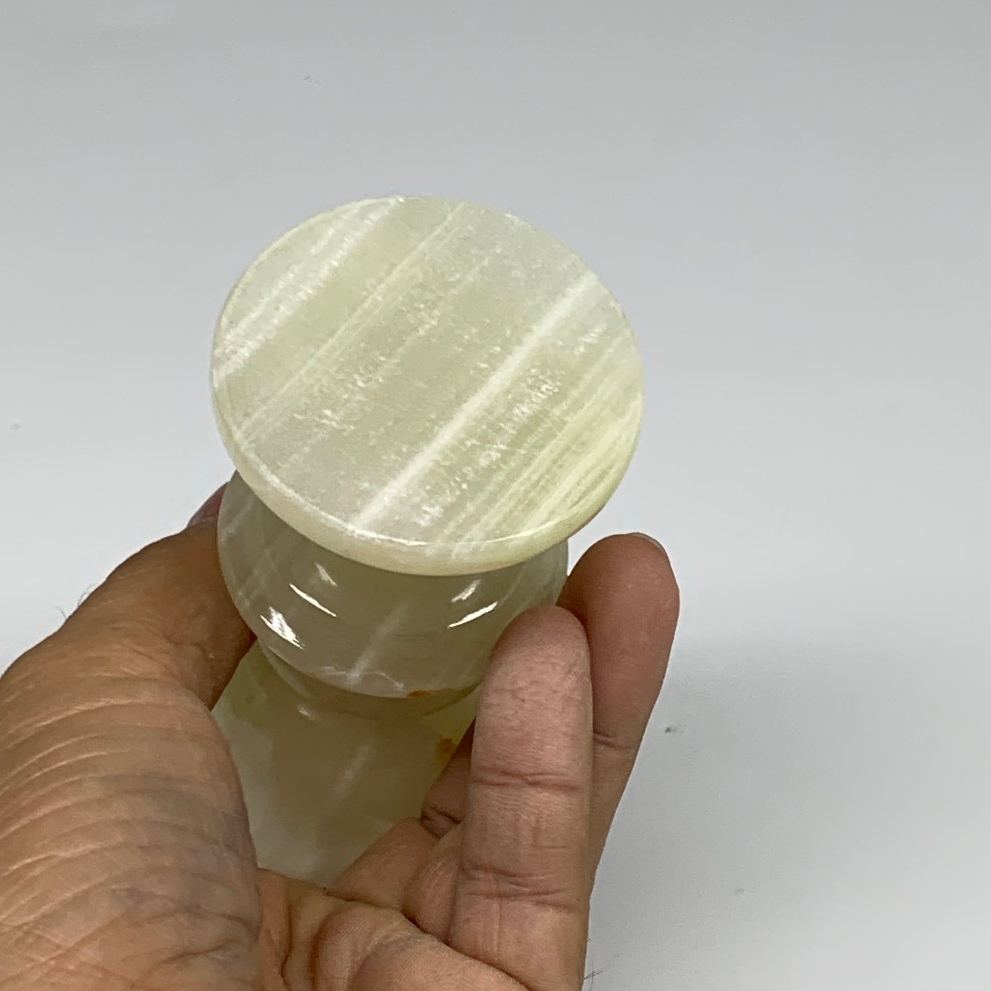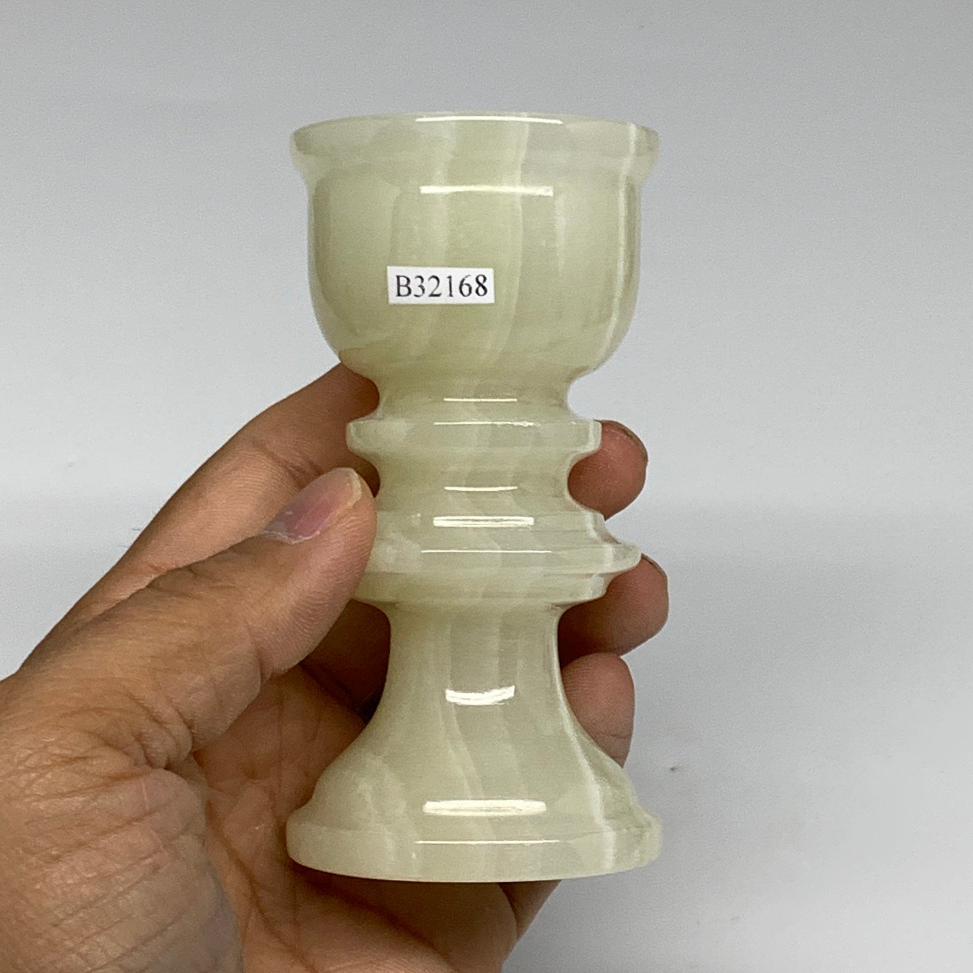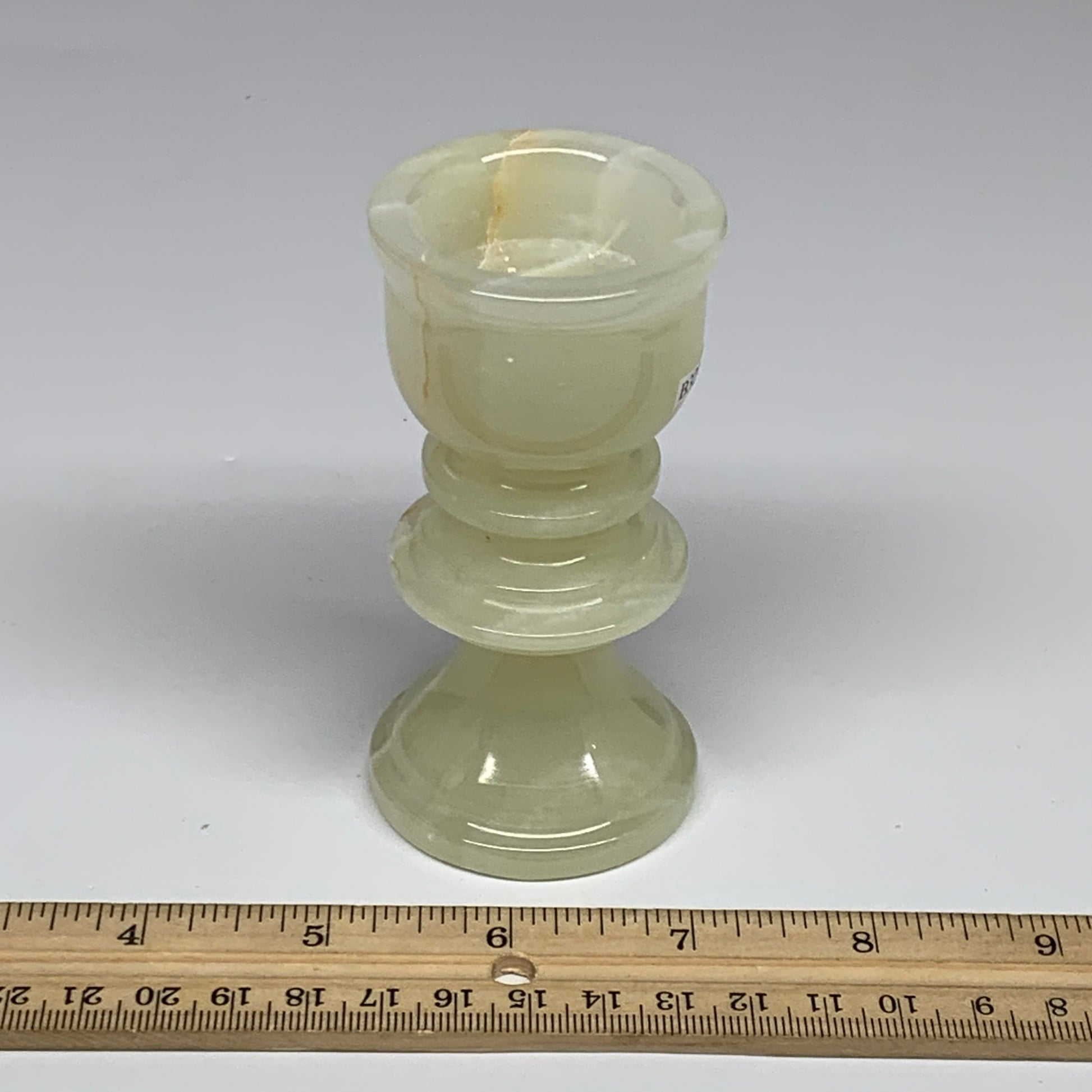 256g, 3.8"x1.9", Natural Green Onyx Candle Holder Gemstone Hand Carved, B32167