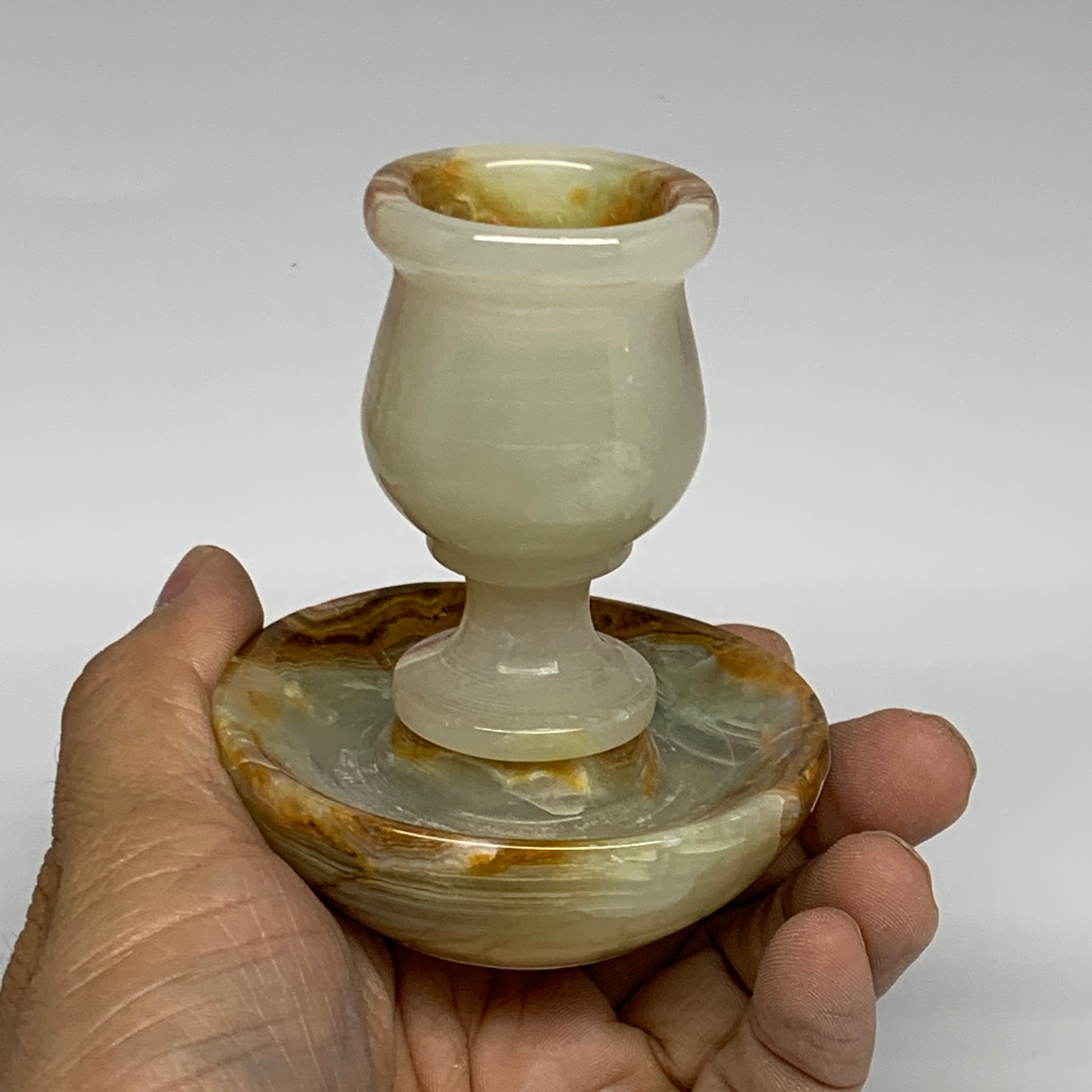 249g, 3.2"x1.5"x2.7", Natural Green Onyx Candle Holder Gemstone Hand Carved, B32180