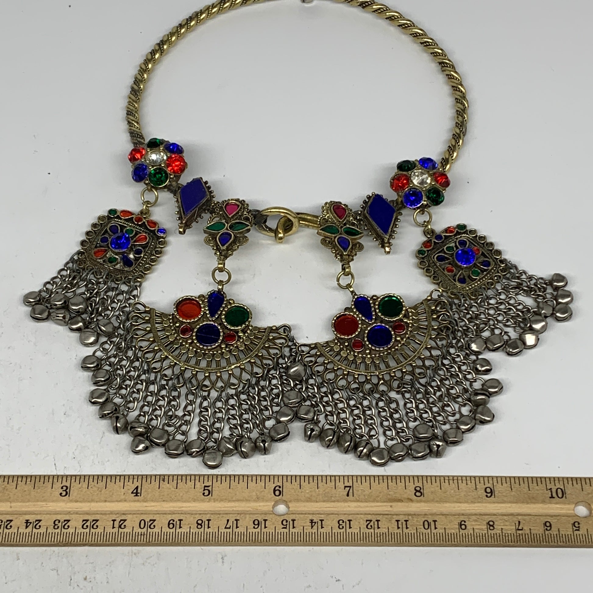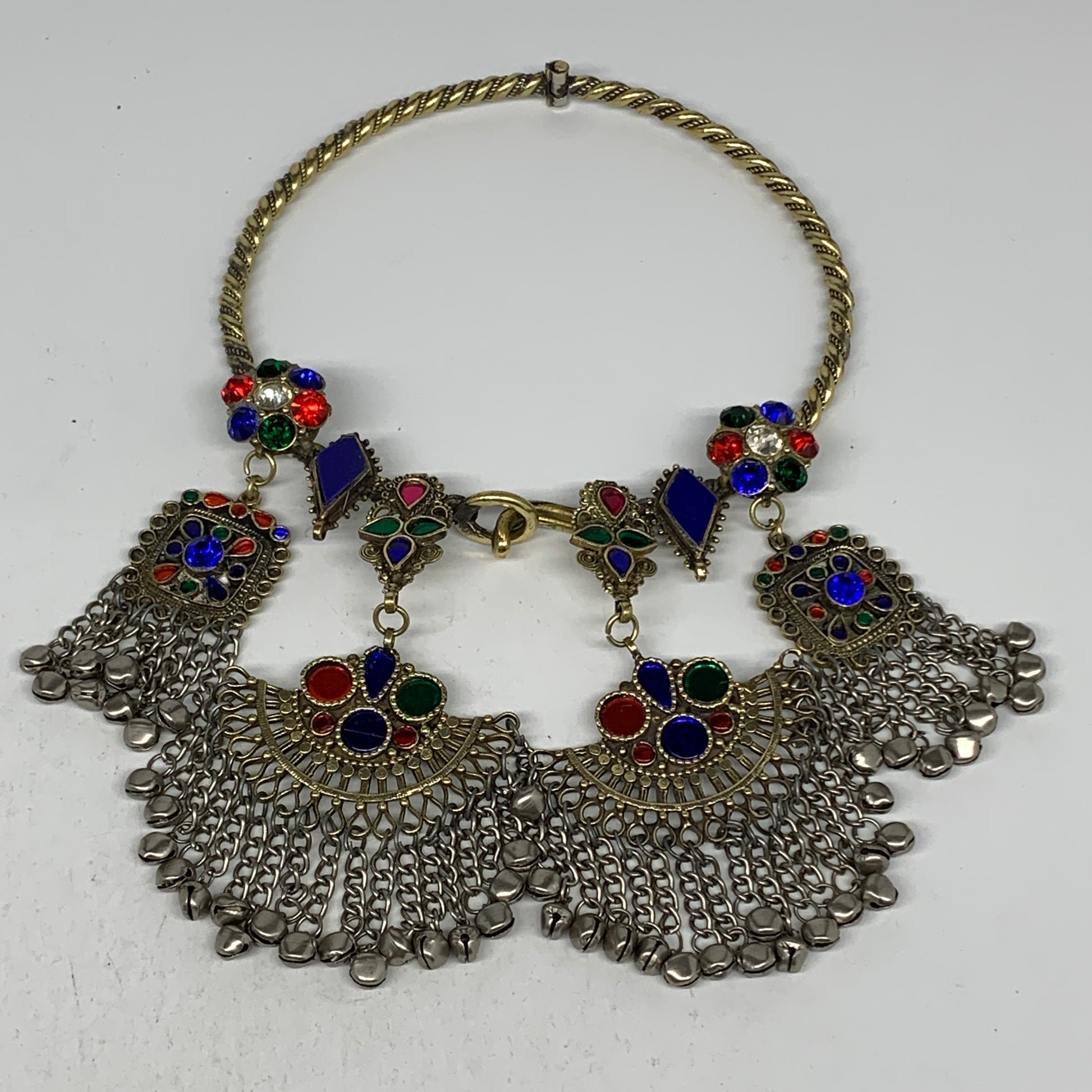 250g, 10"x5.25"Kuchi Turkmen Choker Necklace Multi-Color Tribal Gypsy Beho,B14160