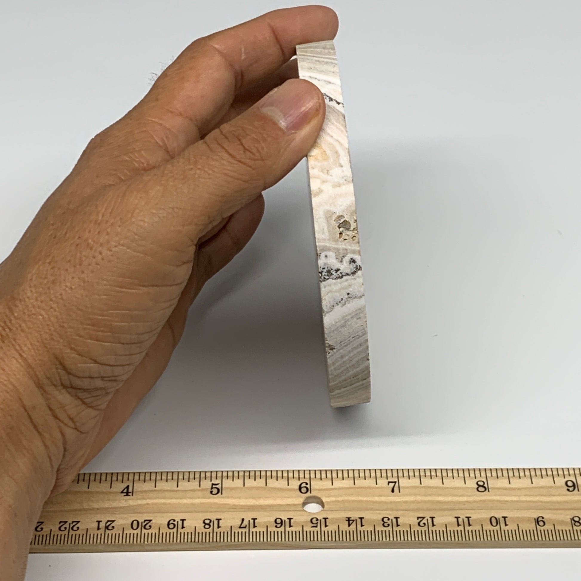 251.6g, 4.2"x0.4", Natural Picture Calcite Round Disc/Coaster @Mexico, B25476