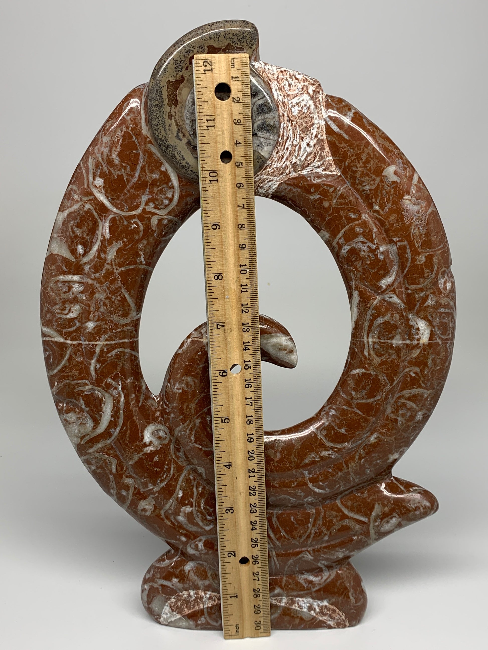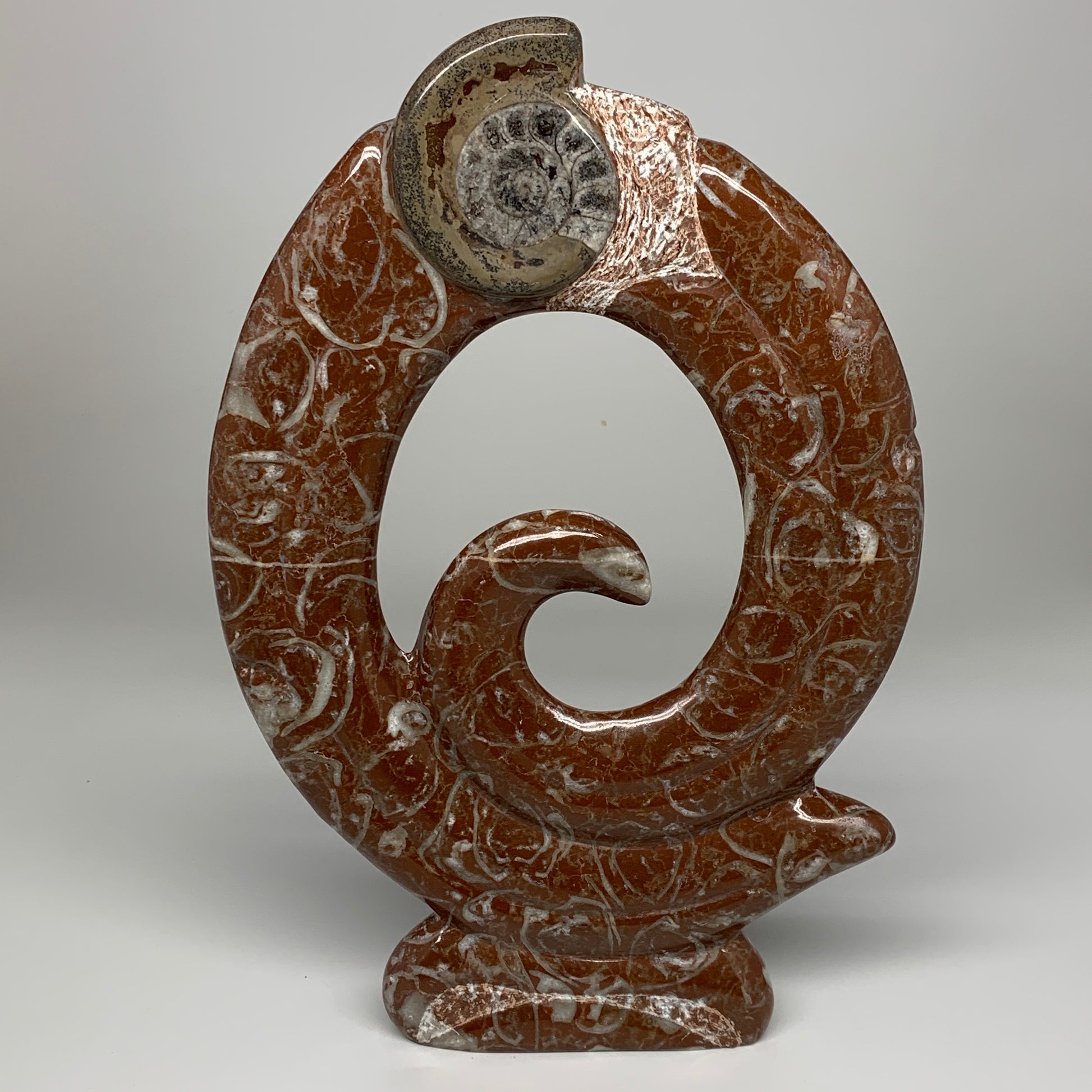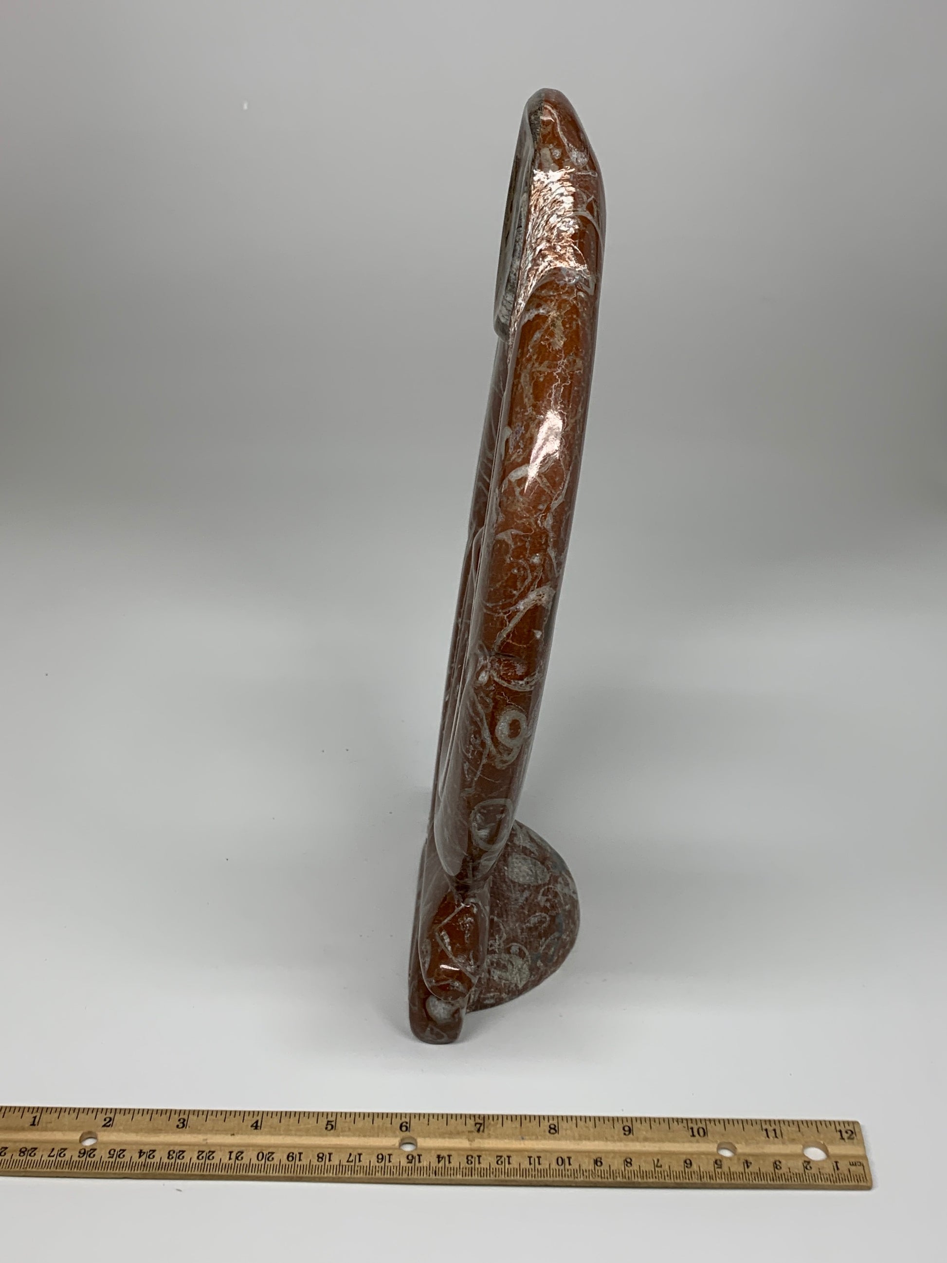 2512g, 12.75"x8.5"x0.8" Red Shell Fossils Orthoceras Ammonite Sculpture @Morocco, B8557