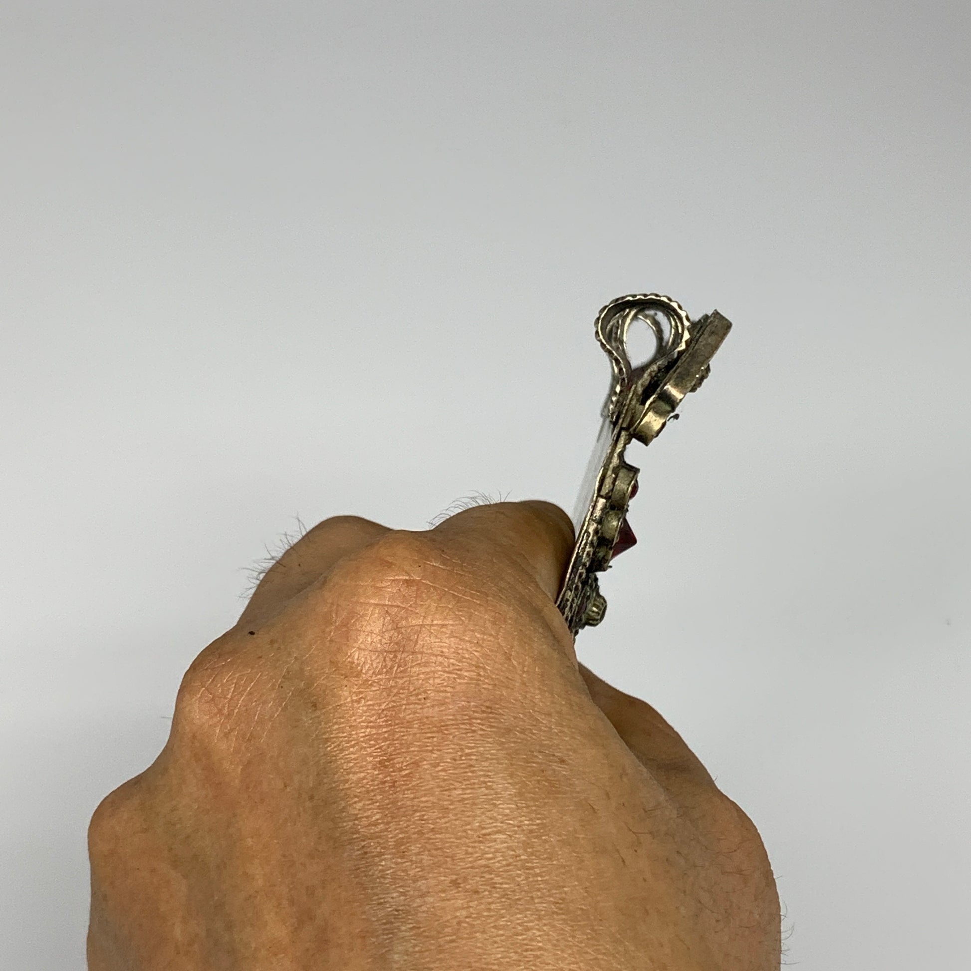 Although we hand select our jewelries, but still tribal Jewelries may have some wears & tears, missing beads or glasses, dangles, missing chains, bells and jingles..etc so, please look at at the images carefully before purchasing. We took several images and very close up photos are taken to show you exactly what you will be receiving. The metals used in these kind of jewelries are called different names, some call it German Silver, some called it Gypsy and some call it Alpaca Silver or they could be just brass. We cannot confirm.