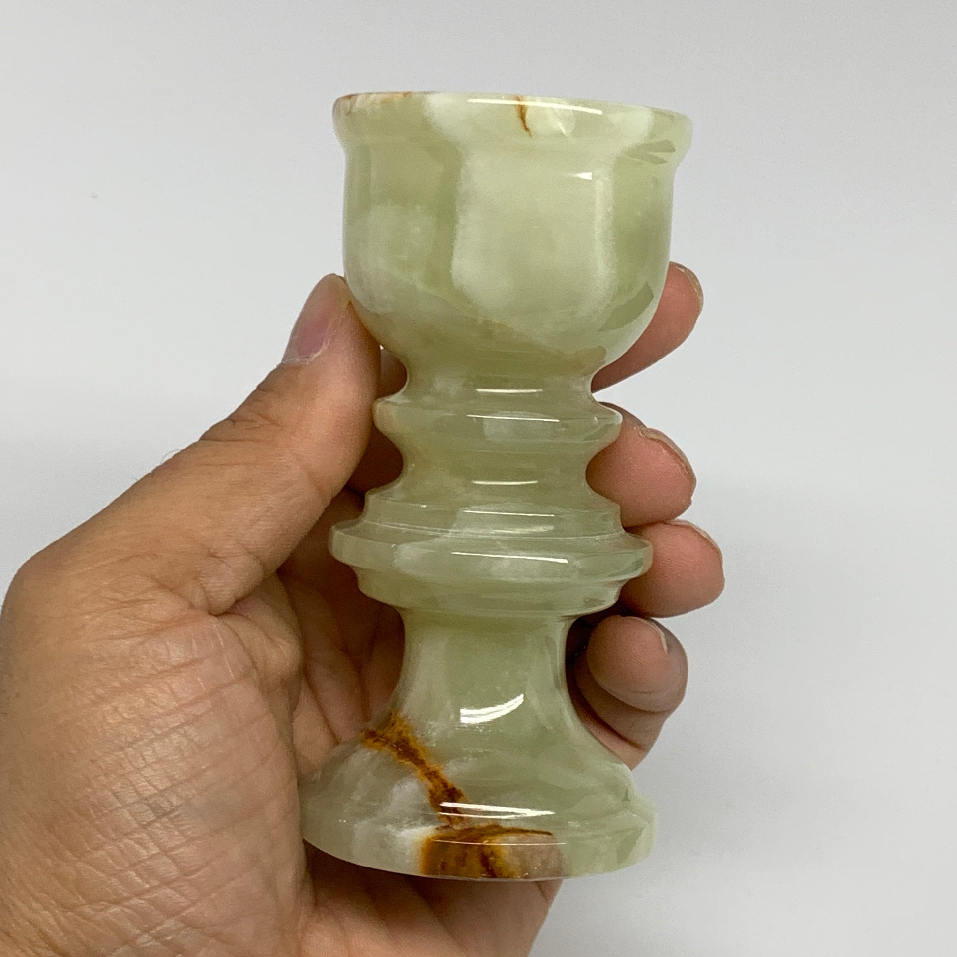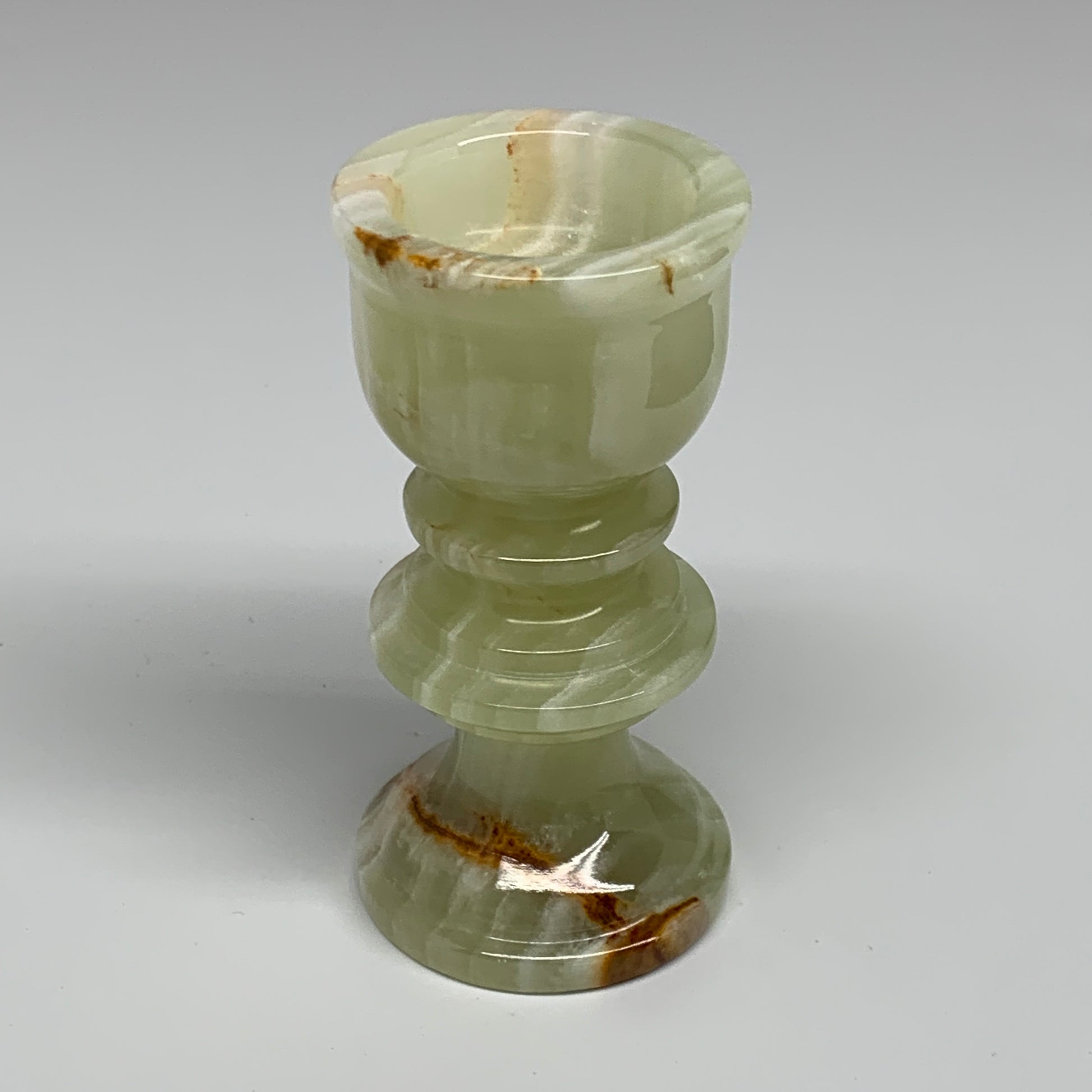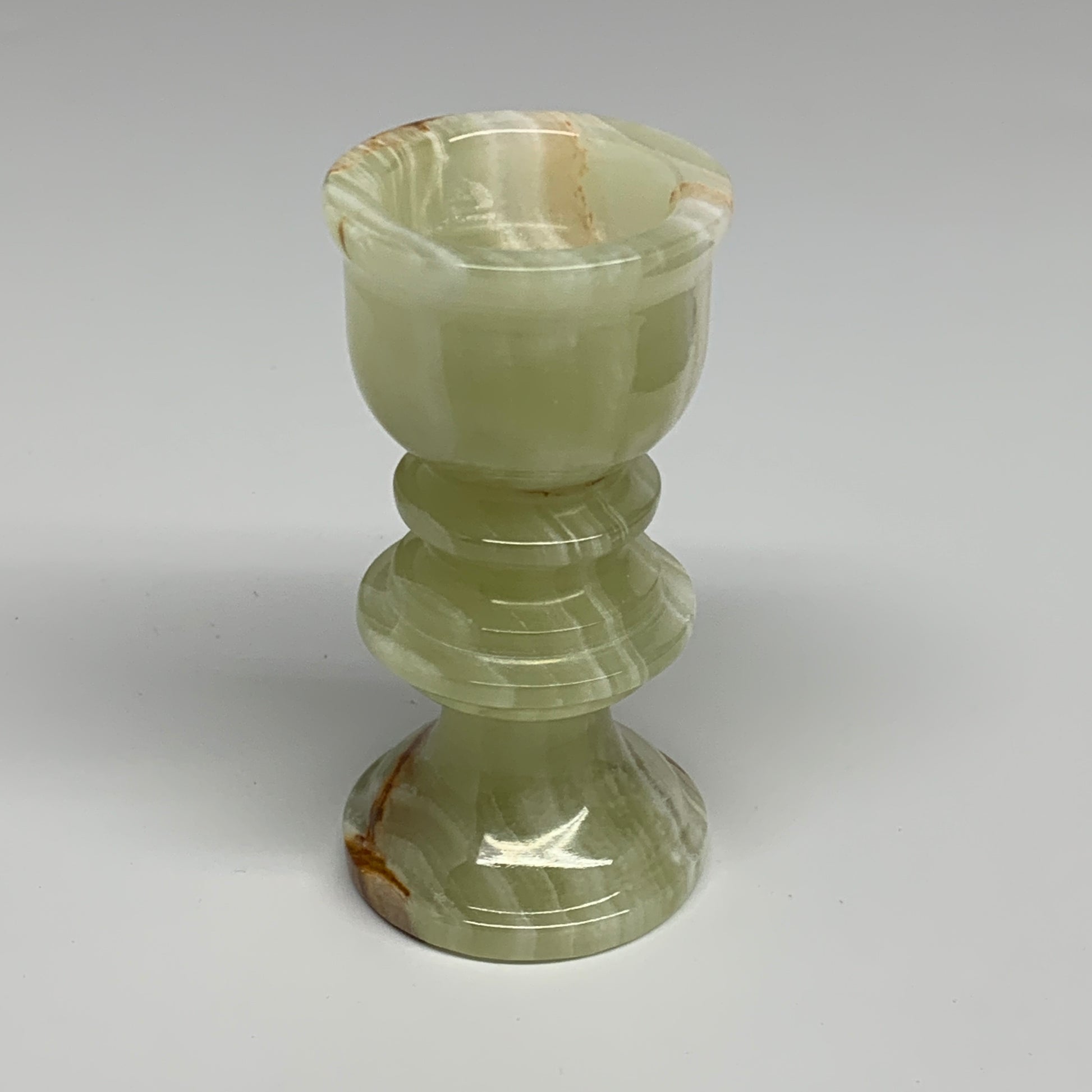 251g, 3.8"x1.9", Natural Green Onyx Candle Holder Gemstone Hand Carved, B32060