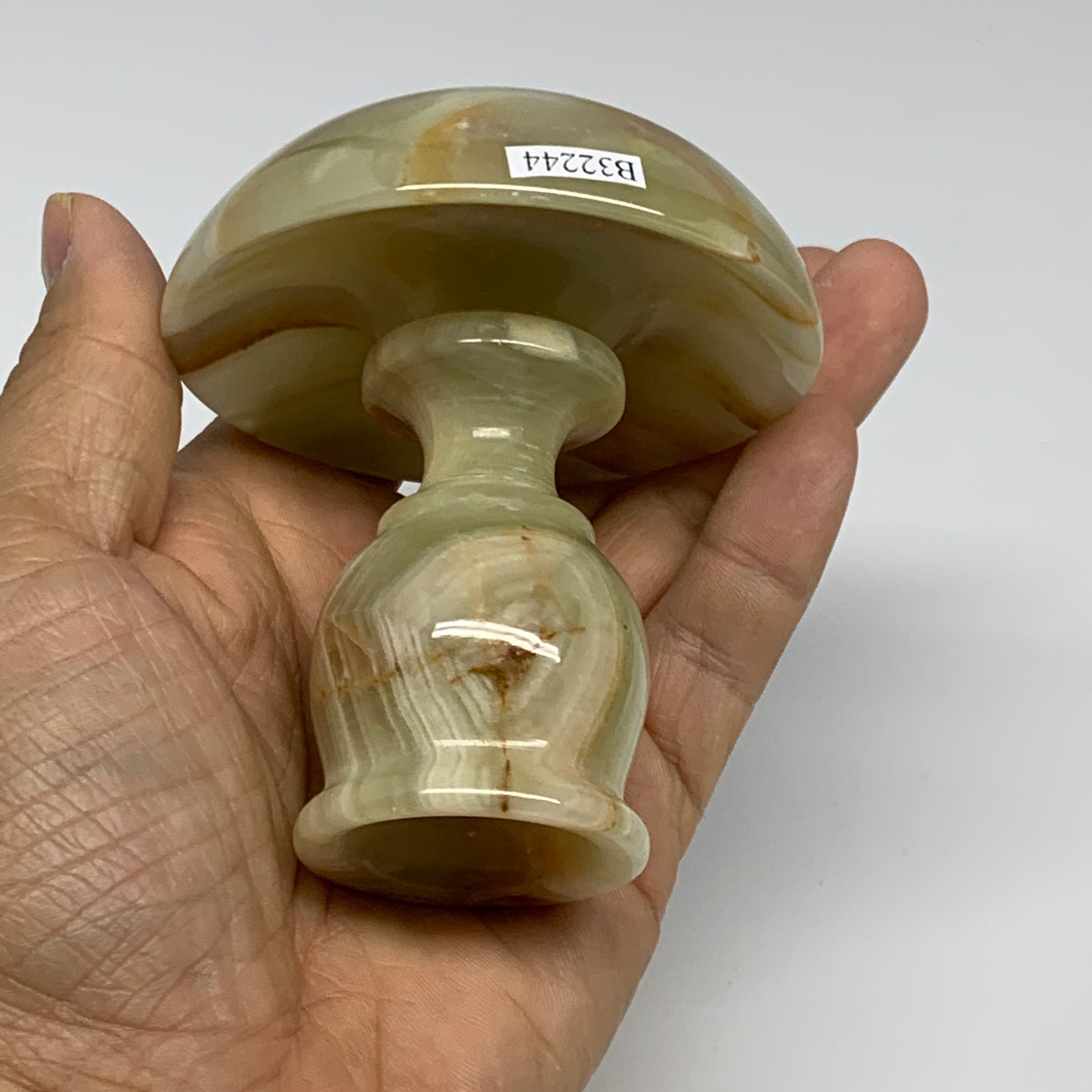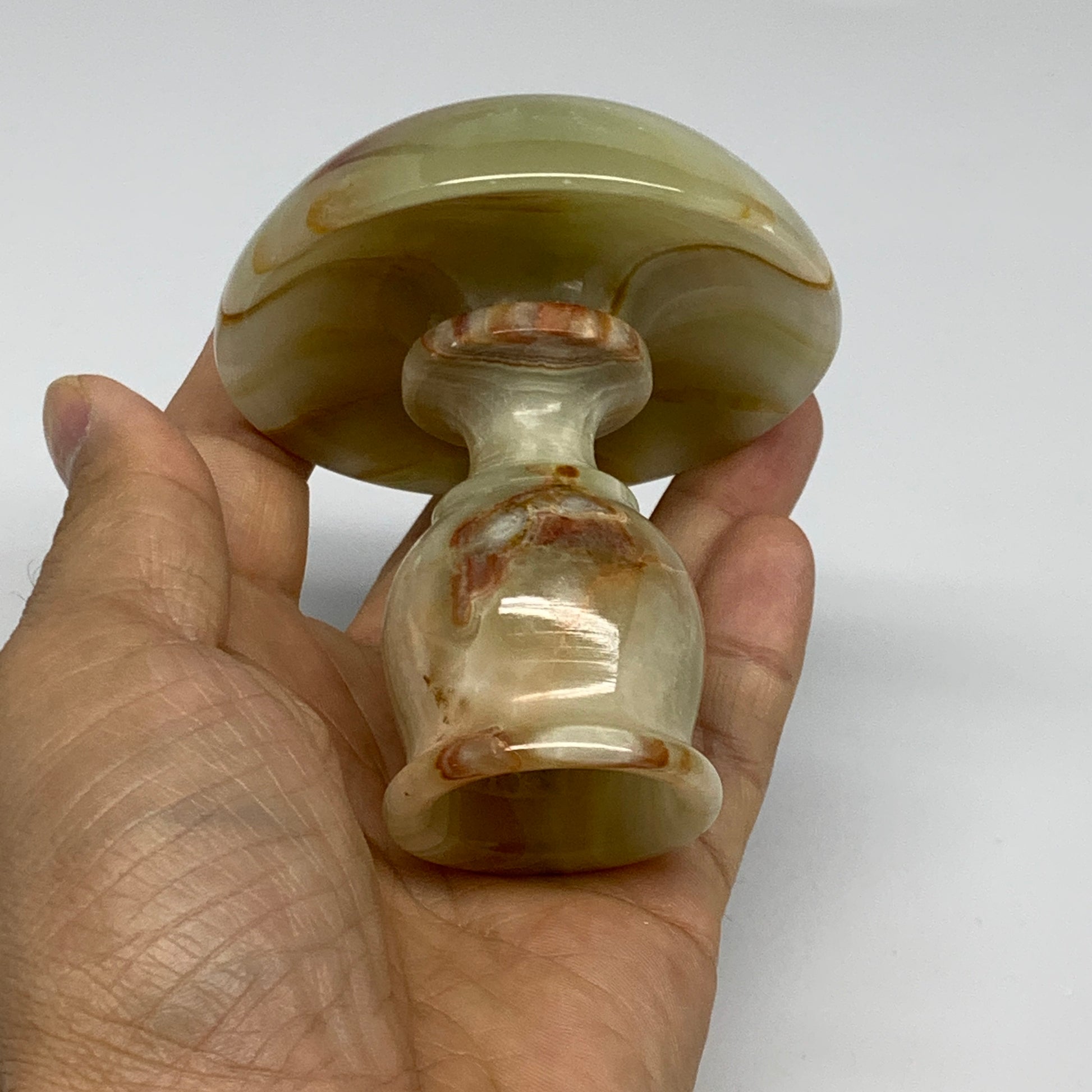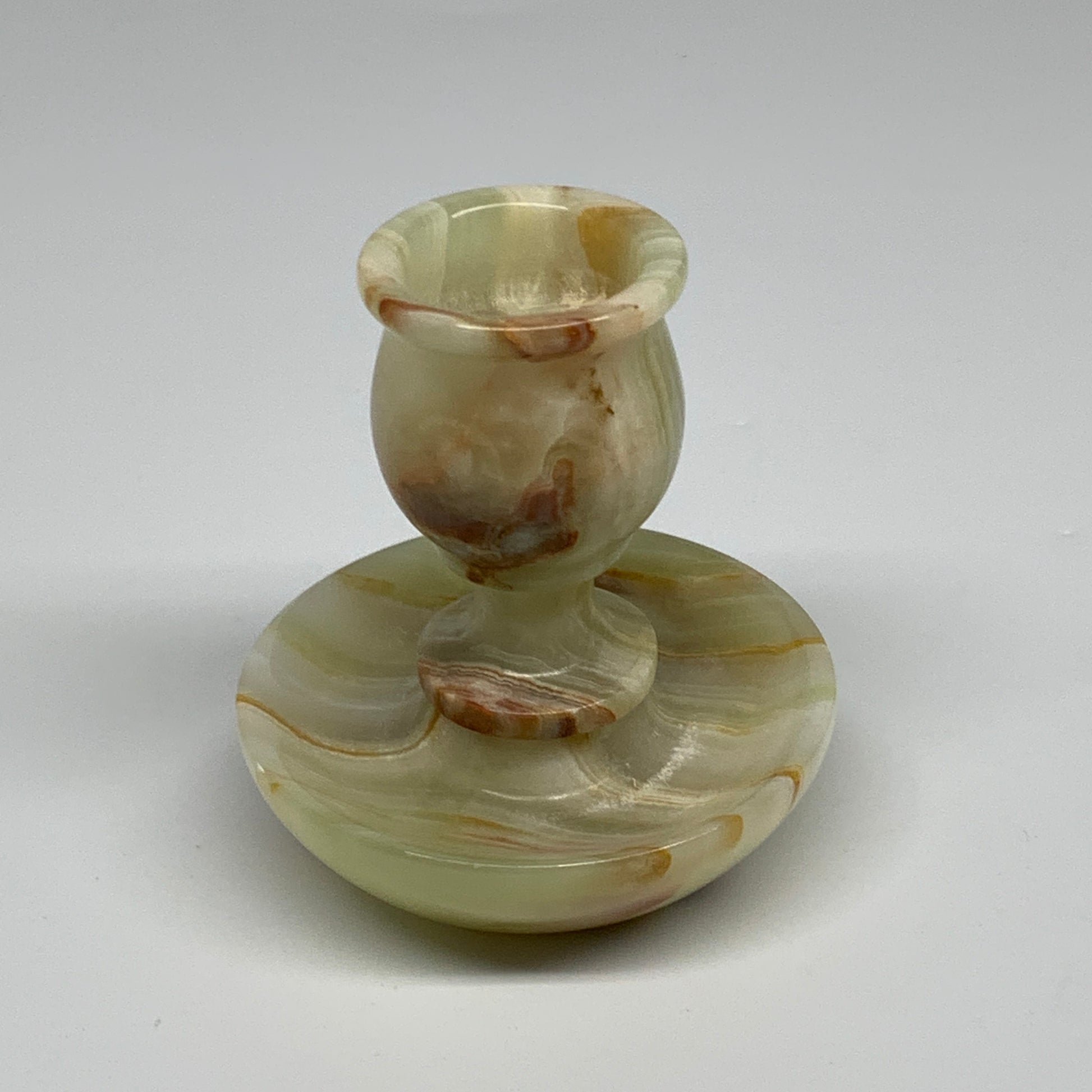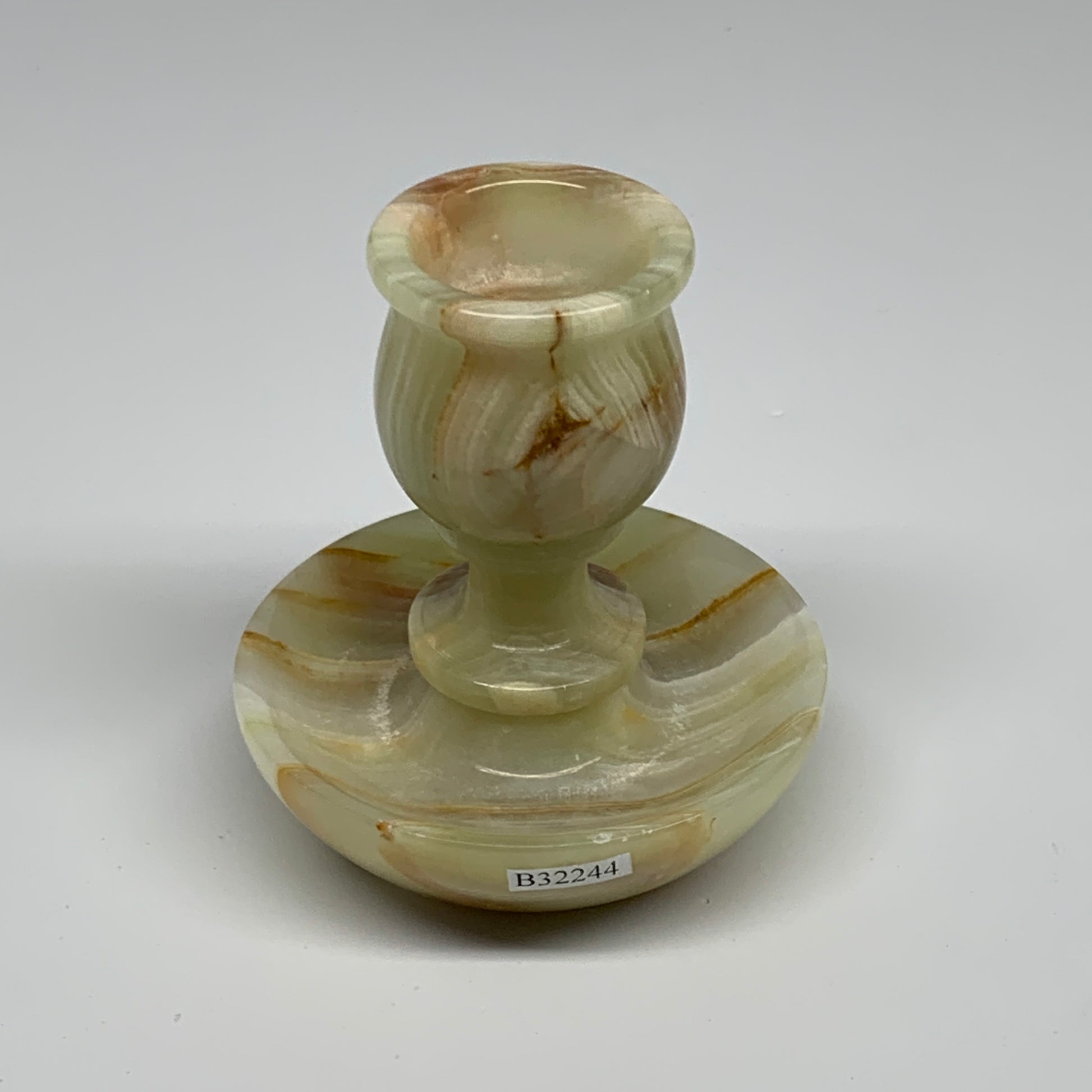 253g, 3.2"x1.4"x2.9", Natural Green Onyx Candle Holder Gemstone Carved, B32244