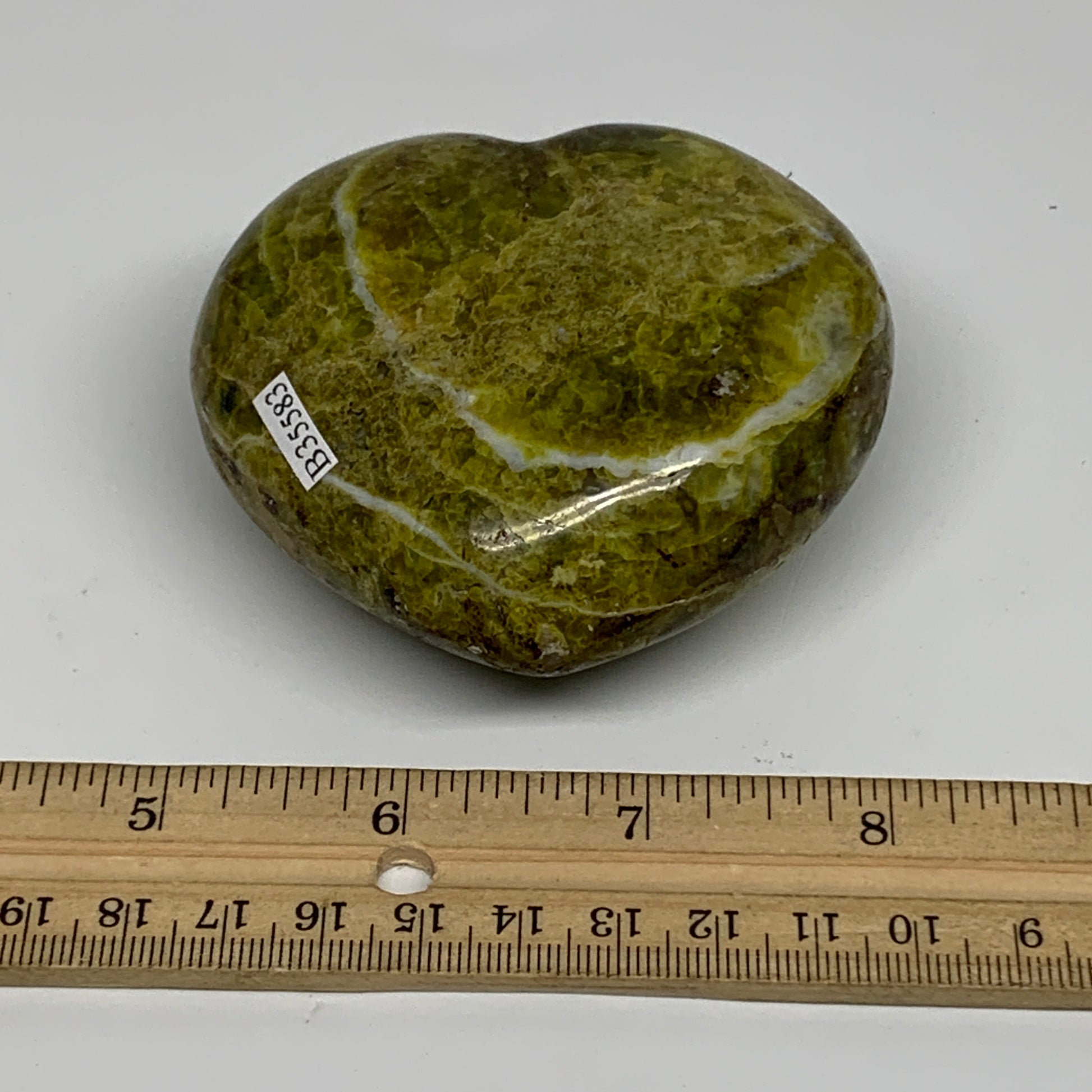 256.5g, 2.9"x3.1"x1.5", Green Opal Heart Polished Gemstone Crystal, B35583