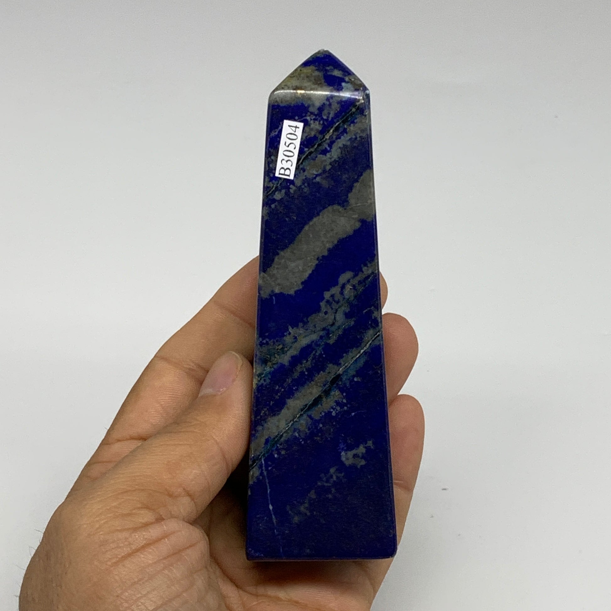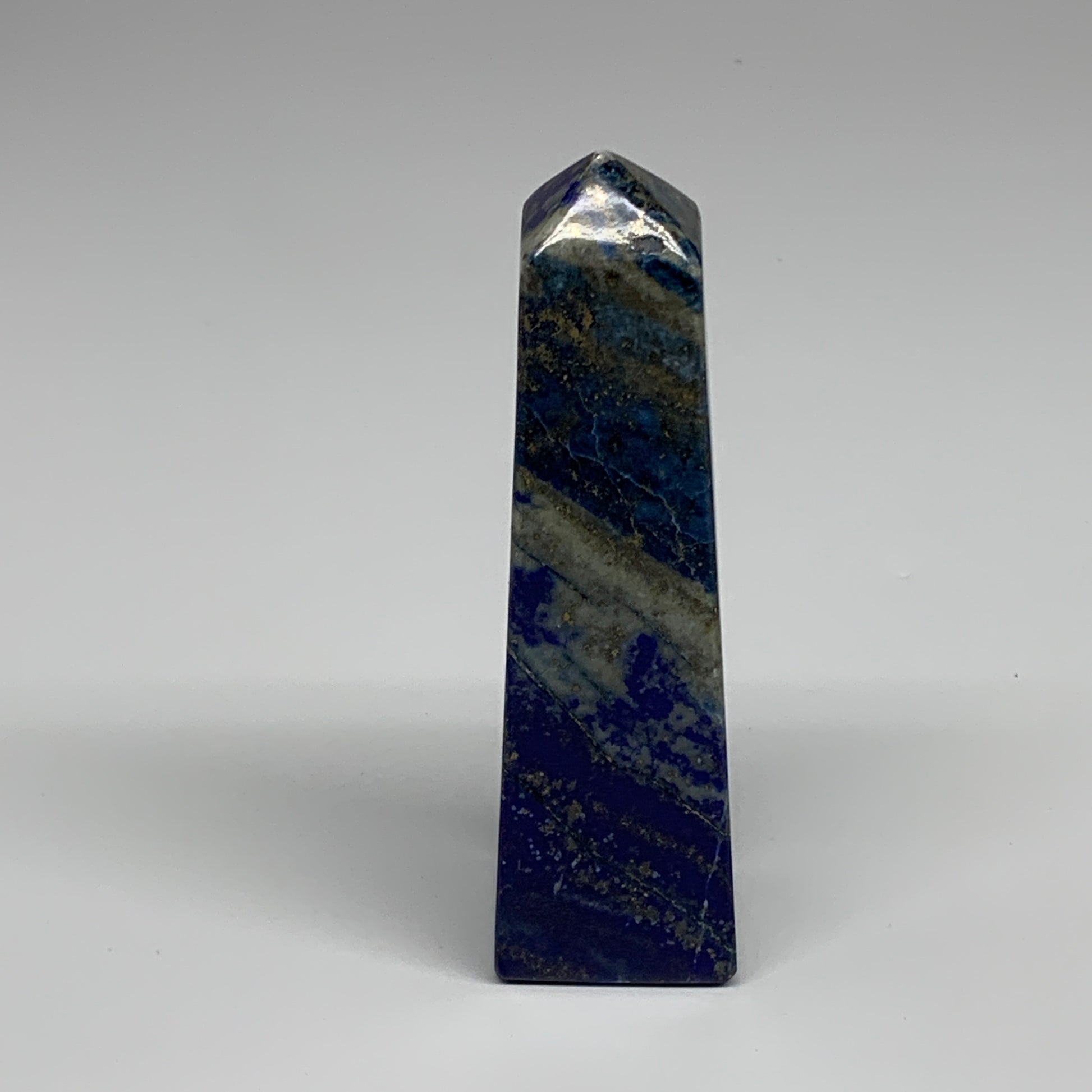 257.6g, 4.6"x1.3"x1.2", Natural Lapis Lazuli Tower Point Obelisk Afghanistan,B30504