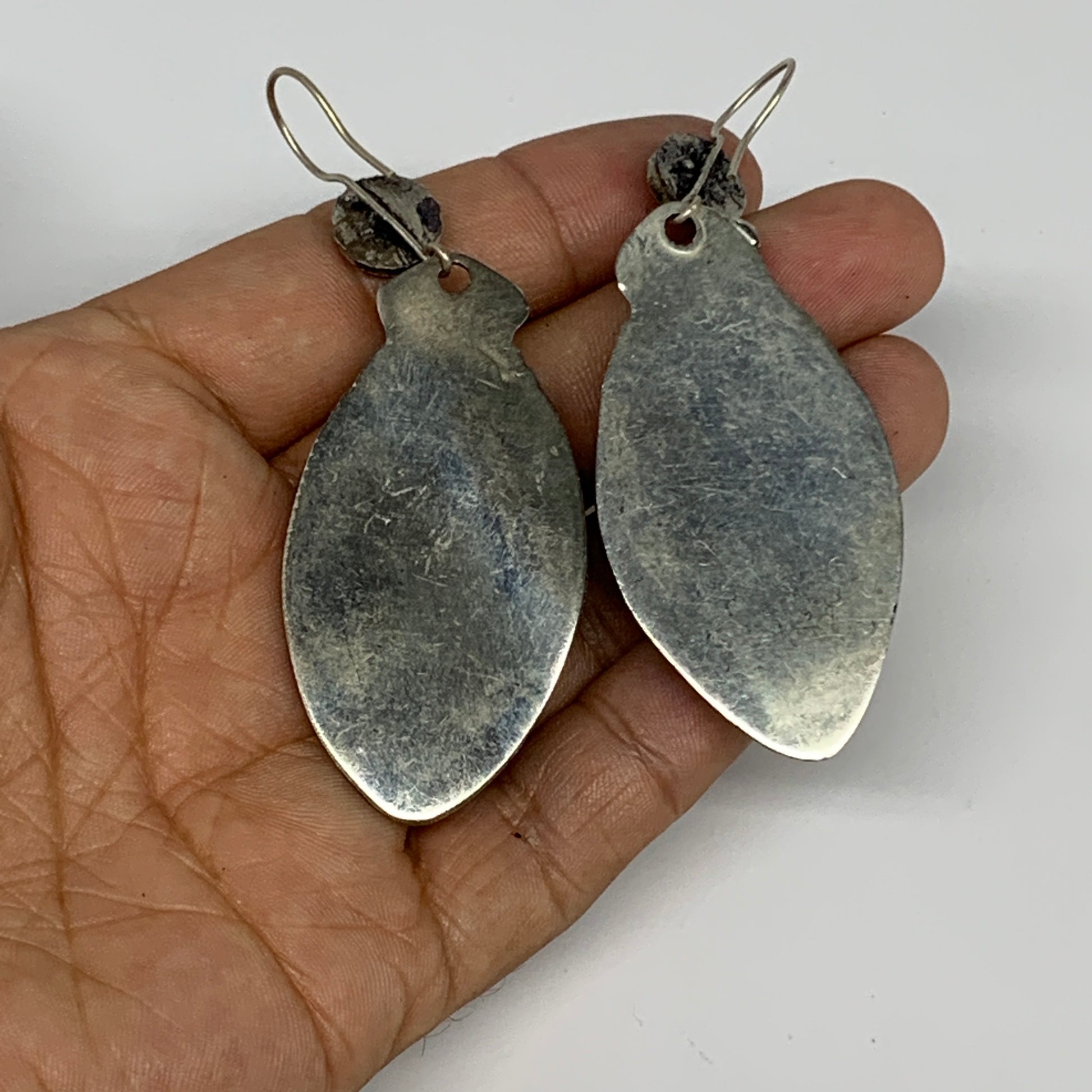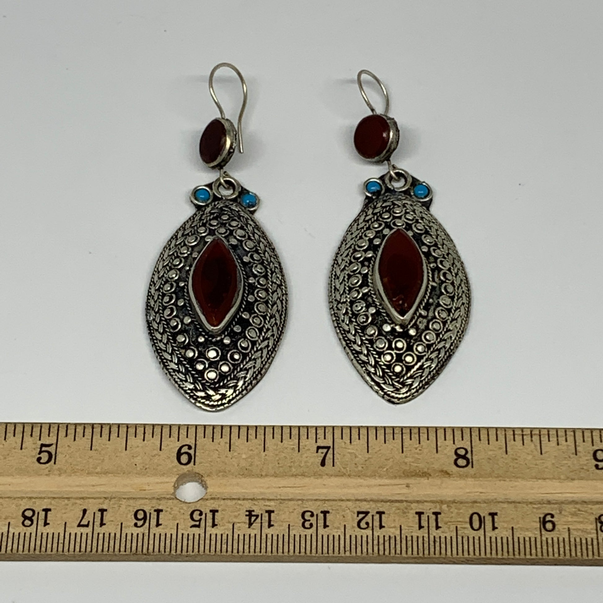 26.9g, 3.1"x1.1" Turkmen Earring Tribal Jewelry Carnelian Marquise Boho, B14221