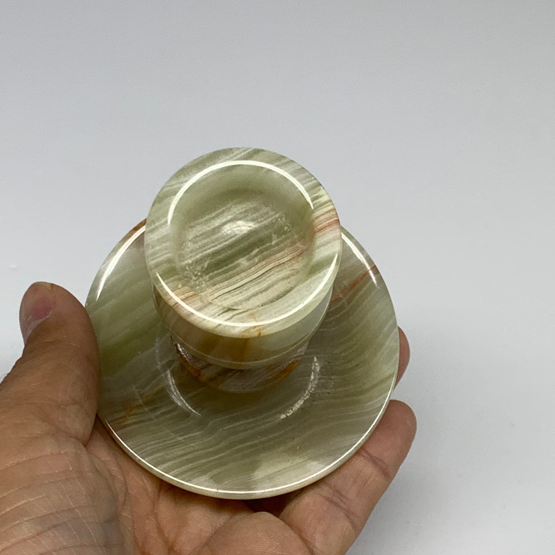 287g, 3.4"x1.5"x2.9", Natural Green Onyx Candle Holder Gemstone Hand Carved, B32191