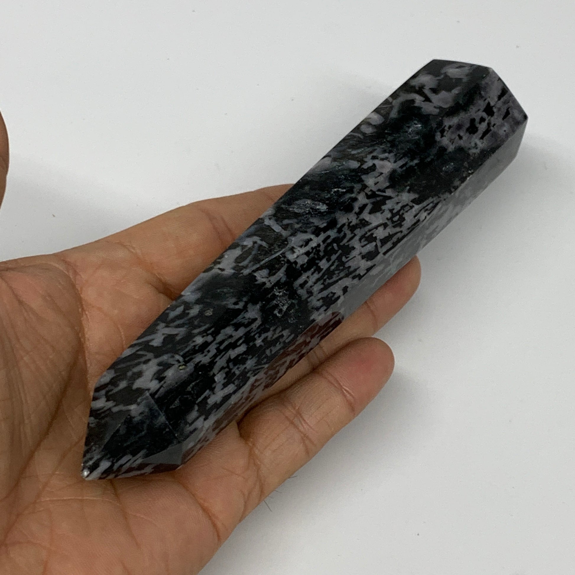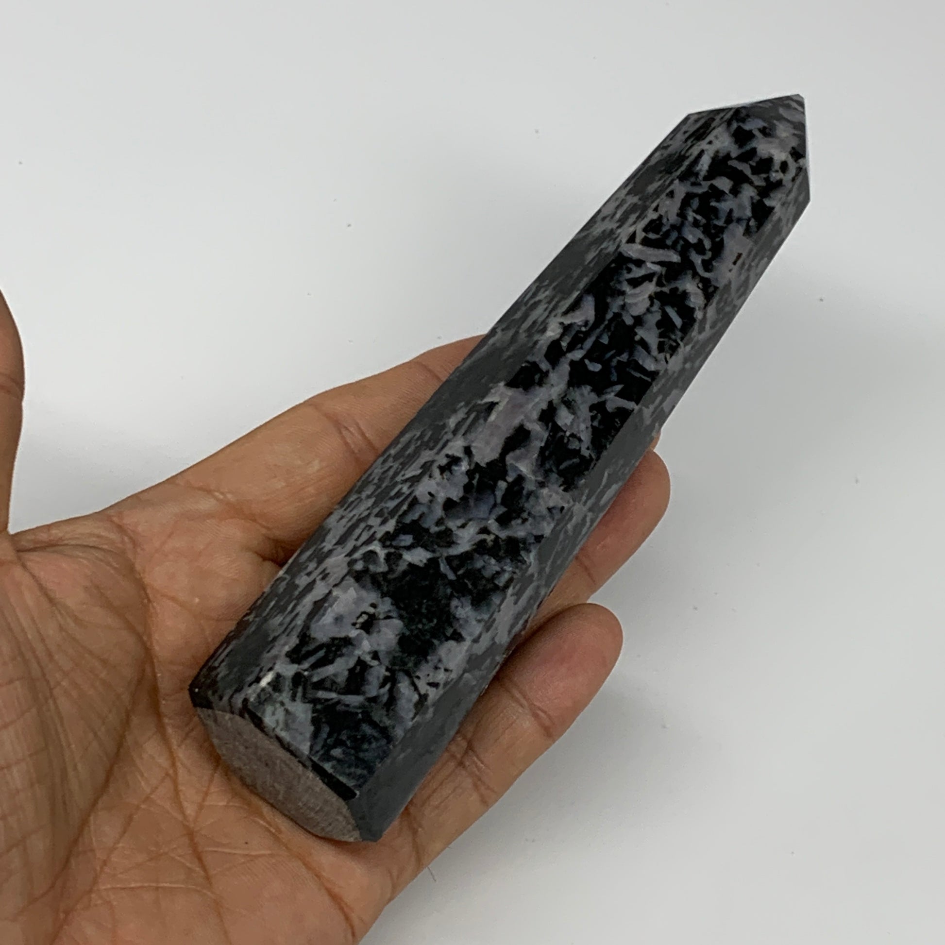 262.3g, 6" x 1.4" x 1.2" Indigo Gabro Merlinite Point Tower @Madagascar,B18365