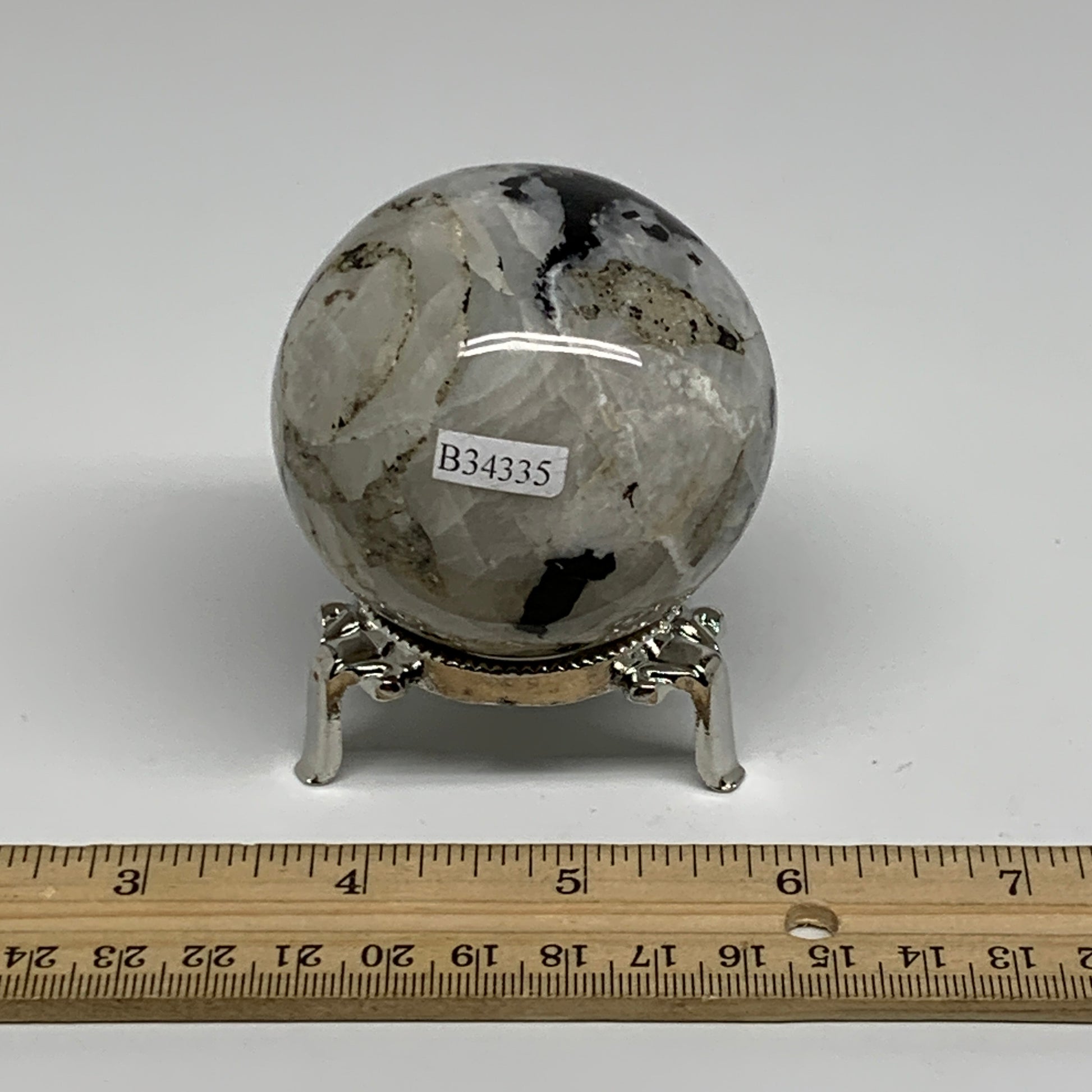 267.8g, 2.3"(58mm), Natural Rainbow Moonstone Sphere Ball Gemstone, B34335