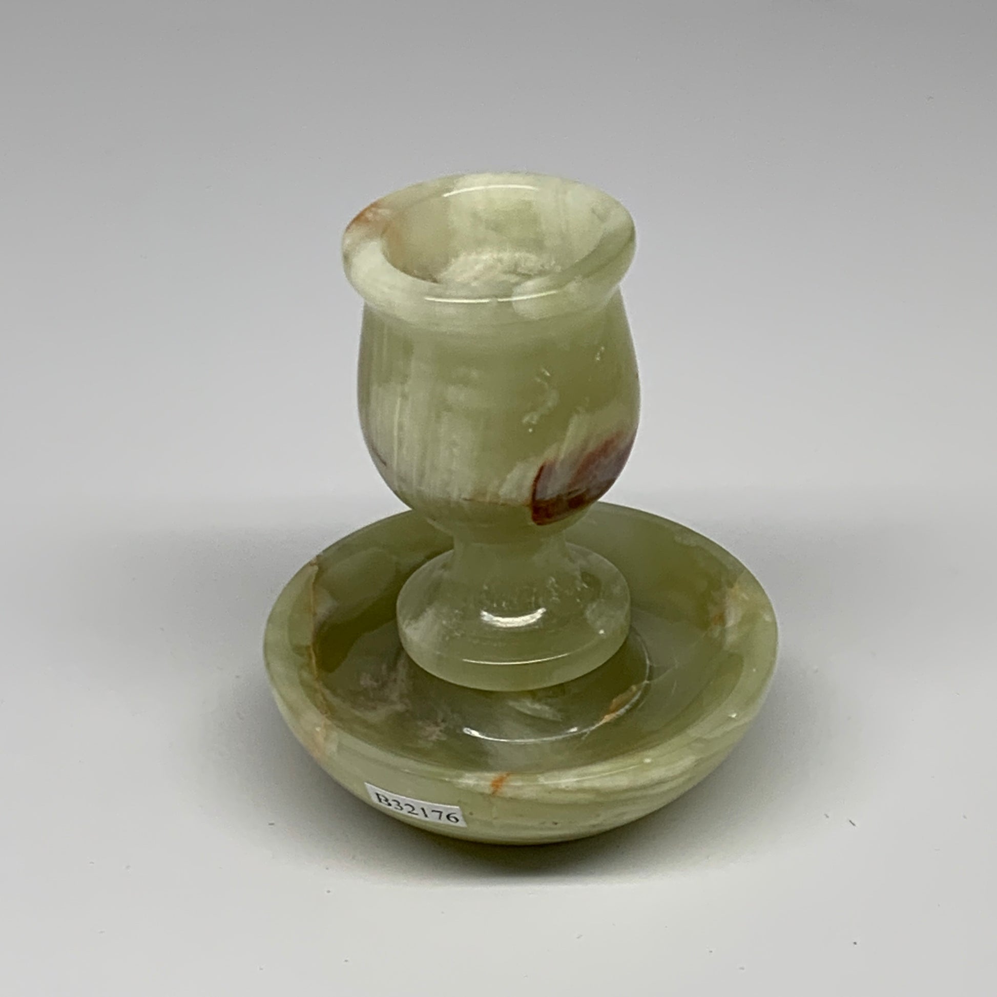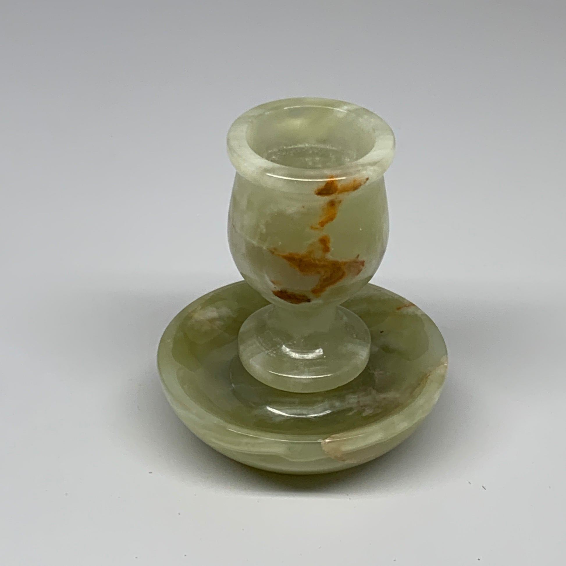 267g, 3.3"x1.4"x2.8", Natural Green Onyx Candle Holder Gemstone Hand Carved, B32176