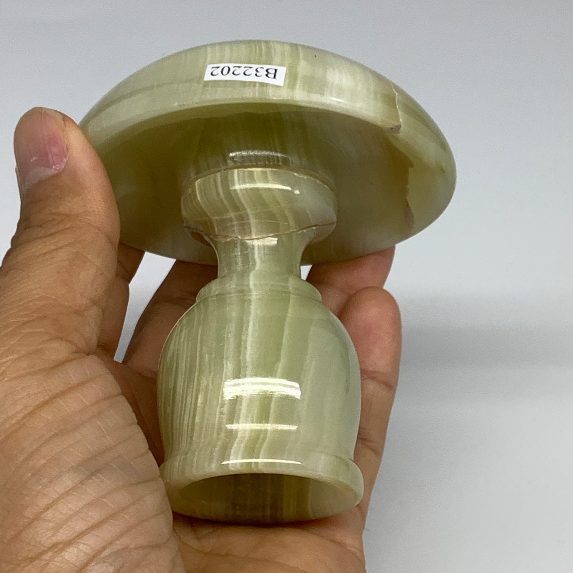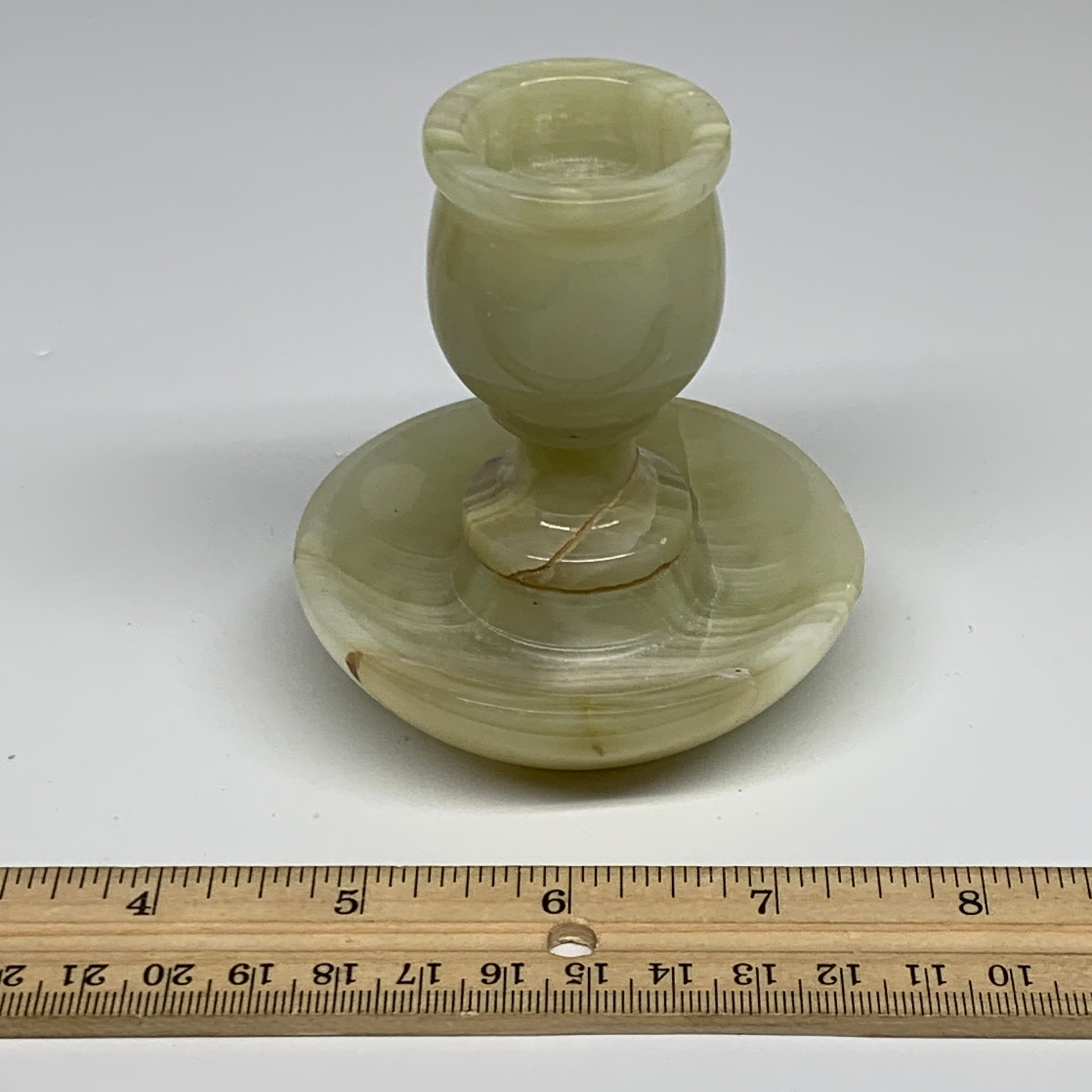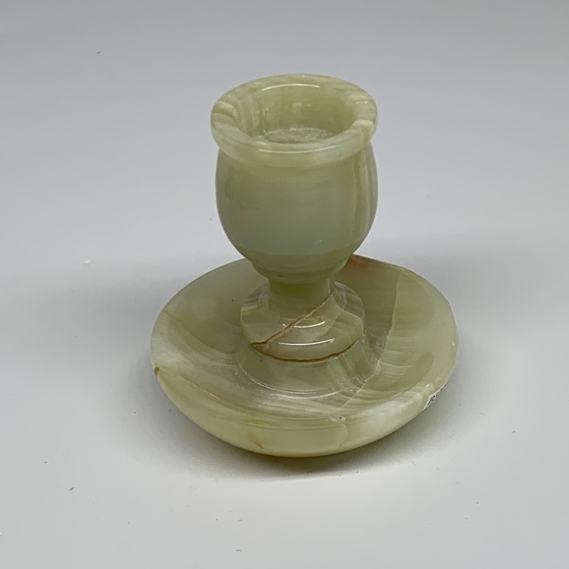 270g, 3.2"x1.5"x3", Natural Green Onyx Candle Holder Gemstone Hand Carved, B32202